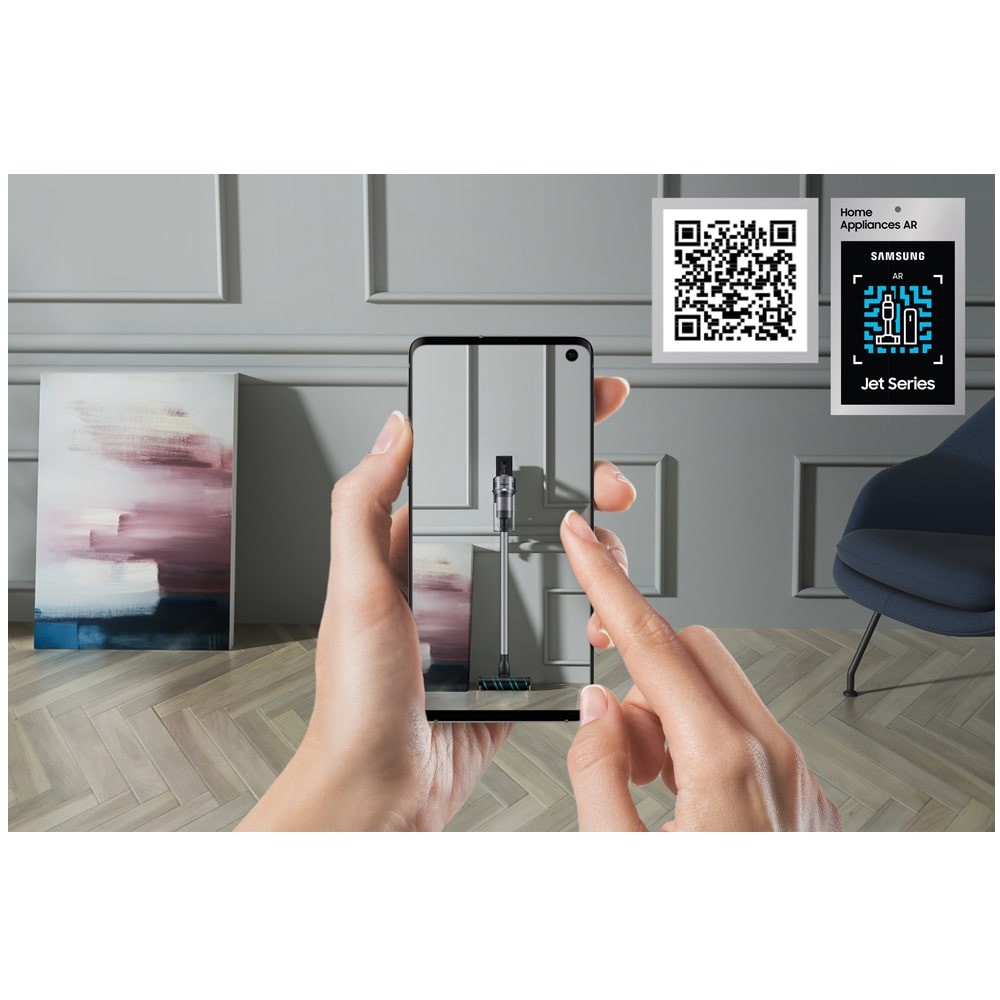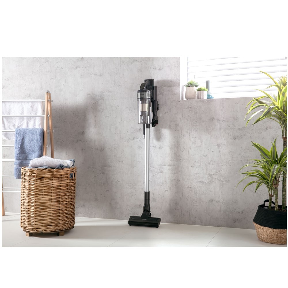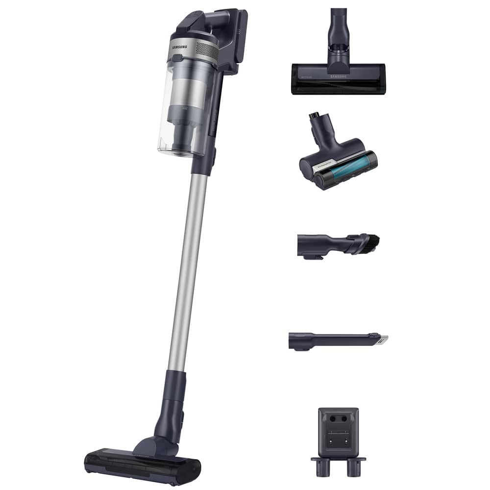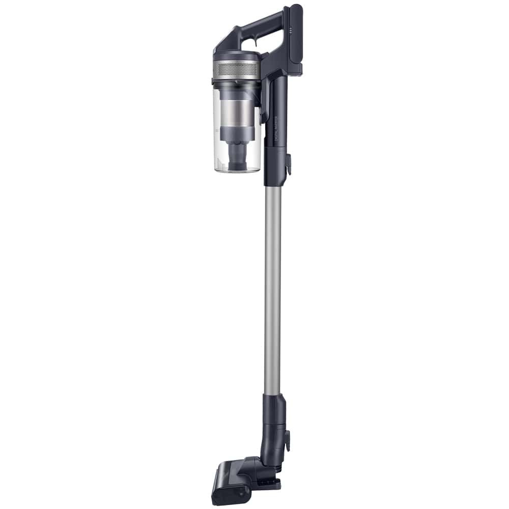جارو شارژی سامسونگ VS15A6032R5 سبکترین جارو شارژی کمپانی کرهای سامسونگ در سال 2021 است که به شما کنترل بیشتری روی تمیز کردن میدهد. باید گفت که طراحی سبک وزن این جاروشارژی کنترل حداکثر و آسان را هنگام استفاده از جارو شارژی در اطراف خانه شما را تضمین میکند. این محصول ممکن است در بازار با عنوان جارو شارژی سامسونگ VS6700 یا Jet 60 نیز معرفی شود که البته مدل کامل و دقیق محصول فوق نیست. در حال حاضر مونتاژ ویتنام این جارو شارژی ایستاده سامسونگ در بازار ما موجود میباشد. طراحی بیسیم جاروشارژی jet 60 سامسونگ این اطمینان را به شما میدهد که نیازی به نگرانی در مورد افتادن کابل برق نداشته باشید، در حالی که ساختار سبک وزن آن به شما امکان میدهد آن را بردارید و با کمترین تلاش حمل کنید. در واقع این مدل جارو شارژی برای نظافت خانه، خودرو یا ماشین، و حتی موی حیوانات بسیار مناسب است و میتواند کارایی عالی را از خود به نمایش بگذارد. جارو شارژی Samsung Jet 60 برای نظافت کارگاهی طراحی نشده است. عملکرد رضایت بخشی را روی سطوح صاف مانند کف بتنی یا میز کار ارائه میدهد و روی فرشهای کم پرز عملکرد خوبی دارد، اما برای جارو کشیدن زبالههای معمولی کارگاه مانند برادههای چوبی یا فلزی مناسب نیست. همچنین قادر به مقابله با نشت مایعات نمیباشد. جارو شارژی ایستاده SAMSUNG VS15A6032R5 به موتور قدرتمند Digital Inverter مجهز است و با وجود کوچک بودن، قدرت مکش بسیار خوبی ارائه میدهد. حداکثر قدرت مکش این موتور 150 وات میباشد و سطح نویز ایجاد شده از این دستگاه در هنگام استفاده 86 دسیبل است.