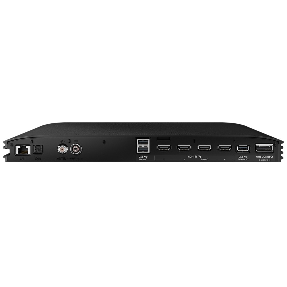 تلویزیون 85 اینچ سامسونگ QN800C از طراحی بسیار باریک در بدنه برخوردار است و سامسونگ از آن با زبان طراحی Infinity One یاد کرده است. ضخامت این تلویزیون در حدود 1.76 سانتی متر است. پایه این محصول به صورت وسط و خطی می باشد و از سه قسمت مختلف تشکیل شده است که توسط مکانیزم خاص شرکت سامسونگ و پیچ به یکدیگر وصل و در نهایت به تلویزیون نصب می شوند. پایه این تلویزیون در سایت سامسونگ به رنگ CARBON SILVER معرفی شده است که همان مشکی است. حاشیه های 4 طرف صفحه نمایش این تلویزیون بسیار باریک است، شرکت سامسونگ این نوع طراحی را در تلویزیون های خود 4 Bezel-less معرفی کرده است. تلویزیون فوق دارای دستگاه Slim One Connect Box می باشد که محل پورت های ورودی و خروجی تلویزیون روی این دستگاه قرار گرفته است. البته در پشت بدنه تلویزیون 1 پورت USB-C برای اتصال دوربین به تلویزیون قرار داده شده است. طبق ادعای سامسونگ شما می توانید حافظه فلش نیز به پورت USB-C مذکور متصل کنید اما ما این موضوع را تست نکردیم و از آن مطمئن نیستیم به همین دلیل نمی توانیم این موضوع را تایید یا تکذیب کنیم؛ در آینده در صورت امکان این موضوع را تست کرده و اطلاعات دقیق تری در اختیار شما قرار خواهیم داد. دستگاه Slim One Connect Box را می توانید در پشت پایه تلویزیون نصب نمایید و آن را توسط کابلی کوتاه (One Connect Cable) که در جعبه این محصول قرار دارد، به تلویزیون وصل کنید. اگر تلویزیون را روی دیوار نصب کنید لازم است دستگاه Slim One Connect Box را کمی دورتر از تلویزیون قرار دهید. برای اتصال دستگاه Slim One Connect Box به تلویزیون در چنین شرایطی سامسونگ یک کابل باریک و مخفی به طول حدودا 2.5 متر (One Invisible Connection Cable) در جعبه تلویزیون قرار داده است.