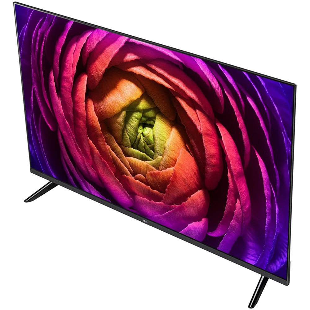 طراحی تلویزیون 55 اینچ ال جی UR7300 به عنوان یک تلویزیون اقتصادی و ارزان قیمت قابل قبول است؛ اما اگر آن را با تلویزیون های بالارده یا حتی میان رده ال جی مقایسه کنید متوجه می شوید که در زمینه طراحی حرفی برای گفتن ندارد. در صورتی که به دنبال تلویزیونی با طراحی مدرن یا باریک هستید، نباید روی این محصول حساب باز کنید. ضخامت بدنه تلویزیون پیش روی شما حدود 8.05 سانتیمتر (80.5 میلیمتر) است و برای نصب روی دیوار گزینه ایده آلی نمی باشد. البته شما می توانید با تهیه پایه دیواری مناسب، تلویزیون مذکور را بدون مشکل روی دیوار نصب کرده و از آن استفاده نمایید. قاب این تلویزیون در سه طرف صفحه نمایش از بخش قاب پایینی تلویزیون باریک تر می باشد و ال جی به آن طراحی 3 Sided Cinema Screen می گوید. این نوع طراحی علاوه بر زیباتر کردن محصول، باعث می شود تا حواس بیننده هنگام تماشای محتوای در حال پخش کمتر پرت شود و به عبارت دیگر بتواند روی محتوای در حال نمایش راحت تر تمرکز کند. قسمت پشتی بدنه تلویزیون از جنس فلز ساخته شده است اما بخشی که پورت های ورودی و خروجی و بورد تلویزیون قرار دارند از جنس پلاستیک می باشد. پایه های این مدل به شکل دو شاخه هستند و در دو طرف تلویزیون نصب می شوند، پس به این نکته توجه کنید که شما نمی توانید این تلویزیون را روی میزهای خیلی کوچک قرار دهید. این پایه ها به رنگ مشکی و از جنس پلاستیک ABS ساخته شده اند که وزن بسیار کمی نیز دارند. الجی در بسته بندی تلویزیون مذکور تعدادی پیچ قرار داده است که باید پایه ها را با استفاده از آن ها به تلویزیون متصل کنید و این پایه ها قابل تنظیم نیستند. همچنین کابل برقی که همراه این تلویزیون عرضه شده است به صورت سه شاخه می باشد و شما برای استفاده از آن به تبدیل 3 به 2 نیاز خواهید داشت. ال جی جعبه این محصول را به صورت Eco-packaging و دوستدار محیط زیست طراحی کرده است به طوری که جعبه آن قابلیت بازیافت دارد، در نتیجه به محیط زیست آسیبی نمی رساند.
