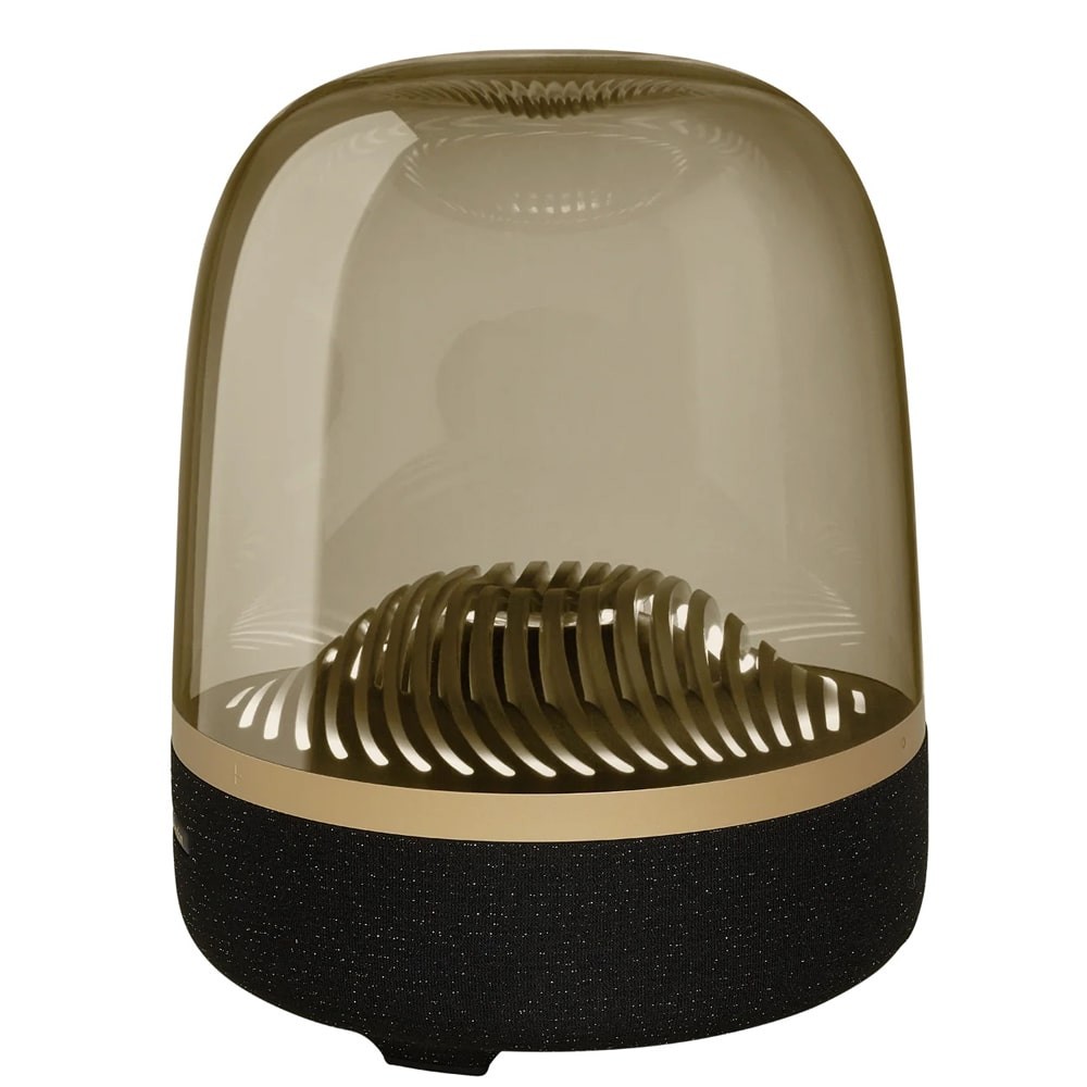 اسپیکر AURA STUDIO 3 از برند هارمن کاردن یک اسپیکر خانگی شیک با طراحی منحصر به فرد است که به صورت عمودی بر روی پایه ای پوشیده از پارچه قرار گرفته است و با بهره گیری از سیستم صوتی قدرتمند و طراحی مهندسی توانسته به یکی از بهترین اسپیکرهای میان رده ی موجود در بازار با ارزش خرید بسیار بالا تبدیل شود. این اسپیکر در سال 2020 عرضه شده و در دو رنگ مشکی و طلایی تولید شده است و با مونتاژ کشور چین وارد بازار کشور ما می شود. این مدل اسپیکر کلاسیک با طراحی شفاف خود، ظاهری با ارزش را به ارمغان آورده است و حتی توانسته به یکی از مدل های پرفروش موجود در بازار تبدیل شود. ضمن اینکه اسپیکر Harman Kardon Aura Studio 3 نسخه ی ارتقا یافته ی نسل قبلی خود یعنی Aura Studio 2 می باشد و آخرین مدل اسپیکر بی سیم بلوتوثی است. سازندگان در طراحی این محصول، به تمام نقدها توجه ویژه ای داشته و تلاش کردهاند تا تمام ضعف های موجود در طراحی نسل قبلی را برطرف کنند؛ اتفاقی که باعث شده تا اسپیکر هارمن کاردن استودیو ۳ با استقبال بسیار خوب کاربران همراه شود.