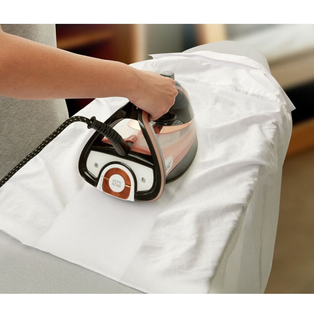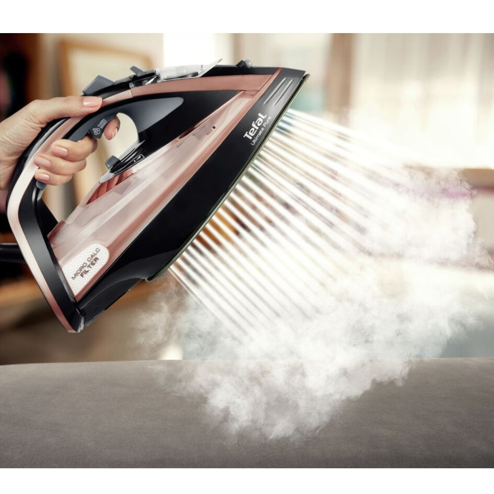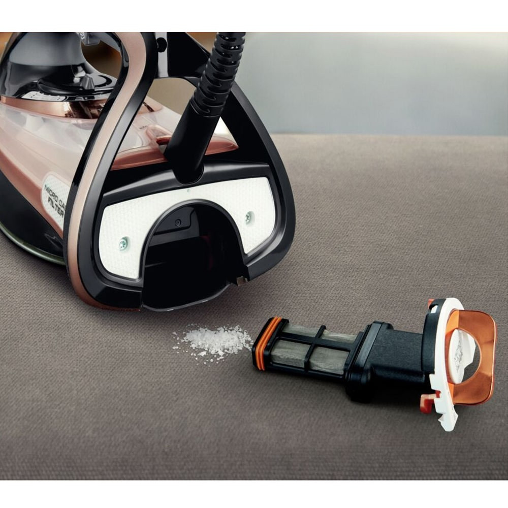 Tefal FV9845 قدرتمندترین اتو بخار تفال که لکههای رسوب آهک را روی لباسها متوقف میکند. این دستگاه دارای فناوری انحصاری و ثبت اختراع فیلتر Micro-Calc Filter است، یک نوآوری دو در یک که رسوب را متوقف میکند و بخار خالص برای اتو کردن نهایی تولید خواهد کرد. نحوه عملکرد آن به این صورت است: بخار که توسط رسوب آهکی در محفظه بخار، آلوده شده است، وارد فیلتر میشود. این فیلتر حتی کوچکترین ذرات رسوب را جذب میکند و 100% بخار خالص و فیلتر شده را تولید خواهد کرد بنابراین، میتوانید بدون نگرانی از لکهدار شدن لباسهایتان آنها را با خیال راحت اتو کنید. تمیز کردن این سیستم مدیریت انحصاری کلک و رسوب کاملا آسان است فقط آن را بیرون بکشید تا یکباره جرم را جدا کنید. در واقع این قابلیت با مدیریت استثنایی کلک پروسه اتوکشی البسه را لذت بخشتر خواهد کرد. اتو بخار دستی تفال 9845 دارای عملکرد Anti-drip یا همان ضد چکه است یعنی اینکه از چکیدن آب و لکهدار شدن لباسها جلوگیری خواهد کرد بنابراین بدون هیچ نگرانی از لکه شدن لباسهای ظریف و ابریشمی میتوانید با خیال راحت آنها را اتو کنید.