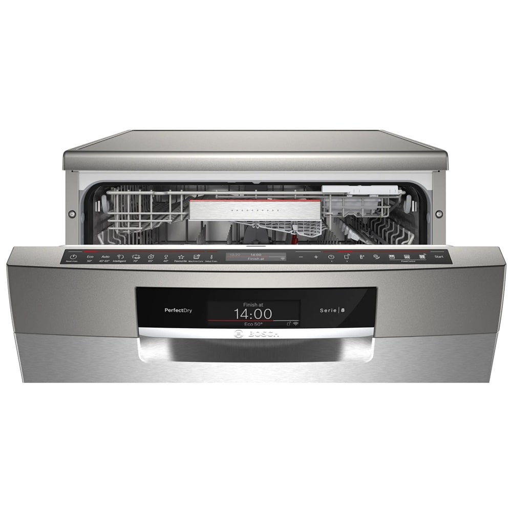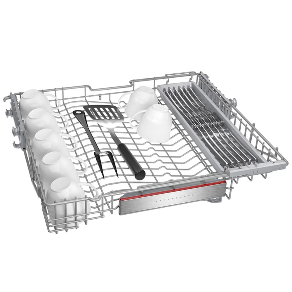 - طراحی کاملا مینیمال برای هماهنگی هر چه بهتر با آشپزخانه شما شستشوی اقتصادی (Eco) در 235 دقیقه دارای سنسور تشخیص میزان کثیفی آب و ظروف (AquaSensor) دارای قیف (Funnel) برای پر کردن مخزن نمک ماشین ظرفشویی قابلیت emotionLight برای روشنایی محفظه داخلی ماشین ظرفشویی جنس بدنه فولاد ضد زنگ (Stainless Steel) تکنولوژی Glass Protection برای محافظت از ظروف شیشه ای و ظریف هنگام شستشو Machine Care برای افزایش طول عمر دستگاه و عملکرد گند زدایی ظرفشویی دارای مبدل حرارتی (Heat Exchanger) برای خشک کردن ظروف دارای سیستم تمیز کردن خودکار با فیلتر 3 مرحله ای (Self-cleaning Filter System) دارای چرخه Intensive برای شستشوی ظروف بسیار کثیف دارای طبقه یا سبد بالا (Extra Space 3rd Basket) مخصوص قرارگیری قاشق، چنگال و ظروف کوچک قابلیت HygienePlus برای شستشوی بهداشتی و ضدعفونی کردن ظروف به کمک آب با دمای بالا دارای Wi-Fi برای اتصال به شبکه و اینترنت سیستم AquaStop برای جلوگیری از نشت آب با گارانتی مادام العمر توسط بوش تمیزکاری کامل برای ظروف بسیار کثیف در طبقه یا سبد بالایی (Extra Clean Zone) محفظه داخلی ماشین ظرفشویی از جنس فولاد ضد زنگ و تضمین کیفیت آن تا 10 سال توسط بوش پشتیبانی از اینترنت اشیا (IoT) برای مدیریت و کنترل ماشین ظرفشویی از راه دور تکنولوژی Detergent Detection برای صرفه جویی و تنظیم خودکار میزان استفاده از مواد شوینده قابلیت Remote Start برای شروع برنامه شستشو ماشین ظرفشویی از راه دور به کمک موبایل با برنامه Home Connect تکنولوژی PowerControl برای کنترل قدرت اسپری آب با قابلیت تنظیم در 3 حالت مختلف به منظور شستشوی بهتر ظروف دارای موتور EcoSilence Drive با صدای کم، راندمان و طول عمر بالا و صرفه جویی در مصرف انرژی قابلیت برداشتن قسمت بالایی ماشین ظرفشویی (Removable Top (Removable Top Cover)) دارای پنل کنترلی مخفی (Hidden Panel Control) پشتیبانی از برنامه Home Connect برای کنترل و مدیریت ماشین ظرفشویی از طریق موبایل دارای طبقات یا سبد های قابل تنظیم با سیستم VarioFlex دارای سبد کوچک Vario Basket یا Cutlery Basket مخصوص کارد، قاشق و چنگال دارای نشانگر پر کردن مجدد نمک (Salt Refill Icon) تکنولوژی Zeolith Drying برای خشک کردن بهتر و سریع تر ظروف و صرفه جویی در انرژی تکنولوژی Precise Glass Protection برای تنظیم خودکار سختی آب و جلوگیری از آسیب رسیدن به ظروف شیشه ای و ظریف