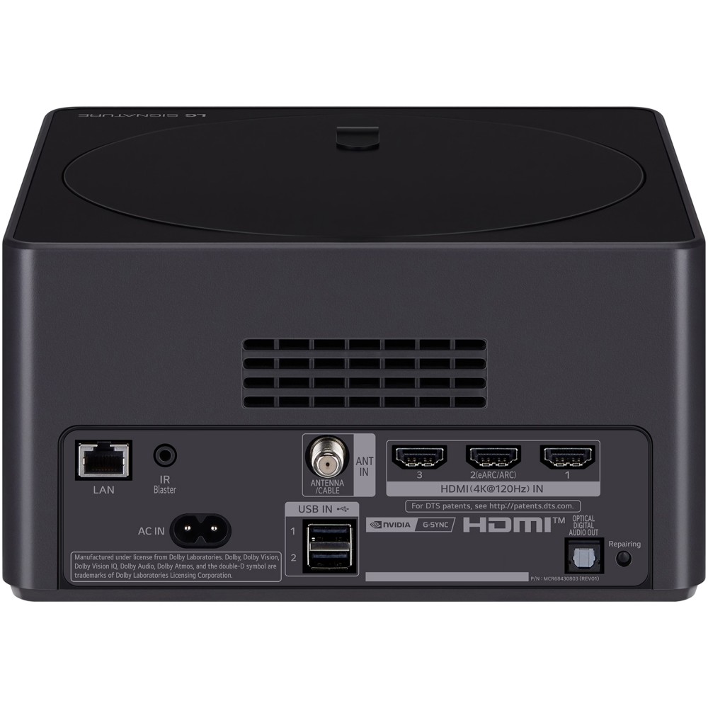 این تلویزیون دارای 3 پورت HDMI 2.1 است و توانایی نمایش کیفیت تصویر فورکی با سرعت 120 هرتز (4K@120Hz) را دارد. البته دقت کنید که نباید در پشت تلویزیون به دنبال پورت های ورودی و خروجی بگردید چون تمامی آن ها روی دستگاه مجزایی به نام زیرو کانکت باکس (Zero Connect Box) قرار دارند. دستگاه گفته شده سیگنال های صوتی و تصویری و داده ها را از طریق وای فای (Wi-Fi) و به صورت بی سیم به تلویزیون منتقل می کند. بنابراین شما با یک تلویزیون گیمینگ بی سیم طرف هستید. از ویژگی های این تلویزیون گیمینگ می توان به تکنولوژی VRR و پشتیبانی از رفرش ریت متغیر هنگام اتصال به کنسول بازی نسل نهم اشاره نمود که تجربه یک بازی صاف و روان را در اختیار شما قرار می دهد. البته خبر خوب برای پی سی گیمرها پشتیبانی از تکنولوژی Nvidia G-Sync و AMD FreeSync Premium در این مدل است. در نتیجه اگر کارت گرافیک کامپیوتر یا لپ تاپ شما نیز از تکنولوژی های فوق پشتیبانی کند شما می توانید هنگام اتصال آن دستگاه به تلویزیون، بازی های پی سی را نیز به صورت صاف و بدون مشکل بریده بریده شدن تصویر (Screen Tearing) در این تلویزیون تجربه نمایید. همچنین به لطف تکنولوژی ALLM هنگام اتصال کنسول بازی، کامپیوتر یا لپ تاپ گیمینگ به تلویزیون، تلویزیون به صورت خودکار به حالت بازی می رود و تاخیر ورودی پایین تری را در اختیار شما قرار می دهد تا تجربه بهتری را هنگام بازی کردن برای شما رقم بزند. علاوه بر آن، ال جی زمان پاسخگویی تصویر در این محصول را 0.1 میلی ثانیه عنوان کرده است که برای یک تلویزیون مقدار فوق العاده ای است (البته این عدد تا حدودی تبلیغاتی می باشد و در شرایط عادی این عدد بزرگ تر است). به لطف قابلیت HGiG در تلویزیون مذکور شما می توانید در قسمت های تاریک و روشن بازی های HDR جزئیات بیشتری را مشاهده کنید. از دیگر ویژگی های گیمینگ در تلویزیون فوق قابلیت Game Dashboard و Game Optimizer می باشد که به شما این امکان را می دهد تا از طریق یک داشبورد مخصوص، به آسانی هنگام بازی کردن به برخی از ویژگی ها و تنظیمات گیمینگ دسترسی داشته و در صورت نیاز حتی آن ها را تغییر دهید. به عنوان مثال این تلویزیون قابلیت Black Stabiliser دارد که شما به کمک آن امکان تنظیم مقدار گاما (Gamma) را دارید تا بتوانید در محیط های تاریک بازی ها جزئیات بیشتری را ببینید. همچنین قابلیت AI Game Sound نیز صدای بازی ها را به صورت هوشمند بهینه می کند تا بازی ها را با کیفیت صدای بهتری در این مدل تجربه کنید. اگر می خواهید در کنار بازی کردن در تلویزیون مذکور به تماشای محتوای دیگری مثل ویدئو راهنمای بازی بپردازید تنها کافی است تا از قابلیت Multi View استفاده نمایید. در صورتی که می خواهید برای کنسول بازی نسل نهم خود نظیر ایکس باکس سری ایکس و پلی استیشن 5 یک تلویزیون گیمینگ حرفه ای و با کیفیت تصویر عالی بخرید؛ این محصول می تواند یکی از انتخاب های پیش روی شما باشد. در صورتی که سیستم گیمینگ یا کنسول بازی ندارید می توانید از قابلیت گیمینگ ابری (Cloud Gaming) در این مدل استفاده کرده و به صورت آنلاین در تلویزیون بازی نمایید. دقت کنید که برای استفاده از این قابلیت به اینترنت پرسرعت و اشتراک سرویس گیمینگ ابری (مثل Utomik و NVIDIA GeForce NOW) نیاز دارید. به گفته ال جی، تلویزیون های 2023 این شرکت می توانند از طریق سرویس گیمینگ ابری، بازی ها را با کیفیت تصویر فورکی و با سرعت 60 فریم بر ثانیه به شما ارائه دهند.