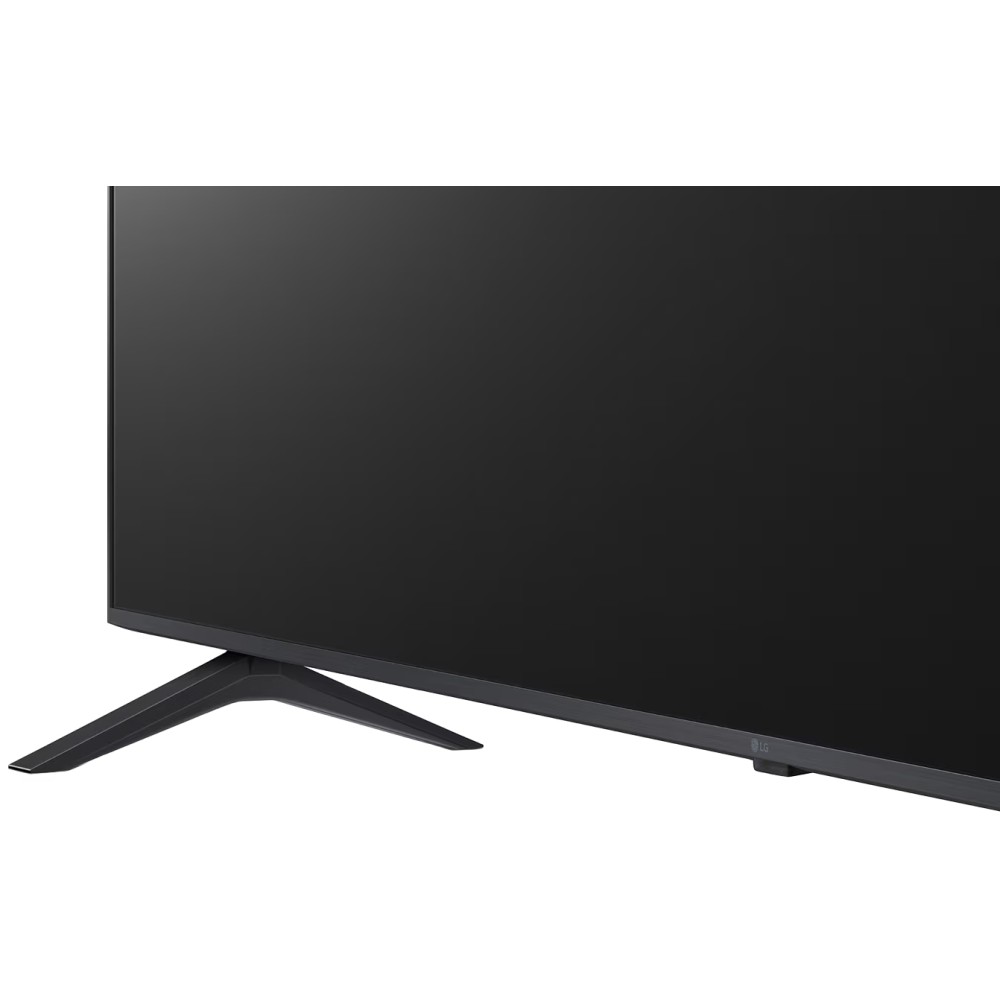 در تلویزیون 70 اینچ ال جی UR8050 حاشیه های 3 طرف صفحه نمایش در مقایسه با ضلع پایینی، به صورت باریک تر طراحی شده اند. در واقع این تلویزیون از زبان طراحی 3 Sided Cinema Screen برخوردار می باشد و به شما امکان آن را می دهد که بر روی محتوای در حال پخش، تمرکز بیشتری داشته باشید. پایه های رومیزی طراحی شده برای تلویزیون مذکور نیز همانند سایزهای دیگر آن از نوع دو شاخه است که با استفاده از پیچ می توانید آن ها را در دو طرف آن متصل نمایید. این پایه ها از جنس پلاستیکی ساخته شده اند تا وزن سبک تری داشته باشند. الجی برای قاب این محصول از رنگ خاکستری استفاده نموده است که سبب ایجاد هارمونی و هماهنگی با رنگ بدنه آن شده و زیبایی آن را دوچندان کرده است. ضخامت بدنه محصول پیش روی شما 5.99 سانتیمتر می باشد و در صورتی که بخواهید آن را بر روی دیوار نصب کنید، مشکلی نخواهد داشت. توجه داشته باشید که جهت نصب این تلویزیون بر روی دیوار باید براکت دیواری مخصوص آن را به صورت جداگانه تهیه نمایید. در جعبه این محصول یک بست کمربندی، Cable Management و گیره های مخصوص مدیریت کابل قرار دارند که شما به کمک آن ها می توانید کابل های مربوطه را منظم و مرتب نمایید. این تلویزیون دارای کابل برق دو شاخه می باشد و برای استفاده از آن نیازی به تهیه تبدیل نخواهید داشت.