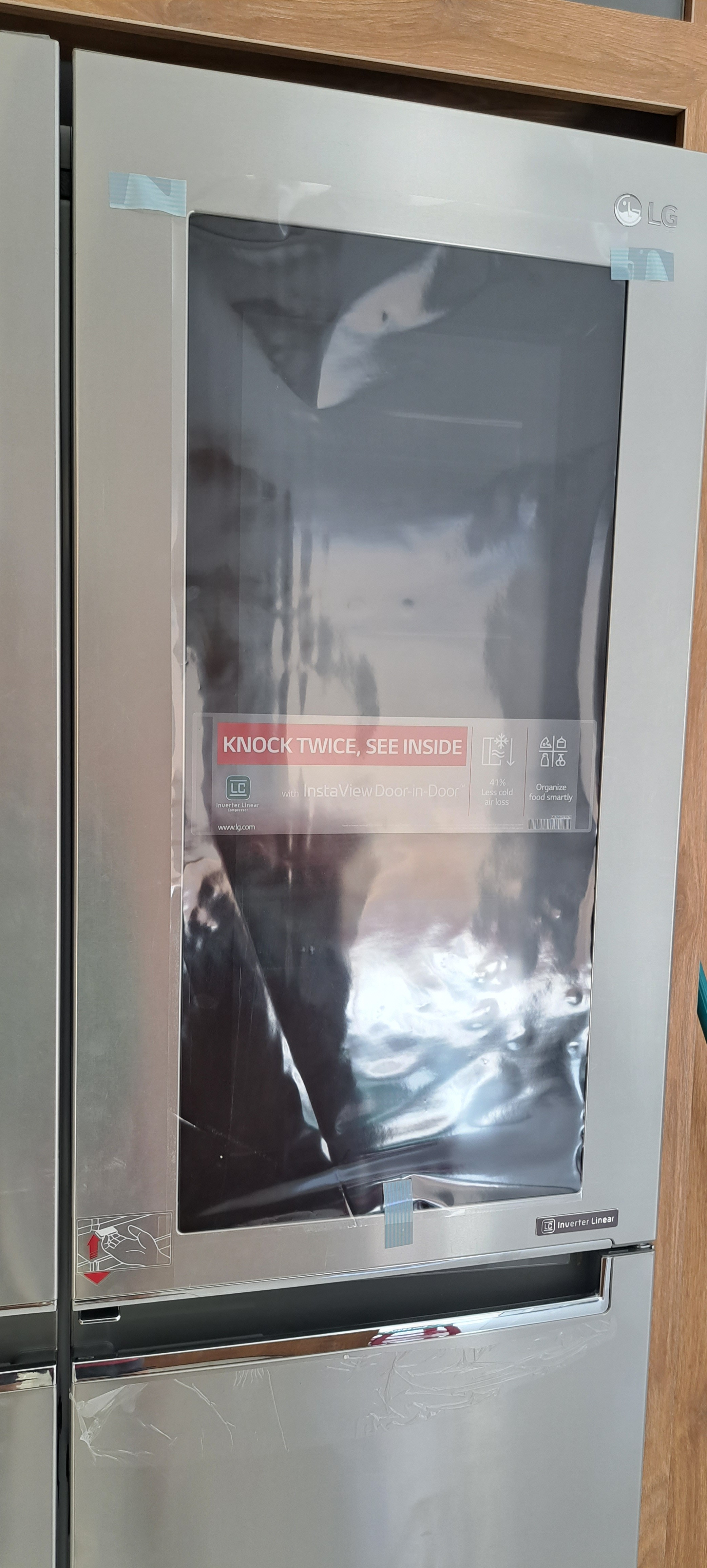 قابلیت اینستاویو (InstaView) یک صفحه یا پنل شیشهای و شفاف است که روی درب یخچال قرار دارد و به شما اجازه میدهد تا بدون باز کردن درب یخچال و هدررفت سرما و تنها با دوبار ضربه (Knock Knock) روی آن، لامپ داخل یخچال روشن شده و میتوانید داخل آن را مشاهده کنید و مواد غذایی و آیتمهای داخل یخچال را ببینید و جای آنها را پیدا کرده و سپس درب را باز کرده و در کمترین زمان ممکن آنها را بردارید.