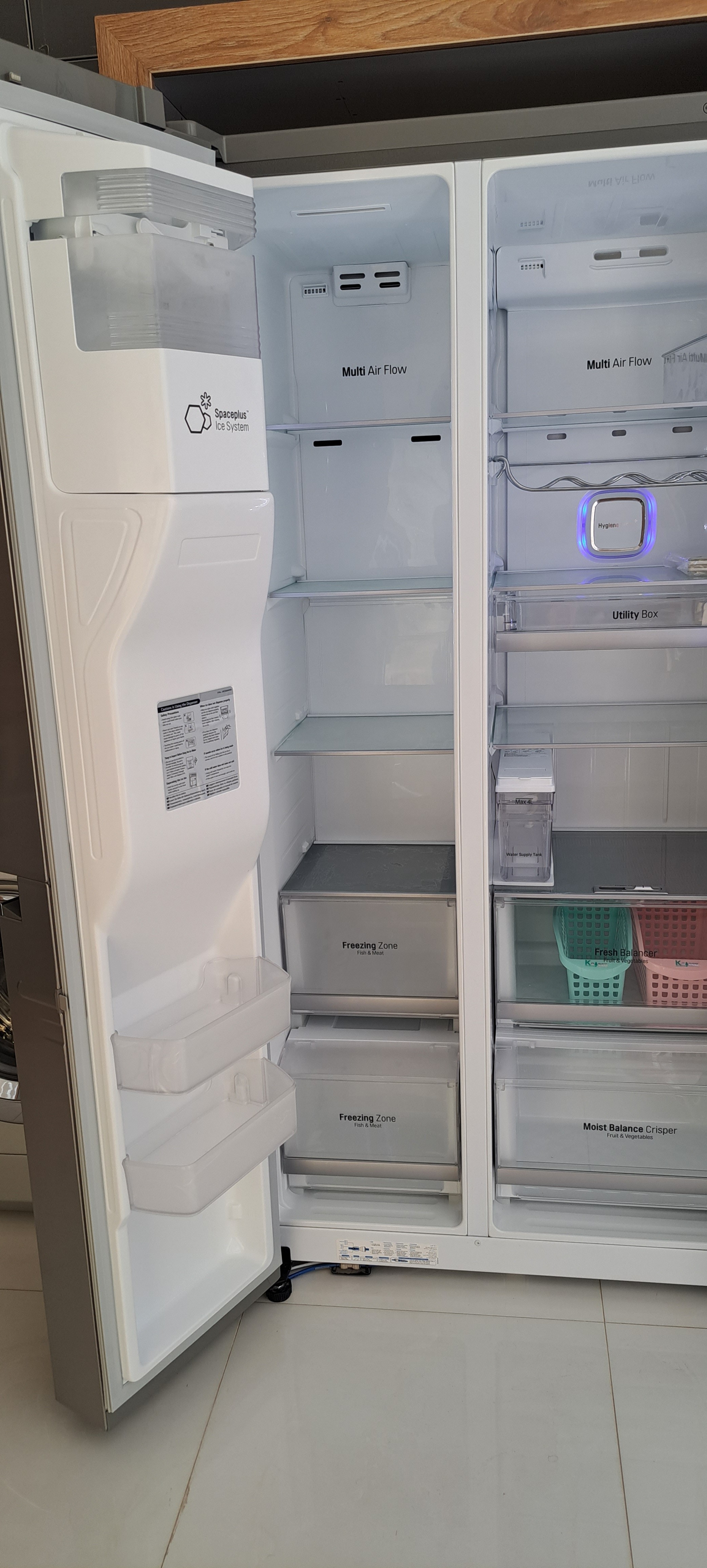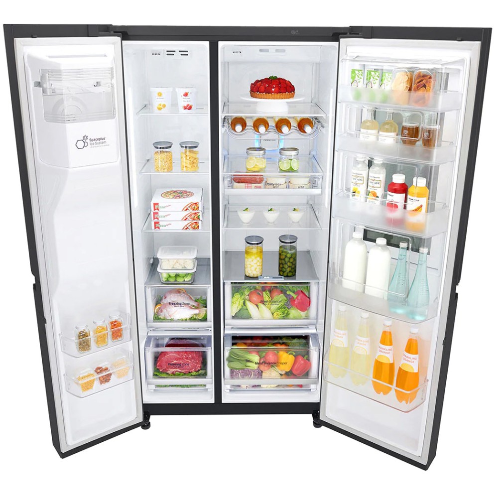 ویژگی برجسته یخچال فریزر ال جی X257 این است که درب یخچال دارای هر دو قابلیت "InstaView" و "Door-in-Door" میباشد. InstaView به این معنی است که نیمه بالایی درب یخچال از شیشه الماسی پاسخگو است. هنگامی که دو بار به این شیشه ضربه میزنید، چراغهای داخلی یخچال روشن میشوند، بنابراین میتوانید آنچه را در قفسههای درب، قفسههای نوشیدنی و قفسههای شیشهای در نیمه بالایی یخچالتان وجود دارد، ببینید. Door-in-Door به این معنی است که پنل InstaView باز میشود تا به شما امکان دسترسی به قفسههای درب بدون باز کردن درب تمام قد را بدهد. تنظیمات را مانند یک ایوان یا یک درب صفحهای به درب اصلی یخچال در نظر بگیرید. این یخچال فریزر ساید بای ساید ال جی X257 از دو بخش یخچال و فریزر تشکیل شده است که درب سمت چپ متعلق به فریزر و درب سمت را که قسمت اینستاویو بر روی آن قرار دارد متعلق به بخش یخچال میباشد. اجزای داخلی بخش یخچال شامل دو کشوی Fresh Balancer و Moist Balance Crisper میباشد. Fresh Balancer مقدار صحیح رطوبت را تنظیم میکند تا سبزیجات و میوههای شما را با فشار دادن یک دکمه در بهترین حالت نگه دارد. در قسمت میانی یخچال هم کشوی Utility Box وجود دارد که برای نگهداری اقلام غذایی کوچک کاربردی میباشد. امکان تنظیم میزان رطوبت در داخل کشوی Moist Balance Crisper وجود دارد. در واقع تعادل مناسب رطوبت در جعبه حفظ میشود و میوه و سبزیجات داخل آن برای مدت زمان طولانیتری تازه و سالم باقی خواهند ماند. در بالای این کشوها تعدادی قفسه وجود دارد که به خوبی میتوانند وزن مواد غذایی را تحمل کنند. در بخش فریزر هم چند قفسه به همراه دو کشو Freezing Zone (مخصوص نگهداری گوشت و ماهی) وجود دارد. ضمن اینکه دو قفسه دیگر هم بر روی درب زیر محفظه یخساز قرار داده شده است. سیستم یخساز اتوماتیک این یخچال فریزر از نوع SpacePlus Ice System میباشد که فضای کمی برای قرارگیری اشغال میکند. از طریق پنل لمسی موجود بر روی درب فریزر میتوانید برخی از تنظیمات دستگاه را انجام دهید. علاوه بر این در زیر این بخش محفظه آبسرد کن و یخریز قرار دارد که دسترسی سریع به آب سرد و تکهها کوچک یخ را فراهم میکنند.