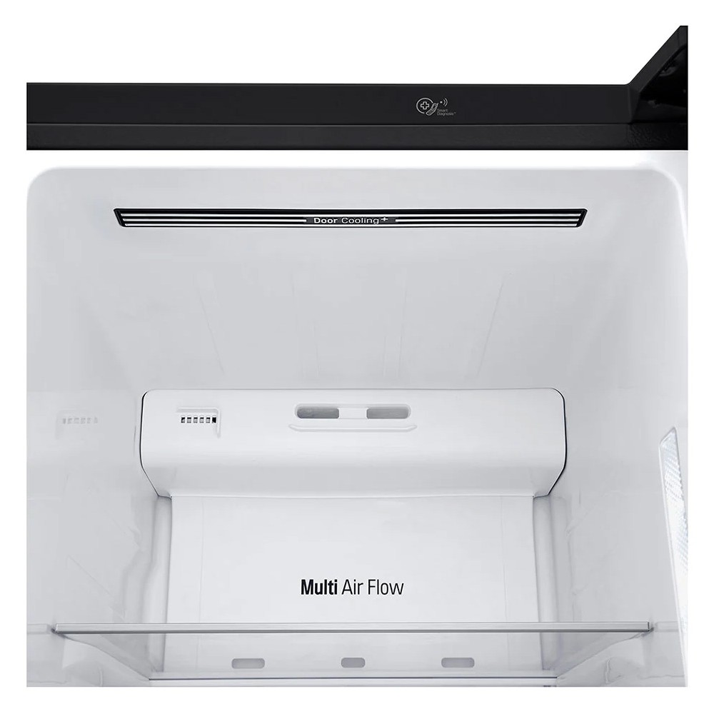 فناوری جریان هوای چندگانه (Multi Air Flow)، فناوری توسعه یافته توسط ال جی برای اطمینان از جریان هوای کاملتر و یکنواختتر در داخل یخچالها است که میتوانید شاهد فعالیت آن بر روی یخچال فریزر 24 فوت ال جی X257 باشید. این قابلیت به تازهتر ماندن غذا و جلوگیری از عدم تعادل دما در قفسهها کمک میکند و دماهای دقیقتر و ثابتتری را ارائه میکند. این فناوری از چندین ویژگی پیشرفته مانند دریچههای متعدد در حفره یخچال، خنککننده جریان هوای چندگانه و محرک هوا تشکیل شده است که همگی برای بهینهسازی و گردش هوا در داخل یخچال بهطور کارآمدتر طراحی شدهاند. دریچههای متعدد در حفره یخچال، جریان هوا را به خوبی توزیع میکنند که نقاط گرم و سرد را از بین میبرد. در واقع این ویژگی محرک هوا به شدت جریان هوای داخل یخچال را کنترل میکند و به حفظ دمای ثابت در داخل یخچال کمک خواهد کرد و جریان هوای سرد را به طور یکنواخت به دیواره پشتی و قفسهها پخش میکند بنابراین این سیستم خنک کننده خلاقانه شرایطی عالی را برای نگهداری مواد غذایی شما در داخل یخچال فراهم میکند. DoorCooling یا همان خنک کننده درب ال جی چگونه کار میکند؟ این قابلیت جریان هوای سردی را فراهم میکند که با باز یا بسته شدن درب یخچال، یخچال را سریعتر خنک خواهد کرد. یخچال این جریان هوای سرد را در تمام عرض دستگاه از بالا به پایین انتشار میدهد بنابراین حتی محتویات داخل درب یخچال هم خنک میشوند به این ترتیب، مواد غذایی شما تحت تأثیر تغییرات دما قرار نمیگیرند و نوشیدنیهای در یا پشت به همان اندازه خنک هستند که نوشیدنیهای وسط آن خنک میباشند. در واقع عدم وجود نوسان دمایی در یخچال مزیت بزرگی برای غذای شماست. دمای ثابت تضمین میکند که مواد غذایی شما ماندگاری طولانیتری دارند. این فناوری به سرعت فضای داخلی یخچال را به دمای مناسب باز میگرداند. به این ترتیب یخچال نسبت به مدلهای دیگر انرژی کمتری مصرف میکند.