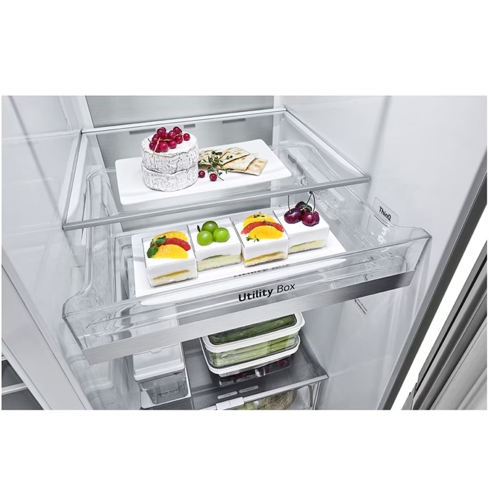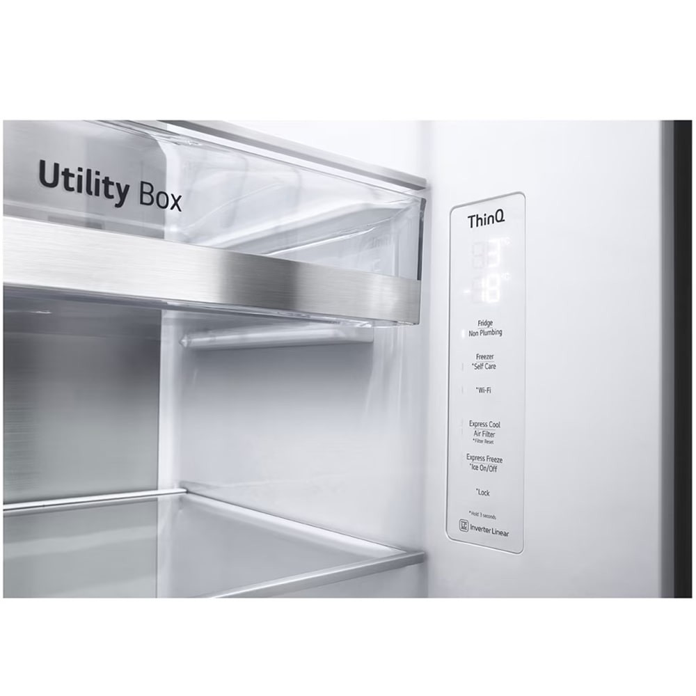 - بوگیر یا Deodorizer جهت جلوگیری از پخش بوی مواد غذایی در یخچال تکنولوژی LINEAR Cooling (LinearCooling) جهت حفظ و کنترل دقیق دما در داخل یخچال و فریزر با نوسان 0.5 درجه سانتیگراد تکنولوژی UVnano برای از بین بردن باکتریهای دهانه آبریز تا 99.99% با استفاده از نور فرابنفش قابلیت Self Care برای فعال کردن دستی نور UV و پاکسازی دهانه آبریز کشوی Freezing Zone برای نگهداری از مواد غذایی گوشتی و ماندگاری طولانی مدت آنها بدون یخ زدن پشتیبانی از اسپیکر هوشمند Google Home برای مدیریت و کنترل یخچال (ممکن است برای تمام مناطق جغرافیایی در دسترس نباشد) سیستم یخ ریز با قابلیت تولید یخ حبه ای (مکعبی) و یخ خرد قابلیت Express Freeze برای انجماد سریع در فریزر و یخ ساز تکنولوژی +Hygiene FRESH با فیلتر 5 لایه برای از بین بردن باکتری ها تا 99.999% و بوی بد مواد غذایی و تصفیه هوای داخلی یخچال کشوی Utility Box مناسب نگهداری از لبنیات و مواد غذایی سیستم عیب یاب هوشمند (Smart Diagnosis) برای عیب یابی راحت تر دارای صفحه فلزی مخصوص (Metal Fresh) در قسمت داخلی یخچال برای ثابت نگهداشتن و حفظ سرما تکنولوژی Bio Shield (Gasket) و لاستیک ضد باکتری دور درب جهت افزایش عمر یخچال طراحی مدرن و یکپارچه (Modern) جهت هماهنگی بیشتر با کابینت و دکوراسیون آشپزخانه طبقات یخچال و فریزر از جنس شیشه حرارت دیده تکنولوژی +Door Cooling برای سرمایش سریع تر مواد غذایی موجود در درب یخچال پشتیبانی از برنامه LG ThinQ برای کنترل و مدیریت یخچال فریزر از طریق موبایل (مخصوص موبایل های اندرویدی و iOS) سیستم یخ ساز اتوماتیک با طراحی باریک برای اشغال فضای کمتر (SpacePlus Ice System) قابلیت Express Cool برای سرمایش سریع در یخچال پشتیبانی از دستیار صوتی گوگل (Google Assistant) (ممکن است برای تمام مناطق جغرافیایی در دسترس نباشد) کشوی Fresh Zone مخصوص نگهداری میوه و سبزیجات پشتیبانی از اینترنت اشیاء (IoT) برای مدیریت و کنترل یخچال فریزر توسط دستگاههای هوشمند سازگار از طریق شبکه و اینترنت پشتیبانی از اسپیکر هوشمند Amazon Echo برای مدیریت و کنترل یخچال (ممکن است برای تمام مناطق جغرافیایی در دسترس نباشد) قابلیت درب در درب (Door-in-Door) برای دسترسی به برخی مواد غذایی بدون باز کردن درب اصلی یخچال و جلوگیری از هدر رفت سرما قابلیت Fresh Balancer برای تنظیم رطوبت در کشوی مخصوص سبزی و میوه جهت افزایش ماندگاری آنها استفاده از گاز R600a برای ایجاد سرمایش و سازگاری با محیط زیست سیستم تهویه هوای Multi Air Flow برای توزیع هوای سرد یکنواخت در کل یخچال و فریزر از طریق دریچه های هوای متعدد قابلیت Child Lock (Lock) برای قفل کردن پنل کنترلی یخچال دستگیره مخفی (Pocket Handle) سیستم بدون برفک (No Frost) پشتیبانی از دستیار صوتی الکسا (Amazon Alexa) (ممکن است برای تمام مناطق جغرافیایی در دسترس نباشد) تضمین عملکرد و کارایی موتور Inverter Linear Compressor تا 10 سال توسط ال جی مناسب برای مناطق جغرافیایی با آب و هوای گرمسیری (Tropical) یا T