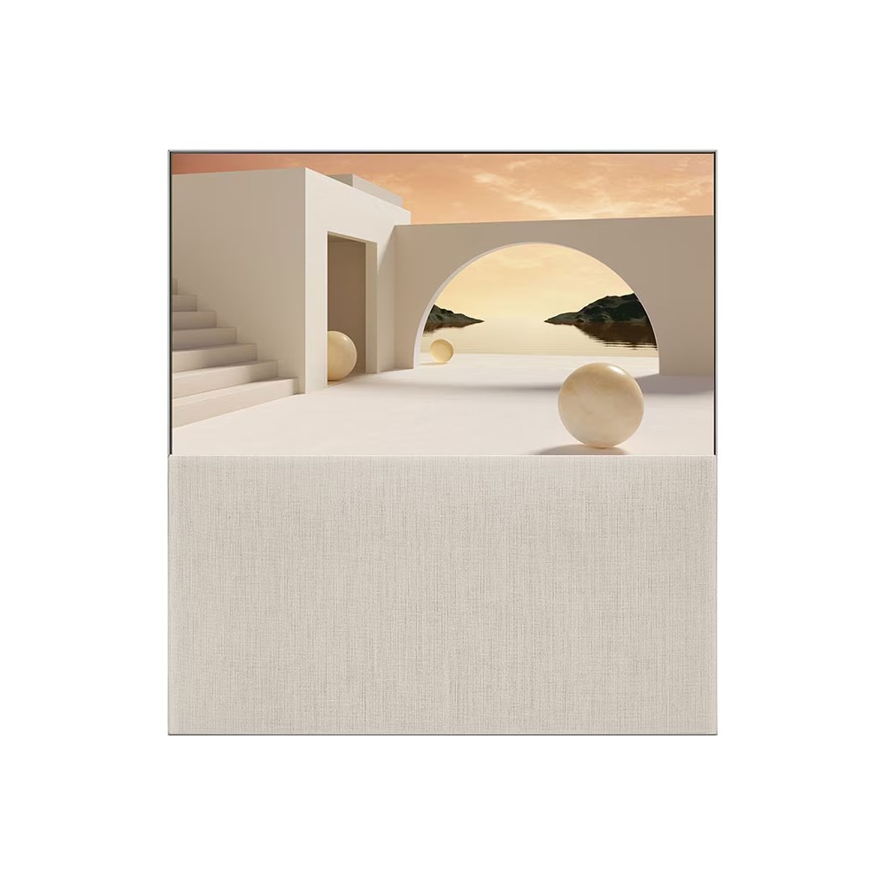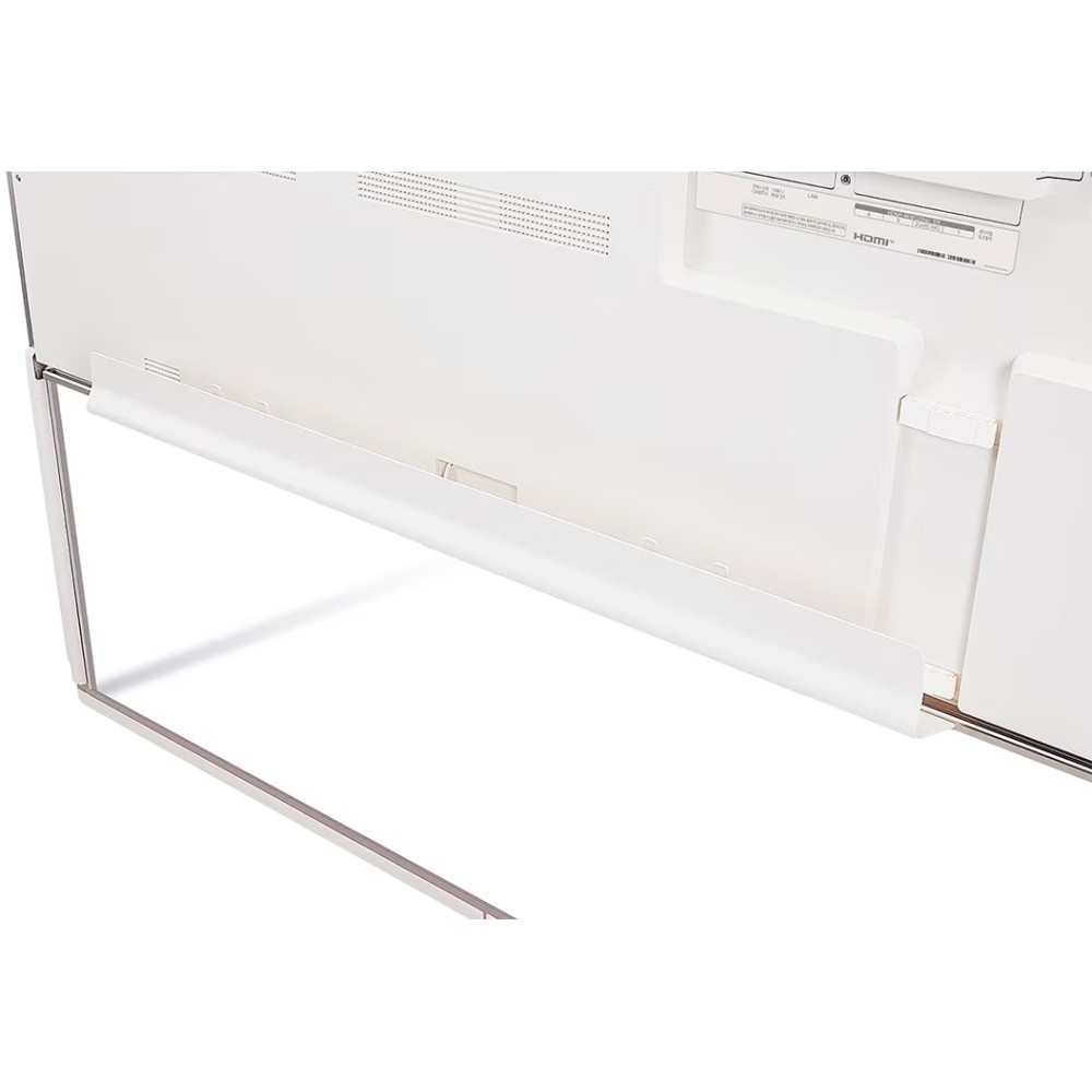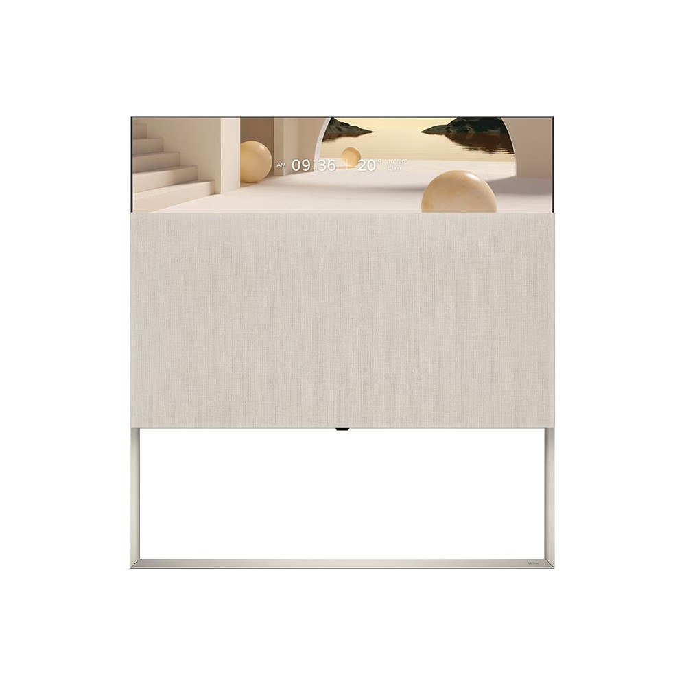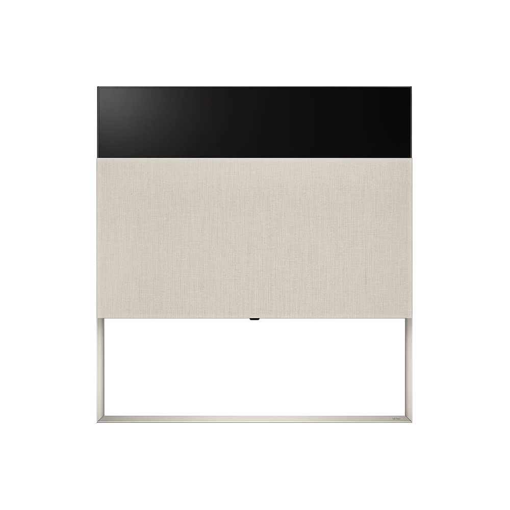 تلویزیون 65 اینچ ال جی ART90 یکی از تلویزیون های لوکس این برند کره ای است که طراحی بسیار شیک و منحصر به فردی دارد. همانطور که گفته شد تلویزیون مذکور با عنوان Objet Collection Pose معرفی شده است. این عنوان به این دلیل برای این تلویزیون انتخاب شده که طراحی منحصر به فردی دارد و رنگ های به کار رفته در آن خنثی هستند؛ بنابراین با اکثر دکوراسیون ها هماهنگی کاملی دارد. محصول پیش روی شما از زبان طراحی Easel برخوردار می باشد. ال جی این زبان طراحی را از بوم نقاشی که بر روی سه پایه قرار دارد، الهام گرفته است. این تلویزیون دارای یک پایه چهارچوب مانند است که در قسمت بالایی آن، تلویزیون قرار می گیرد. برای سیستم صوتی این محصول نیز جایی در زیر تلویزیون تعبیه شده است. رنگ نقره ای براق این پایه، جذابیت خاصی به تلویزیون مذکور بخشیده است. تلویزیون پیش رو از یک کاور متحرک برخوردار است که دارای روکش پارچه ای خاصی می باشد. این روکش پارچه ای به رنگ بژ طراحی شده و بافت آن نیز به گونه ای است که علاوه بر ظرافت ظاهری، توانایی پخش کردن امواج صدا را نیز دارد (همانطور که قبلا اشاره شد، بلندگوهای این تلویزیون در زیر این کاور متحرک قرار دارند). انتخاب و طراحی روکش پارچه ای مذکور توسط یک نساجی معروف دانمارکی با برند Kvadrat انجام گرفته است (این نساجی به عنوان برترین نساجی جهان نیز شناخته شده است). این روکش از بالاترین درجه کیفیت پارچه مصنوعی برخوردار می باشد و شما می توانید بر روی کیفیت فوق العاده و دوام بالای این پارچه حساب ویژه ای باز کنید. جالب است بدانید که پارچه این تلویزیون قابلیت تعویض نیز دارد. طبق همکاری ال جی با شرکت طراحی Moooi این امکان برای شما وجود دارد که طرح این پارچه را متناسب با دکوراسیون داخلی خود انتخاب نمایید؛ در واقع شما می توانید از طریق شرکت نام برده، طرح مورد نظر خود را سفارش دهید و پس از تحویل آن، این روکش را تعویض نمایید. کاور مذکور قابلیت قرار گیری در 2 حالت Line View و Full View را دارد؛ در واقع شما با فشردن دکمه مخصوص تعبیه شده (دکمه Cover Up Down) بر روی ریموت کنترل این محصول، می توانید کاور پارچه ای را در یکی از حالت های گفته شده قرار دهید. در واقع زمانی که می خواهید به تماشای تلویزیون بپردازید، با فشردن این دکمه، کاور متحرک به سمت پایین حرکت می کند و شما می توانید به کل صفحه نمایش دسترسی داشته باشید (حالت Full View) و به لطف تصویر و صدای بی نظیر این محصول، از تماشای محتوای مورد نظر لذت ببرید. علاوه بر این زمان هایی که استفاده ای از تلویزیون ندارید، می توانید دکمه Cover Up Down را فشار دهید تا کاور به سمت بالا حرکت کند. در این حالت کاور تنها تا جایی بالا می رود که نمایی خطی از تلویزیون (حالت Line View) را در اختیار شما قرار دهد. شما می توانید اطلاعاتی نظیر تاریخ، ساعت و آب و هوا را در این حالت مشاهده کنید. علاوه بر این شما می توانید در این حالت موسیقی نیز پخش کنید و از گوش دادن به آن لذت ببرید و یا حتی می توانید تم دلخواه خود را برای این حالت تنظیم کنید تا هماهنگی بیشتری با دکوراسیون شما داشته باشد. جالب است بدانید که این کاور متحرک هنگام بالا و پایین رفتن موسیقی جذاب و هماهنگی را پخش می کند. بدنه این محصول به رنگ سفید طراحی شده است که هارمونی خاصی را با روکش پارچه ای بژ و پایه نقره ای رنگ آن ایجاد می کند. ال جی در جعبه این محصول یک پایه دیواری مخصوص قرار داده است که به کمک آن می توانید این تلویزیون را بر روی دیوار نصب کنید. برای اینکه بتوانید محل دقیق نصب براکت را بر روی دیوار پیدا کنید، در جعبه تلویزیون یک کارتن مقوایی راهنما قرار دارد که قسمت نصب پایه را نشان می دهد. شما می توانید با قرار دادن این کارتن بر روی دیوار، محل نصب براکت را به کمک فضای خالی داخل آن مشخص کنید. این پایه به صورت دو تکه می باشد که یک قسمت آن به دیوار و قسمت دیگر به تلویزیون متصل می شود. براکت دیواری این تلویزیون، به شما امکان آن را می دهد که بتوانید به دلخواه، تلویزیون را همانند یک کاور ع