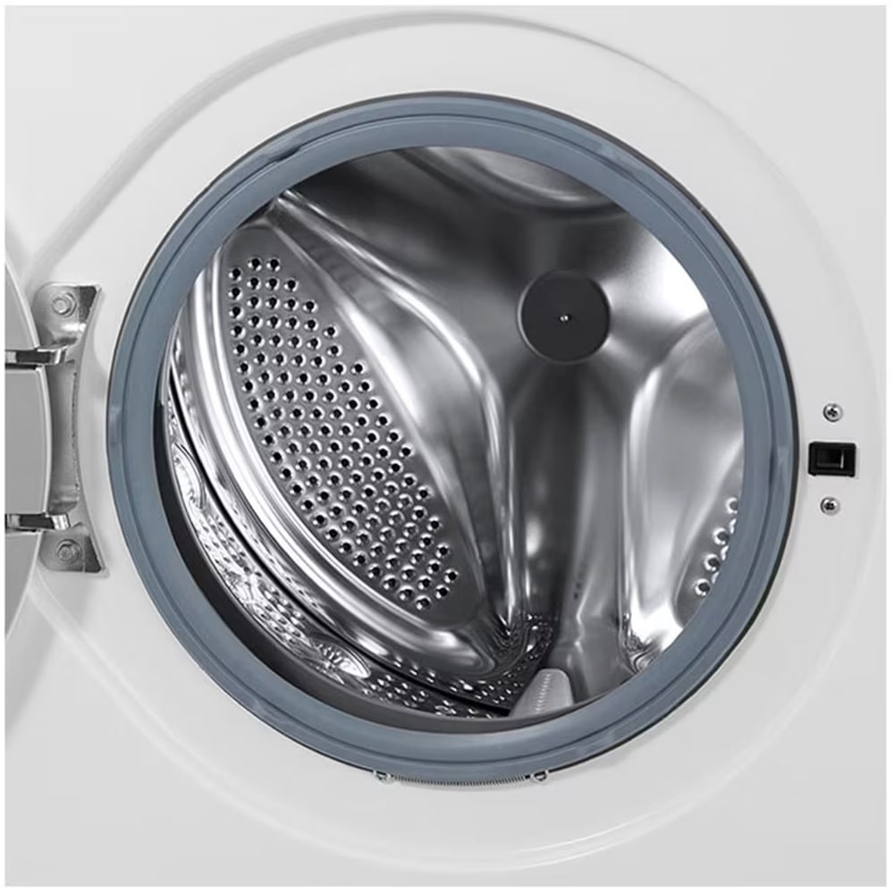 ظاهر ماشین لباسشویی LG WJ1408NTP با خطوط نرم و یکدست طراحی شده تا حس یک محصول مدرن و حرفهای را منتقل کند و در عین حال با هر سبک چیدمان آشپزخانه هماهنگ باشد. درب شیشهای بزرگ با شفافیت بالا، دید کاملی از فضای داخلی ایجاد میکند و به دلیل حاشیه مقاومتر، دوام بیشتری نسبت به نسلهای قدیمیتر دارد. پنل کنترلی با نمایشگر LED خوانا و پیچ انتخابگر مرکزی به گونهای طراحی شده که دسترسی به برنامهها کاملا ساده و مستقیم باشد؛ صفحه نمایش اطلاعات اصلی مانند زمان باقی مانده، دما، سرعت چرخش و وضعیت شستشو را به شما نشان خواهد داد. دیگ استیل با پدالهای Slim Lifter طوری ساخته شده که حرکت لباس روی سطح داخلی نرمتر و یکنواختتر باشد و تماس آب و کف به شکل مؤثرتری انجام گیرد. همین طراحی سبب میشود پارچههای حساس کمتر تحت فشار قرار گیرند و شستشو با حداقل سایش انجام شود. در قسمت پایین درب دیگ شستشو نیز دریچهای را خواهیم دید که محل فیلتر خروج آب یا Drain Pump Filter است؛ فیلتر مذکور از وارد شدن اشیای بزرگ مانند سکه و یا هر اشیایی که در جیب لباسها جا ماندهاند به سیستم فاضلاب جلوگیری مینماید و شما میتوانید از این قسمت آنها را خارج نمایید.