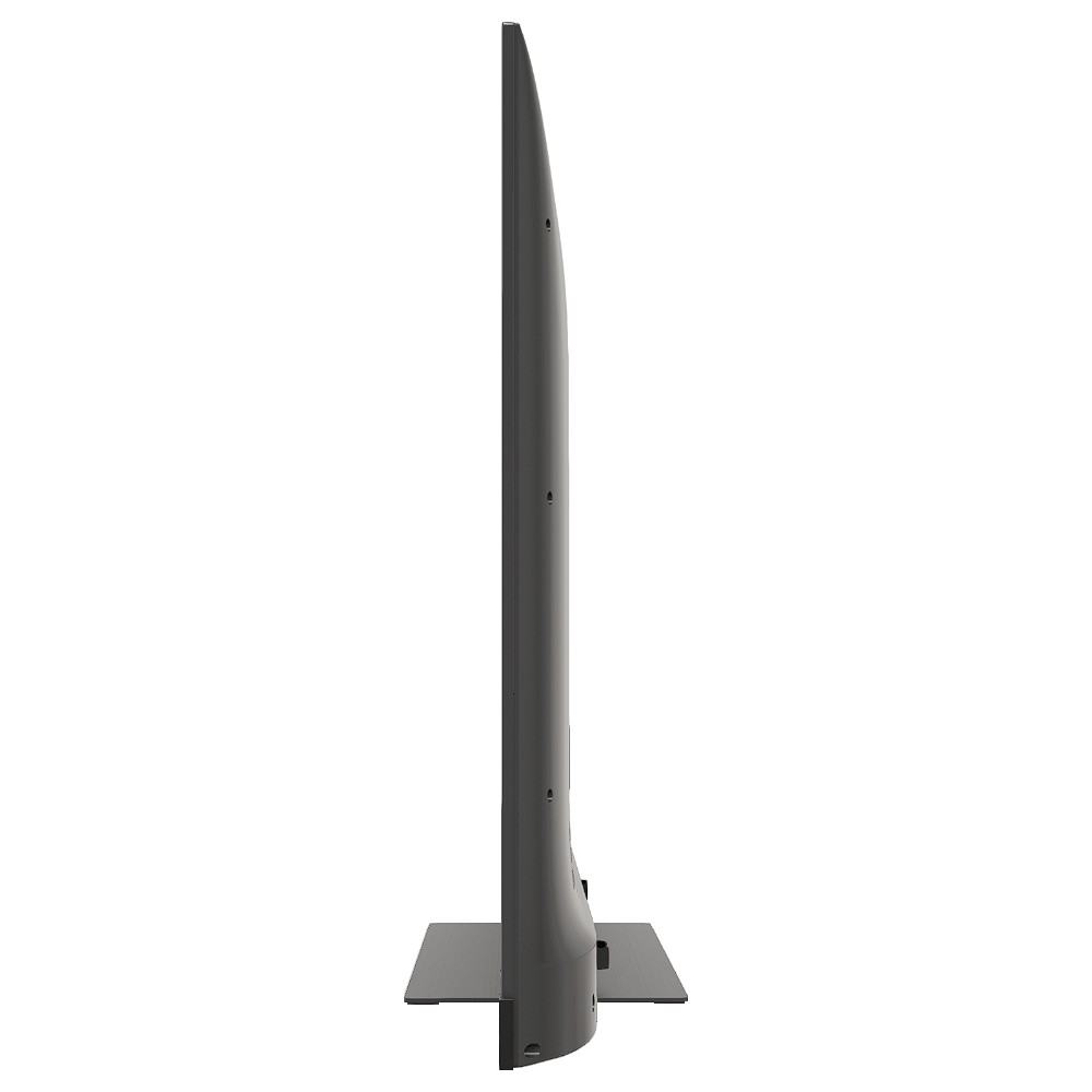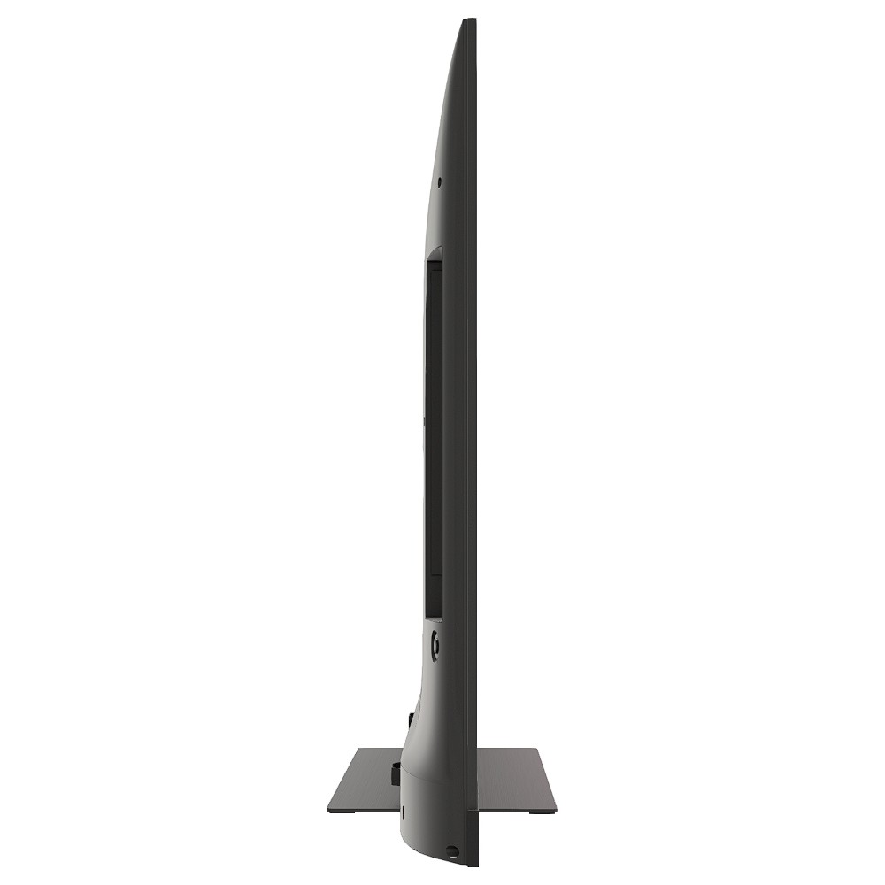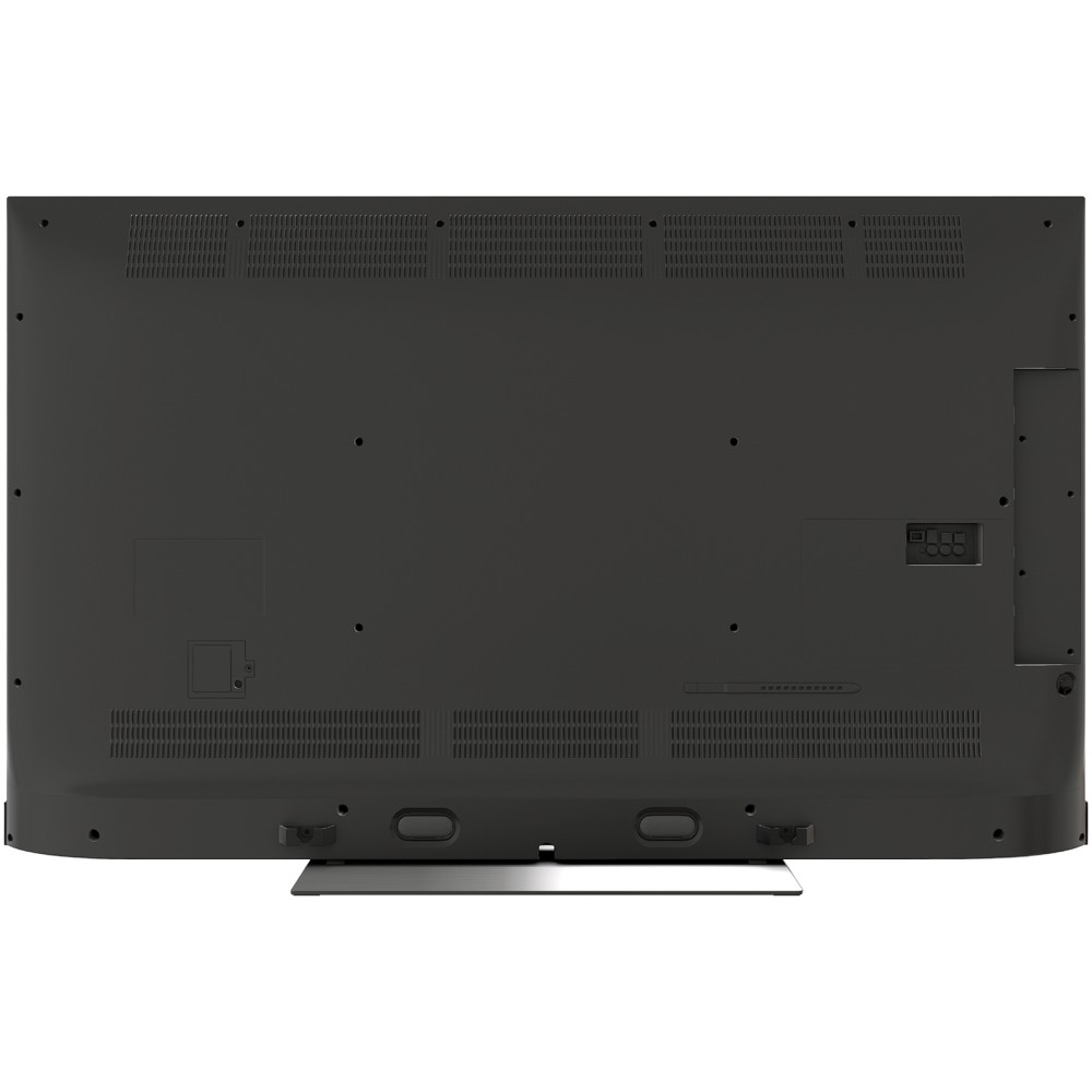 تلویزیون 65 اینچ توشیبا Z770 از کیفیت ساخت و طراحی بسیار خوبی برخوردار است. همانطور که پیش تر نیز عرض کردیم طراحی این تلویزیون در کشور ژاپن و توسط توشیبا انجام شده است و تحت لیسانس این شرکت در کشور چین مونتاژ شده است. به دلیل استفاده از نور پس زمینه Direct Full Array LED در این مدل، ضخامت آن کمی زیاد است (البته به نسبت تلویزیون های بالارده) و نمی توان آن را باریک دانست. در هر صورت طراحی آن مینیمال و شیک است و از این لحاظ راضی کننده می باشد. حاشیه ها و قاب صفحه نمایش این تلویزیون طراحی Bezel Less دارند و 3 طرف آن بسیار باریک طراحی شده اند تا روی محتوای در حال پخش تمرکز کرده و از تماشای آن لت ببرید. همانطور که قبلا عرض کردیم بلندگوهای این محصول نیز در قسمت قاب پایینی صفحه نمایش تعبیه شده اند و به شکل یک ساندبار هستند و ظاهر شیک و مدرنی به تلویزیون بخشیده اند. تلویزیون مذکور دارای یک پایه وسط و به شکل خطی است که تماما از فلز (آلومینیوم) ساخته شده و توشیبا نام طراحی آن را Pure Metal Stand نامیده است. پشت تلویزیون دو گیره مخصوص مدیریت کابل نیز تعبیه شده است که می توانید از آن ها برای مرتب و منظم کردن کابل های متصل به تلویزیون استفاده کنید. علاوه بر آن، داخلی جعبه این محصول یک بست کمربندی نیز وجود دارد که به قابلیت Anti-Tip Clip نیز معروف است و می توانید آن را پشت تلویزیون در محلی که برای آن مشخص شده نصب کرده و سر دیگر آن را به میز یا دیوار پیچ کنید تا از تلویزیون در مقابل سقوط یا افتادن جلوگیری کند. البته از این بست کمربندی معمولا در ویترین فروشگاه ها و نمایشگاه ها استفاده می شود تا از سقوط آن جلوگیری شود. علاوه بر آن برای کسانی که حیوان خوانگی کوچک یا کودک خردسال دارند نیز کاربردی است تا احتمال وقوع حوادث ناگوار کاهش یابد. همانطور که خدمت شما عرض کردیم سیستم صوتی تلویزیون فوق دارای 4 رادیاتور پسیو است. 2 عدد از این رادیاتورهای پسیو پشت تلویزیون تعبیه شده و نمایان هستند که شاید نظر شما را به خود جلب کنند و دو عدد از آن ها نیز زیر توری جلوی تلویزیون که بلندگوها در آنجا نصب شده اند، قرار دارد. توجه داشته باشید که کابل برق این مدل جدا شدنی نیست و شما نمی توانید آن را از تلویزیون جدا کنید. همانطور کابل برق این تلویزیون سه شاخه است و نیاز به یک تبدیل 3 به 2 برق برای استفاده در ایران خواهید داشت.