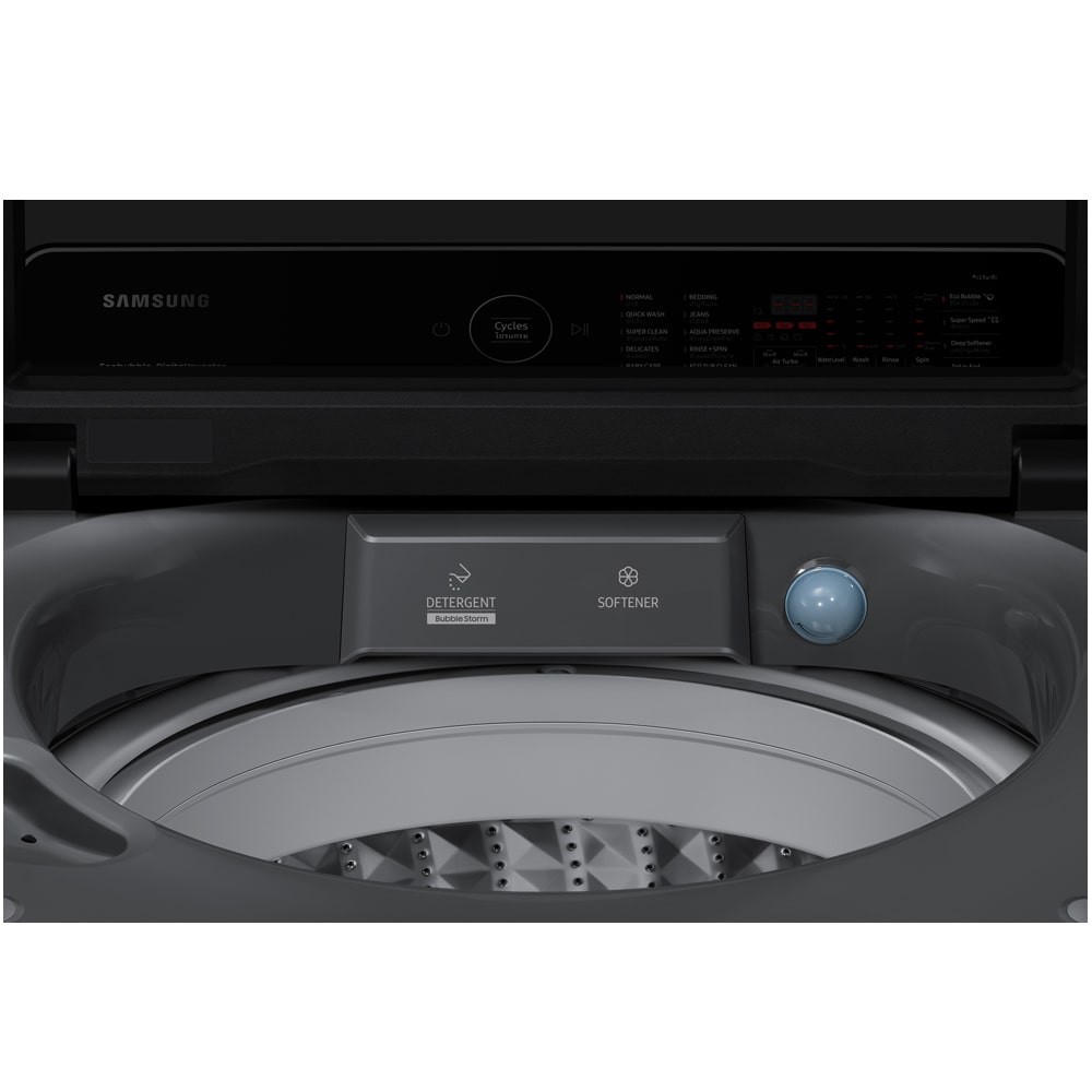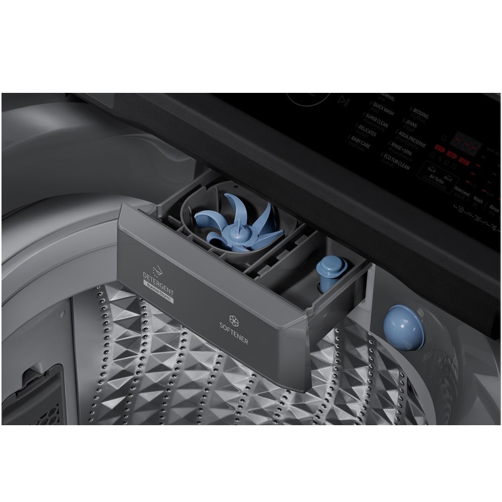 تکنولوژی Digital Inverter Technology به عنوان قلب تپنده این محصول یعنی موتور آن نقش آفرینی میکند. موتور دیجیتال اینورتر یک موتور درایو مستقیم (به این معنی که برای استفاده از آن نیازی به قرقره یا تسمه نیست) با قطعات متحرک کمتر، کاهش اصطکاک، کاهش نویز و دوام بیشتر است. در واقع به گونهای طراحی شده است که در طول عمر دستگاه عملکردی با کیفیت بالا ارائه دهد. Diamond Drum نوع طراحی دیگ پتوشور سامسونگ WA17CG6745BD است. این درام از جنس استیل ضد زنگ میباشد که دارای اشکال الماس برجسته در سطح داخلی است. سوراخهای خروجی برای گردش آب در نظر گرفته شدهاند و کوچکتر از انواع استاندارد درامهای شستشو به نظر میرسند. سطح یک درام الماس، محیطی عالی را برای شستشوی ملایم لباسها ایجاد میکند و از سایش و پارگی طبیعی پارچههای شما جلوگیری خواهد کرد. تفاوت اصلی بین درام الماس و درام شستشوی استاندارد در تکنولوژی و طراحی آن است. سوراخهای یک درام الماس 25 درصد کوچکتر از درامهای معمولی است. علاوه بر این، در مقایسه با درامهای ماشین لباسشویی سنتی، 34% قرار گرفتن ناحیه پارچه در معرض اثرات مخرب شستشو را به حداقل میرساند.