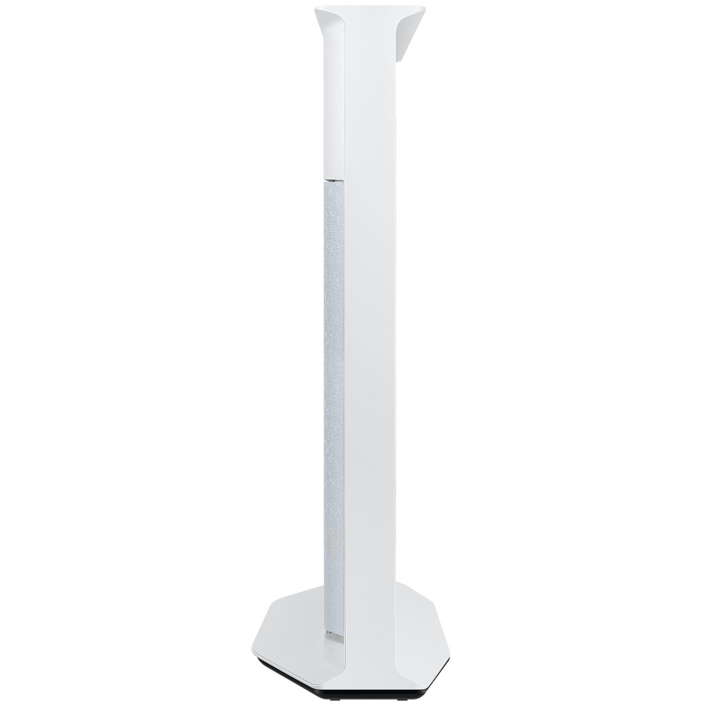 طراحی تلویزیون 50 اینچ سامسونگ LS01B بسیار شیک و خاص می باشد. رنگ بدنه این تلویزیون سفید (Cloud White) است، زیر تلویزیون به رنگ مشکی و کاور پشت تلویزیون نیز سفید است. تلویزیون فوق در سال 2020 در رقابت های iF DESIGN AWARD برنده بهترین تلویزیون از نظر طراحی شد. زبان طراحی این تلویزیون Serif (سریف) است. زمانی که طراحی یک تلویزیون به صورتی است که از زاویه خاص شبیه حروف و یا عددی خاص است می توان گفت که دارای طراحی سریف است. طراحان این تلویزیون یعنی رونان و اروان بورولک با دیدگاهی متفاوت این تلویزیون را به گونه ای طراحی کرده اند که شبیه حرف بزرگ I می باشد. با نگاه کلی به این محصول ممکن است کمی به گذشته سفر کنیم، آن هنگام که تلویزیون ها بر روی پایه های بلند خود قرار می گرفتند و برخی افراد گلدان و مجسمه ای روی آن قرار می دادند و اصطلاحا طراحی تلویزیون ها مبله بود. ضخامت حاشیه ها و بدنه این تلویزیون نیز نسبت به تلویزیون های جدید بازار، بیشتر و کاملا چشمگیر است. ضخامت کلی بدنه این محصول 20.65 سانتیمتر می باشد. شما می توانید دکوری کوچکی روی این تلویزیون قرار دهید و از آن حتی به عنوان شلف نیز استفاده کنید. به عبارت دیگر می توان گفت که طراحی این تلویزیون آنتیک است زیرا در عین جدید بودن به سبک تلویزیون های قدیمی طراحی شده است. تلفیق مدرنیته و سنت!! البته سامسونگ طراحی قاب صفحه نمایش این تلویزیون را VNB (Very Narrow Bezel) معرفی کرده است که به معنای بسیار باریک می باشد که کاملا عجیب به نظر می رسد. همانطور که پیشتر اشاره شد ضخامت این تلویزیون زیاد است و این برای شما این امکان را فراهم می سازد تا بدون نصب پایه آن را روی میز قرار دهید. زیر تلویزیون از جنس فلز بوده و در صورت قرار دادن تلویزیون روی میز به خوبی از پس وزن تلویزیون بر می آید. همچنین در صورت نصب 4 عدد پایه فلزی، بلند و مقاومی که درون جعبه محصول وجود دارد آن را در هر جایی که دلخواه شماست قرار دهید. هر کدام از پایه ها درون حفره مخصوص به خود در زیر تلویزیون به صورت مجزا نصب خواهد شد. همچنین سامسونگ برای نصب آسان تر پایه ها، لوله استوانه ای کوچک در جعبه محصول قرار داده است که در صورت تمایل می توانید از آن استفاده نمایید. حداکثر ارتفاع تلویزیون در صورت نصب روی پایه ها 114.32 سانتیمتر است. با توجه به ضخامت و سبک طراحی که در این محصول شاهد آن هستیم، تلویزیون فوق مناسب نصب روی دیوار نیست و سامسونگ نیز محلی برای نصب براکت VESA در پشت بدنه تلویزیون در نظر نگرفته است. سامسونگ برای دسترسی به محل پورت ها در پشت تلویزیون کاوری سفید رنگ با طرح هاشوری طراحی نموده است؛ یعنی برای اتصال کابل ها ابتدا لازم است کاور را بردارید. این کاور بدون نیاز به پیچ به تلویزیون چفت می شود. زیر محل پورت ها نیز شیار هایی برای مدیریت کابل ها تعبیه شده است که این قسمت نیز زیر کاور مخفی می ماند و هیچگونه بی نظمی در پشت تلویزیون به وجود نخواهد آمد. تمامی کابل ها از داخل روزنه ای که زیر کاور قرار دارد در امتداد پایه های تلویزیون هدایت می شوند. سامسونگ دریچه هایی برای نصب روی پایه های تلویزیون در نظر گرفته است تا بتوانید کابل ها را به بهترین نحو در راستای پایه ها مدیریت نمایید.
