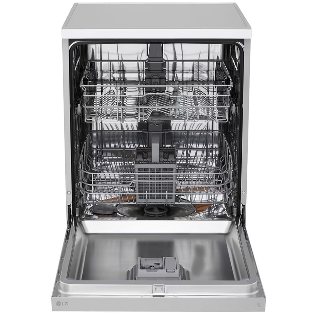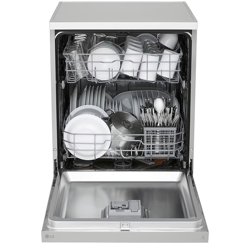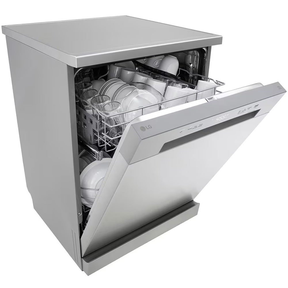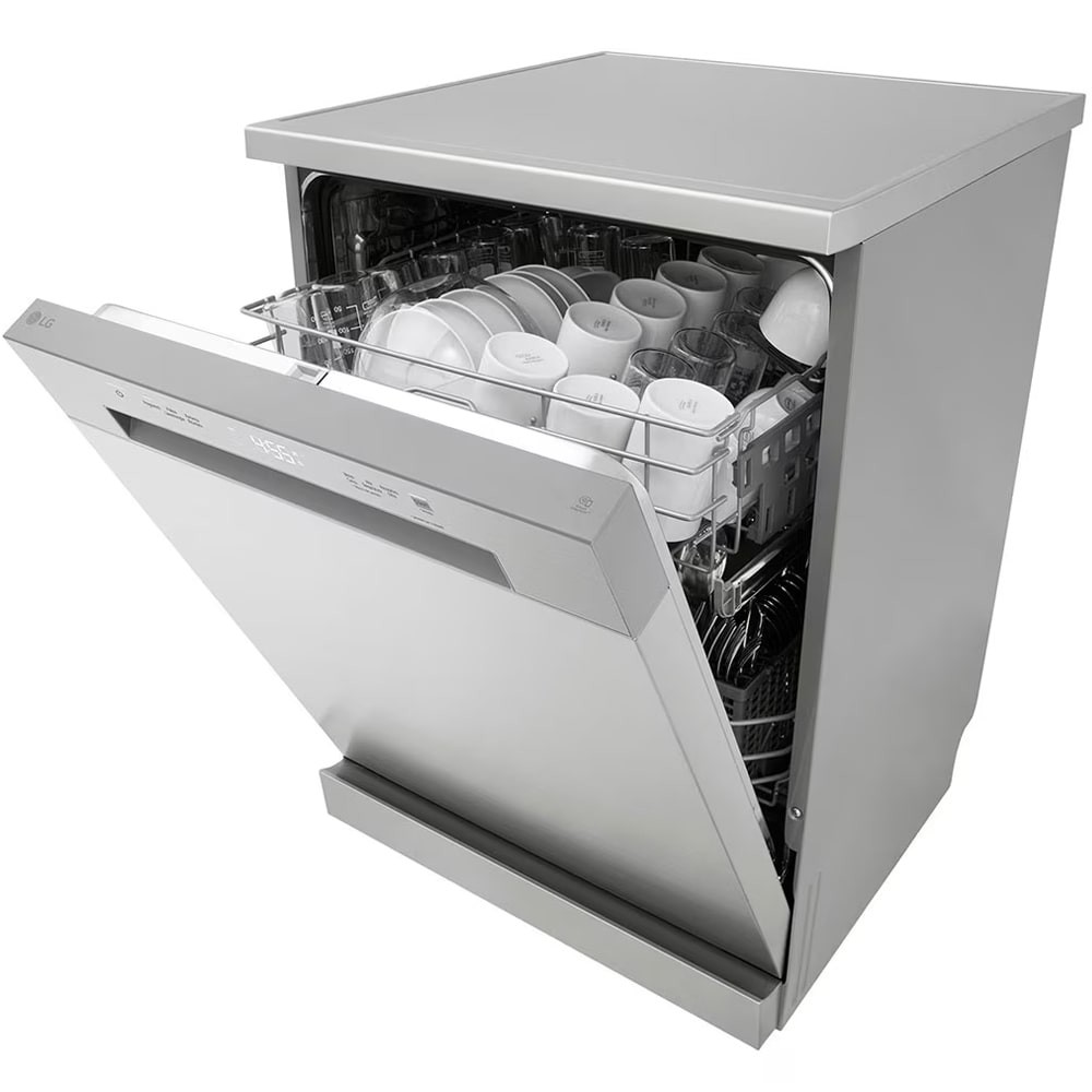 - دارای موتور Inverter Direct Drive با طول عمر بالا و صرفه جویی در مصرف انرژی و زمان هنگام شستشو سیستم Aqua-Stop برای جلوگیری از نشت آب دارای سنسور تشخیص میزان کثیفی آب و ظروف (Soil Sensor (Turbidity Sensor)) جنس بدنه فولاد ضد زنگ (Stainless Steel) با قابلیت Anti-Fingerprint برای جلوگیری از ماندگاری اثر انگشت روی بدنه دارای نشانگر پر کردن مجدد نمک (Salt Refill Icon) قابلیت Extra Dry برای خشک کردن بهتر ظروف سیستم Smart Diagnosis برای عیب یابی هوشمند مجهز به قابلیت Delay Start برای شروع شستشو با تاخیر دارای قیف (Funnel) برای پر کردن مخزن نمک ماشین ظرفشویی سیستم Water Softener برای تنظیم میزان سختی آب سیستم تنظیم شدت جریان آب بین سبدها و طبقات مختلف (Vario Washing System) سیستم EasyRack Plus برای تنظیم طبقات یا سبد های ماشین ظرفشویی قابلیت High temp برای شستشو با آب داغ قابلیت شروع شستشو با تاخیر از 1 تا 12 ساعت قابلیت Control Lock برای قفل کردن پنل کنترلی ماشین ظرفشویی دارای چرخه Intensive برای شستشوی ظروف بسیار کثیف قابلیت تنظیم ارتفاع طبقات یا سبد ها در 3 سطح مختلف دارای 3 بازوی آبپاش (Top, Upper, Lower Spray Arms) تضمین عملکرد و کارایی موتور Inverter Direct Drive تا 10 سال توسط ال جی تکنولوژی QuadWash برای شستشوی بهتر ظروف با استفاده از بازوی آبپاش 4 پره قابلیت Half Load برای شستشوی ظروف با نصف ظرفیت دارای سبد کوچک Vario Basket یا Cutlery Basket مخصوص کارد، قاشق و چنگال سیستم SenseClean میزان کثیفی ظروف را تشخیص می دهد و شستشو را به صورت خودکار تنظیم میکند برنامه شستشوی Machine Clean برای شستشو و تمیز کردن خودکار داخل ماشین ظرفشویی دارای 2 نوار نویزگیر (Noise Strip) با قابلیت نصب برای کاهش انتقال لرزش و صدای ماشین ظرفشویی استفاده از مواد ضد باکتری در ساخت برخی از اجزا ماشین ظرفشویی (Anti-Bacterial Treatment)