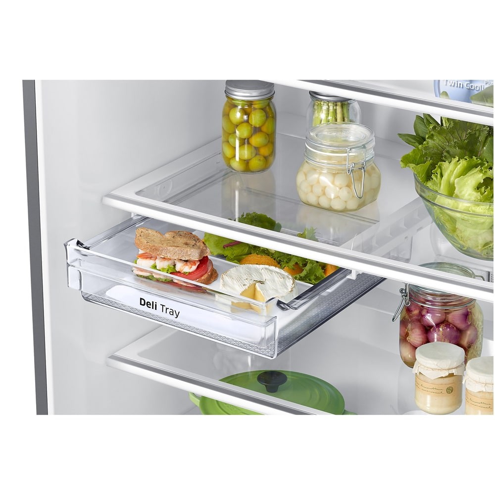 - ویژگی Smart Conversion جهت تغییر کاربری یخچال و فریزر در 5 حالت مختلف تکنولوژی Anti-Bacterial Protector برای از بین بردن باکتری ها و بوی بد مواد غذایی و تصفیه هوای داخلی یخچال به کمک فیلتر کربن فعال قفسه Big Guards مخصوص نگهداری بطری های بزرگ و بلند در درب یخچال کشوی Big Box مخصوص نگهداری میوه و سبزیجات استفاده از گاز R600a برای ایجاد سرمایش و سازگاری با محیط زیست قابلیت Power Cool برای سرمایش سریع در یخچال سیستم تهویه هوای Multi Flow برای توزیع هوای سرد یکنواخت در کل یخچال و فریزر از طریق دریچه های هوای متعدد سیستم خنک کننده یکپارچه (Mono Cooling) برای چرخش هوا در یخچال و فریزر طبقات یخچال و فریزر از جنس شیشه حرارت دیده سیستم بدون برفک (No Frost) جنس بدنه استیل (Easy Clean Steel) برای نظافت آسان و جلوگیری از ماندگاری اثر انگشت تضمین عملکرد و کارایی موتور با تکنولوژی Digital Inverter تا 10 سال توسط سامسونگ دارای موتور دیجیتال اینورتر (Digital Inverter) با تخمین طول عمر بالا (حدود 21 سال)، صدای کمتر و صرفه جویی در مصرف انرژی سیستم خنک کننده دوگانه (Twin Cooling Plus) جهت سرمایش مجزای یخچال و فریزر و حفظ تازگی مواد غذایی قابلیت Dispenser Lock برای قفل کردن قسمت آب ریز طبقات فریزر از جنس پلاستیک قابلیت Power Freeze برای انجماد سریع در فریزر