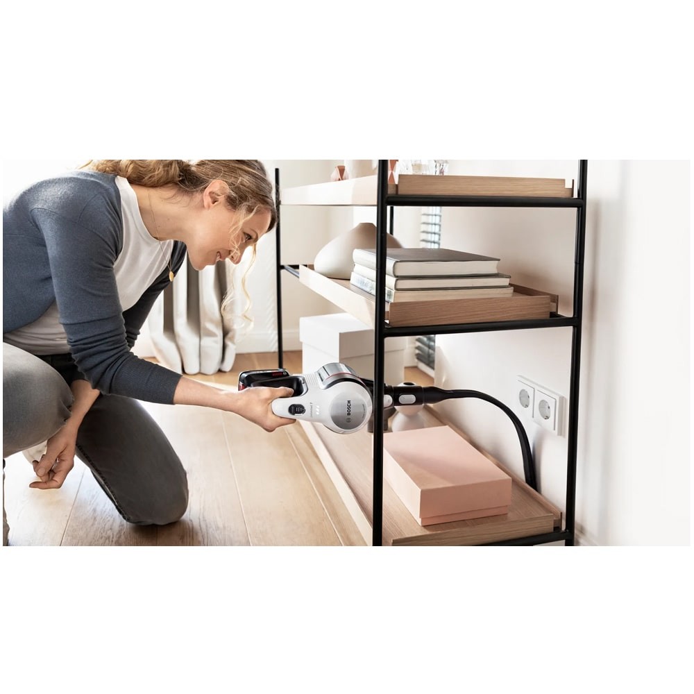 دیگر نگران جارو کشیدن تصادفی اجسام کوچک نباشید! نازل کشو و صفحه کلید راه مناسبی برای جاروبرقی فراهم میکند و از جاروبرقی سکهها یا گیرههای کاغذ جلوگیری میکند. نازل با استفاده از نیهای کوچک انعطافپذیر، جاروبرقی میکند که از مکیده شدن اجسام کوچک جلوگیری خواهد کرد. برای مثال، میتوانید بدون زحمت گرد و غبار و خردههای آن را از کشوهای آشپزخانه پاک کنید. به لطف چراغ LED که بر روی برس جارو شارژی بوش BCS711 قرار دارد، تمیز کردن کشوها یا ماشین کار راحت و خوشایندی میباشد. ترکیب نازل مبلمان و اثاثه یا لوازم داخلی(برس 2 در 1 )، جاروبرقی سطوح مختلف را آسانتر میکند. موهای ظریف برس مبلمان مخصوصاً برای کشوها، میزها و سایر مبلمان با سطح نرم مناسب است. بسته به نیاز خود میتوانید با یک کلیک ساده نازل اثاثه یا لوازم داخلی برس را در یک لحظه به مبلمان تبدیل کنید. این باعث صرفه جویی در وقت شما میشود و به شما امکان میدهد بدون وقفه طولانی به تمیز کردن ادامه دهید.