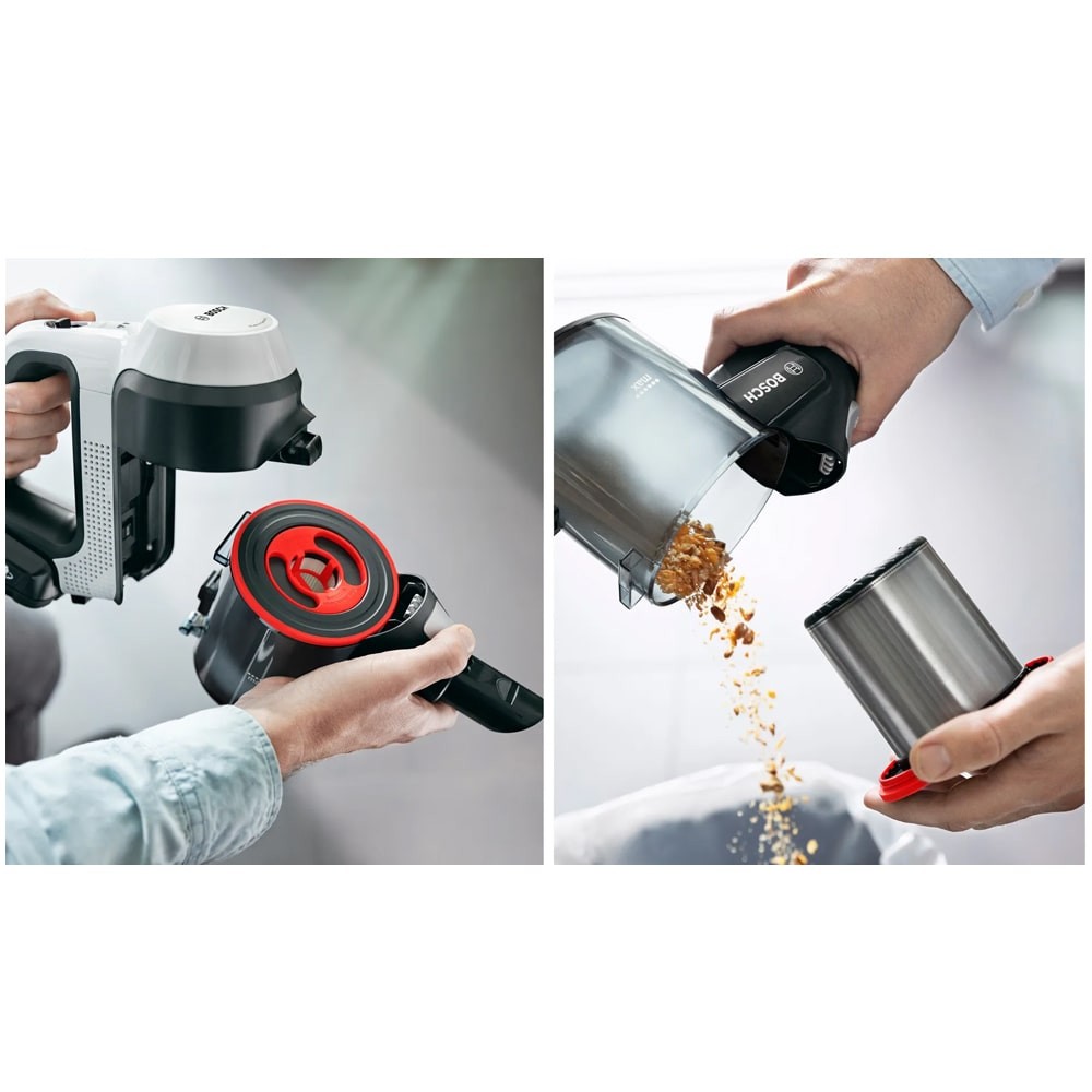 جارو شارژی بوش BCS711XXL محصولی انعطافپذیر که همراه با آن میتوانید هر مکانی را بدون دردسر و به راحتی جارو کنید و محیطی تمیز و پاکیزه را در اختیار داشته باشید. این جاروشارژی سری 7 بوش برای استفاده خانگی و معمولی و جارو کردن داخل خودرو کاملا مناسب میباشد. ممکن است این محصول در بازار به عنوان جارو شارژی بوش 711 یا BCS711 معرفی شود البته مدل دقیق و کامل آن نیست همین نیز باعث خواهد شد تا با مدلهای دیگر اشتباه گرفته شود. مدل درست و دقیق این دستگاه، جاروشارژی ایستاده بوش BCS711XXL میباشد پس در هنگام خرید دقت لازم را به عمل آورید تا محصول درست را خریداری نمایید. جاروبرقی 18 ولت بوش 711 تنها 3.8 کیلوگرم وزن دارد بنابراین ایدهآل برای جاروبرقی میز، مبلمان یا فضاهای بین میباشد. علاوه بر این، جاروبرقی دستی Unlimited 7 دارای طراحی ارگونومیک برای تمیز کردن راحت است. از آنجایی که مجبور نیستید همیشه دکمه پاور را نگه دارید، انگشتان شما آزاد شده و دامنه حرکتی بیشتری دارند. این به شما این امکان را میدهد که به راحتی و با یک دست جارو برقی بکشید.