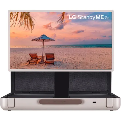 تلویزیون ال جی LX5 یا StanbyME Go سایز 27 اینچ یکی از تلویزیون های 2022 ال جی است. در واقع این محصول از جمله تلویزیون های ال جی سری StanbyME به حساب می آید و با عنوان تجاری تلویزیون ال جی StanbyME Go در بازار شناخته می شود اما مدل درست آن همان LX5 است. محصول پیش روی شما با مدل کامل تلویزیون ال جی 27LX5QKNA مونتاژ کره وارد کشور ما شده است اما متاسفانه بعضی فروشگاه ها به اشتباه آن را با عنوان تلویزیون ال جی LX5Q یا 27LX5Q نیز معرفی می کنند. برخی افراد گمان می کنند ال جی از عبارت StandbyME برای معرفی این محصول الهام گرفته است و در بازار آن را به عنوان تلویزیون ال جی StandbyME Go یا Standby ME Go می شناسند. با اینکه این موضوع تا حدودی صحیح است و عبارت Stand by Me به قابل حمل بودن تلویزیون مذکور اشاره دارد اما باید گفت که الجی محصول فوق را با عنوان تلویزیون StanbyME Go معرفی کرده و از حرف D در آن استفاده نکرده است تا نام آن نیز مانند خود محصول، خاص باشد. همانطور که مشخص است، این تلویزیون طراحی منحصر به فردی دارد و به شکل یک چمدان طراحی شده است تا به راحتی قابل حمل می باشد. در واقع تلویزیون ال جی استند بای می گو دارای باتری داخلی است و جزو تلویزیون های شارژی ال جی به حساب می آید. به گفته ال جی، باتری این تلویزیون توانایی نگهداشتن شارژ تا 3 ساعت را دارد اما طبیعتا این موضوع کاملا بستگی به نوع استفاده شما از تلویزیون و تنظیماتی دارد که روی آن انجام می دهید. تلویزیون LX5 در حال حاضر بهترین تلویزیون پرتابل ال جی با کیفیت تصویر فول اچ دی (Full HD) است. تلویزیون مذکور دارای باتری داخلی می باشد و می تواند برای محیط های سر بسته (Indoor) و حتی Outdoor یا خارج از منزل نیز مورد استفاده قرار گیرد اما توجه فرمایی که ال جی تلویزیون فوق را ضد آب طراحی نکرده و باید در هنگام استفاده از آن، به این موضوع دقت فرمایید. تلویزیون پیش روی شما فاقد گیرنده دیجیتال می باشد و ال جی نیز آن را در دسته مانیتورها و صفحه نمایش های لایف استایل (LifeStyle Screen) معرفی کرده است. همین موضوع باعث شده تا این محصول را با عنوان تلویزیون و مانیتور ال جی LX5 نیز بشناسند. به این ترتیب شما نمی توانید شبکه های تلویزیونی داخلی یا خارجی را مستقیما توسط این محصول دریافت و مشاهده کنید. البته می توانید گیرنده دیجیتال را به صورت جداگانه خریداری کرده و آن را از طریق پورت HDMI به تلویزیون فوق متصل نمایید و به تماشای شبکه های تلویزیونی مورد علاقه خود بپردازید. به طور کلی این تلویزیون و مانیتور ال جی که در حال معرفی آن هستیم، برای استفاده روزمره، خانگی و حتی استفاده در مسافرت و خارج از منزل نیز مناسب است.