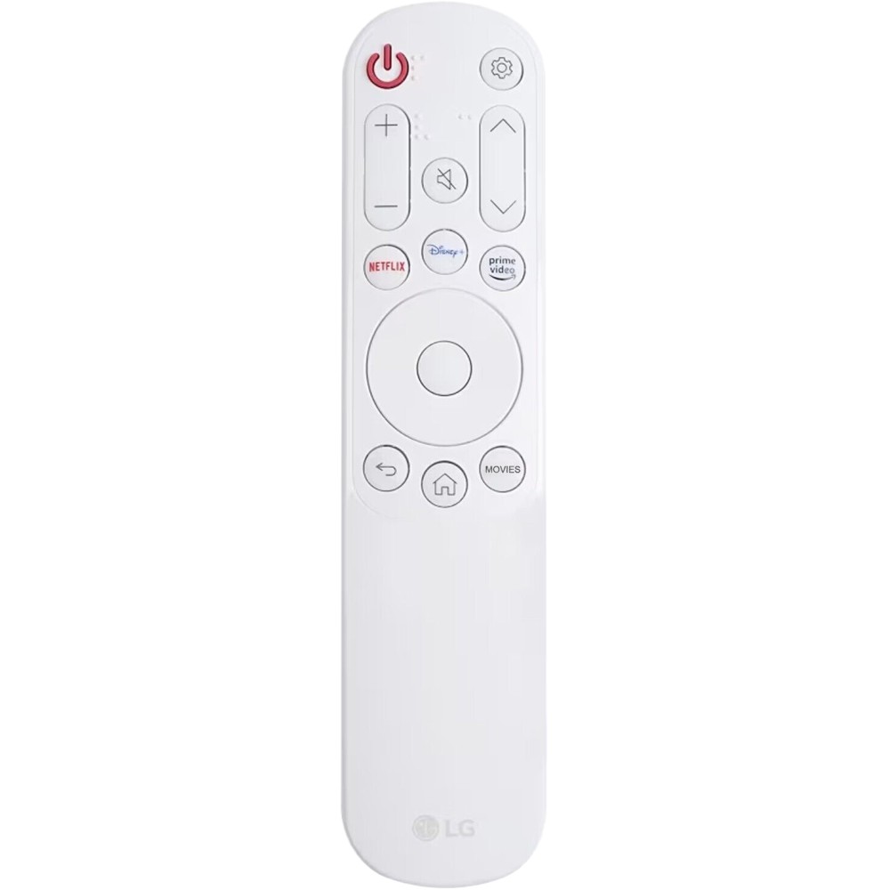 تلویزیون پیش روی شما به وای فای (Wi-Fi) نسخه 5 مجهز است اما خبری از پورت شبکه (LAN) در آن نیست. به این ترتیب می توانید این تلویزیون و مانیتور پرتابل ال جی را به صورت بی سیم به اینترنت متصل کنید. در صورتی که محصول فوق را به اینترنت متصل کنید، می توانید از قابلیت های بی شمار تلویزیون مذکور (مانند وب گردی، تماشای شبکه های تلویزیونی آنلاین و...) بهره ببرید. تلویزیون فوق به هوش مصنوعی ThinQ AI مجهز است و از IoT یا همان اینترنت اشیا نیز پشتیبانی می کند. به این ترتیب شما می توانید از طریق داشبورد هوشمند (Home Dashboard) که برای این محصول در نظر گرفته شده، خانه هوشمند خود را کنترل و مدیریت نمایید. این تلویزیون از فروشگاه نرم افزار ال جی پشتیبانی می کند و در صورتی که آن را به اینترنت متصل کنید، می توانید برنامه های مد نظر خود را مستقیما توسط تلویزیون از فروشگاه ال جی دانلود کرده و روی تلویزیون نصب نمایید. لازم به ذکر است که تلویزیون فوق دارای 8 گیگابایت حافظه داخلی است که می توانید از آن برای نصب نرم افزار استفاده کنید اما متاسفانه تمام این حافظه در دسترس کاربر قرار ندارد و حجم زیادی از آن توسط سیستم عامل و برنامه های پیش فرض، اشغال شده و قابل استفاده کاربر نیست. متاسفانه تمام برنامه هایی که برای تلویزیون فوق عرضه می شوند از قابلیت لمسی پشتیبانی نمی کنند و ممکن است برای کار با آن ها نیاز به ریموت کنترل داشته باشید. خوشبختانه به همراه این محصول ریموت کنترل معمولی مدل AKB76039305 ارائه می شود تا زمانی که از تلویزیون فاصله دارید نیز بتوانید به راحتی با آن کار کنید. این ریموت کنترل به رنگ سفید است و طراحی آن با ریموت کنترل های رایجی که ال جی به همراه محصولات خود عرضه می کند متفاوت می باشد. لازم به ذکر است که ریموت کنترل مذکور فاقد بلوتوث است و تنها اینفرارد (IR) دارد. همچنین ریموت کنترلی که به همراه این تلویزیون عرضه می شود فاقد میکروفون و NFC است. البته تلویزیون فوق از ریموت کنترل هوشمند و جادویی ال جی نیز پشتیبانی می کند اما باید آن را به صورت جداگانه خریداری نمایید. محصول پیش روی شما دارای قابلیت Virtual Remote یا ریموت کنترل مجازی است که به شما اجازه می دهد دکمه های کنترلی مجازی روی صفحه داشته باشید تا برای کنترل تلویزیون، به ریموت کنترل نیازی نداشته باشید و به صورت لمسی تمام کارها را انجام دهید. این قابلیت در 2 حالت Multi-Touch Mode و Edge Gesture Mode قابل استفاده است. در صورتی که در تنظیمات تلویزیون حالت Multi-Touch Mode را انتخاب کنید، برای ظاهر کردن ریموت کنترل مجازی نیاز است صفحه نمایش را با 3 انگشت (یا بیشتر) لمس کنید. اگر حالت Edge Gesture Mode را انتخاب کرده باشید، برای ظاهر کردن ریموت کنترل مجازی باید صفحه را تنها با 1 انگشت از قسمت راست صفحه نمایش به وسط بکشید. همچنین در این حالت اگر صفحه را از قسمت چپ به وسط بکشید، به منوی قبلی بر می گردید و اگر از پایین به وسط بکشید، به منوی اصلی باز خواهید گشت. علاوه بر این ها اگر قسمت بالای صفحه نمایش را لمس کرده و به پایین بکشید، بخش مربوط به تنظیمات روشنایی صفحه و صدا ظاهر خواهد شد. البته روی بدنه چمدان نیز دکمه های خاموش و روشن کردن و همچنین دکمه های تنظیم صدا وجود دارد که از نوع فشاری می باشند. همانطور که گفته شد، ریموت کنترل این تلویزیون فاقد میکروفون داخلی است اما خود تلویزیون دارای میکروفون داخلی است و قابلیت Hands-Free Voice Assistant دارد. به این ترتیب شما می توانید با صحبت کردن و بدون نیاز به ریموت کنترل و حتی لمس کردن صفحه نمایش نیز آن را کنترل نمایید. البته این قابلیت به صورت پیش فرض غیرفعال است و باید ابتدا آن را فعال کنید. همچنین برای استفاده از قابلیت جستجوی صوتی و دستورات صوتی، نیاز است که تلویزیون به اینترنت متصل باشد. علاوه بر همه این ها، تلویزیون مذکور از نرم افزار LG ThinQ نیز پشتیبانی می کند. این یعنی شما می توانید نرم افزار مذکور را روی گوشی هوشمند اندرویدی یا iOS خود نصب کرده و تلویزیون را از طریق آن کنترل کنید و یا حتی م