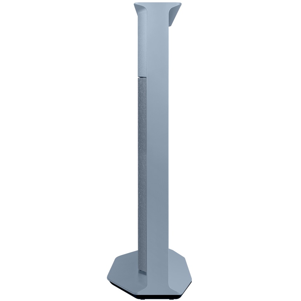 تلویزیون 50 اینچ سامسونگ LS01B رنگ آبی (Cotton Blue) از طراحی بسیار خاصی برخوردار است و دارای زبان طراحی سریف می باشد. محصولاتی که دارای طراحی سریف می باشند از زاویه خاص و یا در نگاه کلی مشابه حرف یا عددی به خصوص می باشند. تلویزیونی که در حال بررسی طراحی آن هستیم در سال 2020 در رقابت های iF DESIGN AWARD برنده بهترین تلویزیون از نظر سبک طراحی شد. دو طراح معروف این تلویزیون به نام های رونان و اروان بورولک با ریز بینی و دقت به جزئیات و دیدگاه هنری این محصول را طوری طراحی نموده اند که از پهلو شبیه حرف بزرگ I است، همانطور که در عکس های گالری مشخص است قسمت بالایی و پایینی این تلویزیون از بدنه آن پهن تر می باشد و شما می توانید دکوری کوچکی روی تلویزیون قرار داده و یا حتی بدون نیاز به پایه رومیزی آن را روی میز قرار دهید. قسمت پایین (کفی) تلویزیون از جنس فلز و به رنگ مشکی بوده که به راحتی توانایی نگهداری تلویزیون را دارد. ضخامت این محصول بدون نصب پایه بلند 20.65 سانتیمتر است. سامسونگ طراحی قاب این تلویزیون را VNB (Very Narrow Bezel) معرفی نموده است اما این ادعا کمی عجیب به نظر می رسد زیرا قاب 4 طرف صفحه نمایش این محصول همانطور که از عکس های گالری محصول پیداست ضخامت چشمگیری دارد. در جعبه این محصول 4 پایه بلند فلزی به رنگ مشکی وجود دارد که هر کدام به صورت جداگانه به تلویزیون نصب می شود. این پایه ها برای نصب شدن به تلویزیون نیازی به پیچ نداشته و تنها نیاز است پایه را داخل حفره ای که زیر تلویزیون وجود دارد بچرخانید و از محکم شدن آن مطمئن شوید. لوله استوانه ای کوچک نیز در جعبه تلویزیون وجود دارد که به سهولت نصب پایه ها به شما کمک می کند. ارتفاع تلویزیون در صورت نصب پایه های فلزی 114.32 سانتیمتر است. اگر به بدنه پشت تلویزیون نگاهی بیندازیم محلی برای اتصال کابل های تلویزیون نخواهیم دید، در واقع محل اتصال کابل ها به تلویزیون با کاوری بزرگ و آبی رنگ پوشانده شده است. در زیر محل اتصال پورت ها نیز شیار هایی برای مدیریت بهتر کابل ها قرار گرفته است که این قسمت نیز زیر کاور مخفی خواهد ماند. تمامی کابل ها در نهایت از داخل روزنه ای در زیر شیار ها به سمت پایه ها هدایت می شوند و روی پایه نیز دریچه ای قرار می گیرد تا بهتر بتوانید کابل های متصل به تلویزیون را مدیریت نمایید. در مجموع سبک طراحی این محصول وینتیج یا آنتیک است، طراحی وینتیج به آن معناست که محصولی با الهام از گذشته اما به شکلی نوین طراحی و تولید شود. با نگاه کلی به این تلویزیون کمی به گذشته ها سفر می کنید، آن زمان که شاهد تماشای برنامه ها در تلویزیون های مبله بودیم، تلویزیون هایی که قابی با ضخامت زیاد داشتند و روی 4 پایه بلند خود قرار می گرفتند و معمولا روی آن گلدانی قرار می دادیم. همانطور که در ابتدا خدمت شما عرض کردیم طراحی این تلویزیون به گونه ای است که شما نمی توانید آن را روی دیوار نصب نمایید و محلی برای نصب براکت VESA در پشت بدنه تلویزیون وجود ندارد. دکمه Power نیز در پشت تلویزیون وجود دارد.