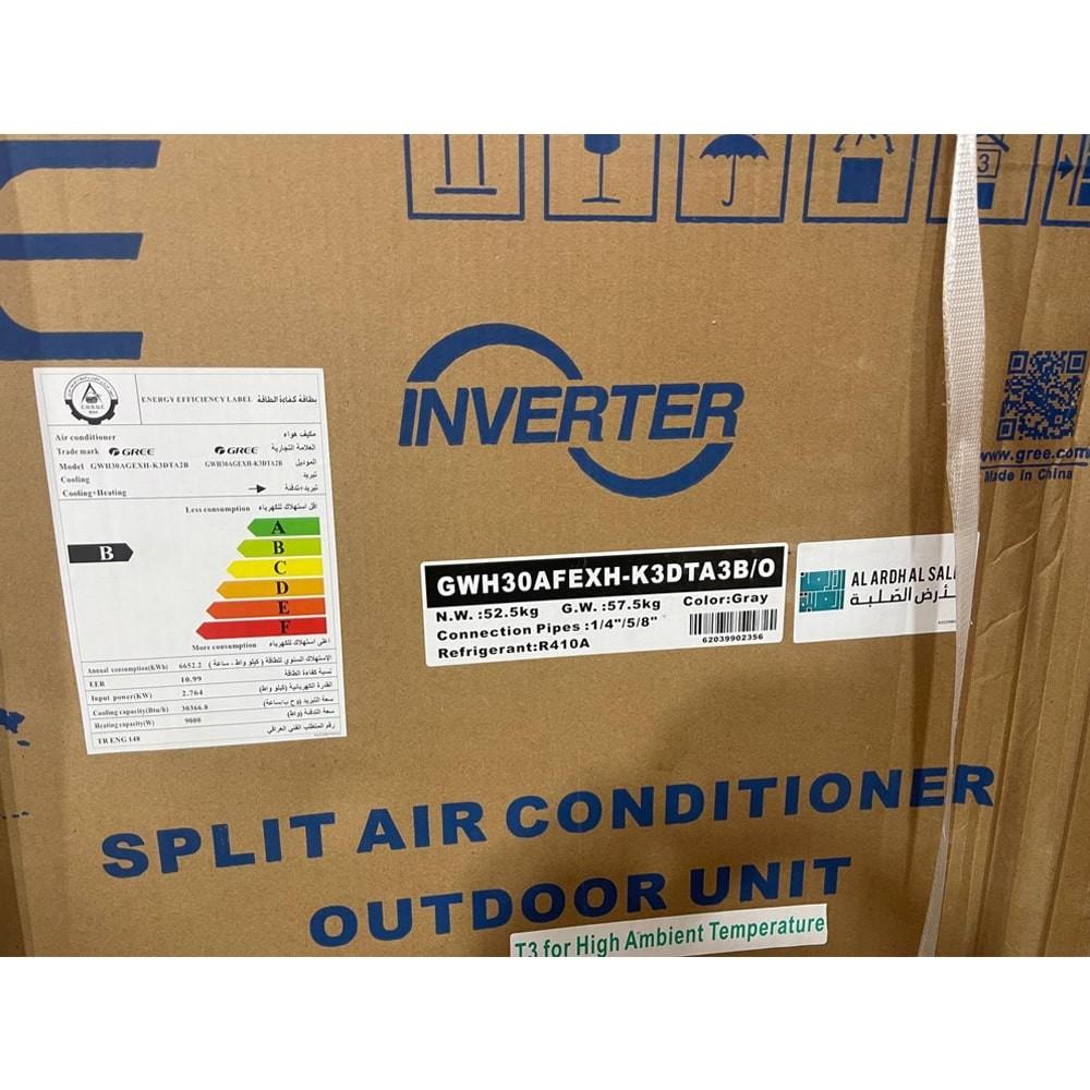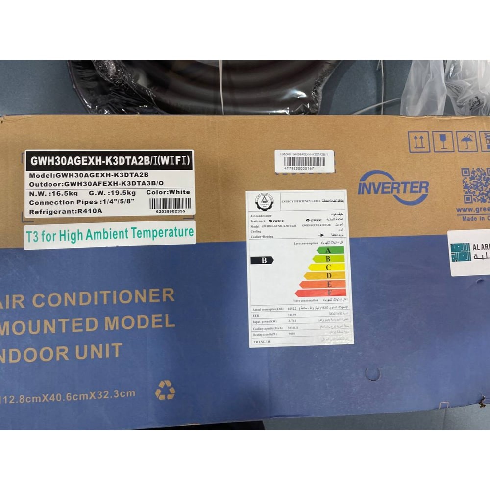 کولر گازی گری GWH30AGEXH در لیست جدیدترین سیستم های تهویه ی مطبوع برند گری در سال 2023 می باشد که به عنوان سری GWH و با کارایی عالی و قدرت مطلوب وارد بازار های جهانی شده است. این محصول در حال حاضر با مونتاژ کشور چین در بازار کشور ما موجود می باشد. باید گفت که این کولر گازی دارای کلاس آب و هوایی T3 می باشد و در جهت استفاده در مناطق آب و هوای گرم و حاره ای بسیار مناسب است و می تواند کارایی فوق العاده ای را در اختیار شما قرار دهد. این کولر گازی جزو محصولات دو منظوره ی گری است یعنی اینکه دارای دو عملکرد گرمایشی و سرمایشی است بدین ترتیب می توانید در هر چهار فصل سال از آن استفاده کنید. ضمن اینکه دارای ظرفیت 30000 بی تی یو است که معادل 2.5 تن می باشد و با توجه به این حجم از ظرفیت می توان گفت که برای محیطهای بزرگ کاملا ایدهآل است و میتواند محیطی خنک یا گرم را برای شما فراهم کند. شایان ذکر است که اگر کولر گازی متناسب با محیط خود را بردارید هم در مصرف انرژی صرفه جویی خواهید کرد و هم از هزینه های مصرفی برق جلوگیری خواهد شد. محصول فوق از دو بخش یونیت داخلی با مدل GWH30AGEXH-K3DTA2B/I و یونیت خارجی با مدل GWH30AFEXH-K3DTA3B/O تشکیل شده است که هر کدام طراحی شیک و جمع و جوری را به خود اختصاص داده اند. در واقع یونیت داخلی همان پنل داخلی دستگاه می باشد و بر روی دیوار در محیط داخل خانه نصب می شود و یونیت خارجی هم به کمپرسور و یا موتور دستگاه مربوط می شود.