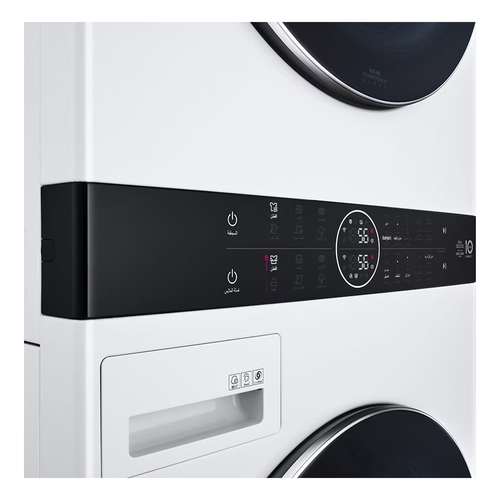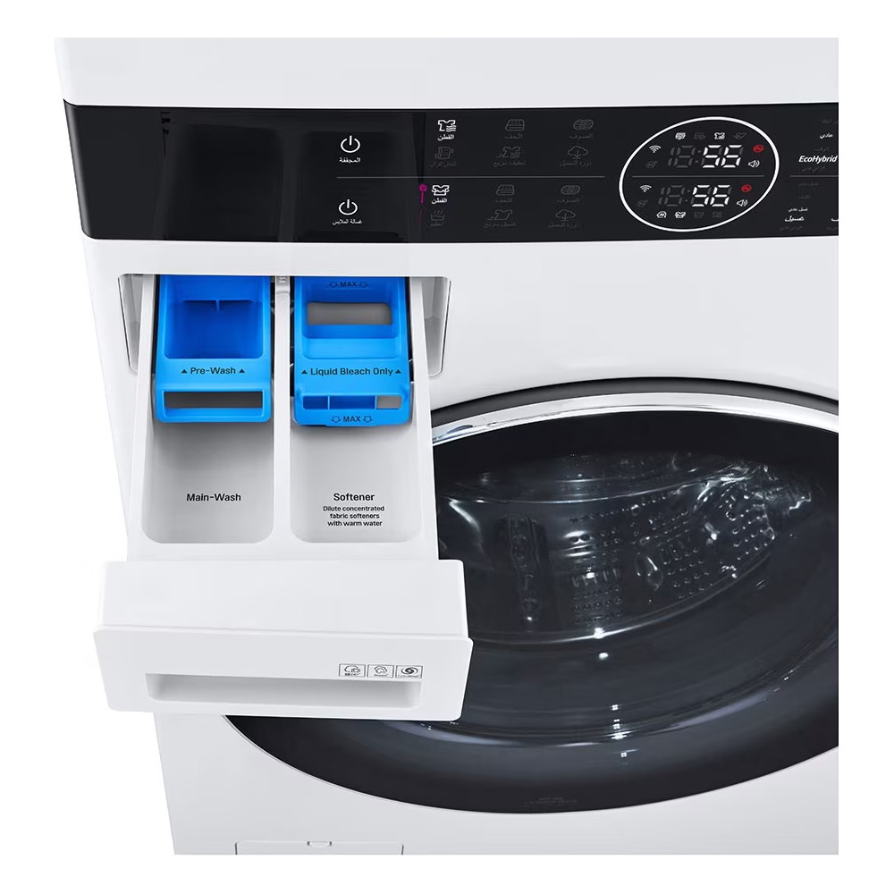 - قابلیت Delay End برای شروع شستشو با تاخیر و تنظیم زمان پایان شستشو قابلیت EcoHybrid برای خشک کردن البسه با جریان هوا و بدون مصرف آب قابلیت Down Jacket Refresh برای برگرداندن خاصیت پفی لباس های زمستانی به حالت عادی بدون انجام شستشو قابلیت Add Item برای اضافه کردن لباس حتی بعد از شروع شستشو قابلیت TurboWash برای کاهش زمان شستشوی لباس ها در برخی برنامه های شستشو و همچنین صرفه جویی در مصرف آب و انرژی قابلیت Thawing Mode برای یخ زدایی دیگ خشک کن و خروجی آن مخصوص مناطق سردسیر قابلیت Tub Clean مخصوص شستشوی دیگ ماشین لباسشویی قابلیت Remote Start برای شروع برنامه شستشو از راه دور به کمک موبایل با برنامه LG ThinQ قابلیت Dry Level برای تنظیم سطح خشک کردن انواع البسه با توجه به جنس و ضخامت آن ها قابلیت +Rinse برای اضافه کردن دور آبکشی اضافه به برنامه شستشو قابلیت Temp برای تنظیم دمای آب برنامه شستشو به صورت دستی قابلیت Condenser Clean برای تمیز کردن کندانسور خشک کن قابلیت Child Lock برای قفل کردن پنل کنترلی و برنامه های ماشین لباسشویی قابلیت Normal برای شستشوی لباس ها با لکه های سبک و معمولی قابلیت Prepare to Dry برای گرم کردن و آماده سازی دیگ خشک کن برای خشک کردن لباس ها قابلیت Intensive برای شستشوی لباس های معمولی و بسیار کثیف قابلیت وای فای (Wi-Fi) برای اتصال به شبکه و اینترنت قابلیت Anti Crease جهت جلوگیری از چین و چروک لباس ها پس از پایان کار برنامه خشک کن قابلیت Prewash) Pre Wash) برای خیساندن لباس ها پیش از شروع برنامه شستشو قابلیت Steam برای بهبود عملکرد در برخی برنامه های شستشو با بخار و مصرف انرژی کمتر قابلیت Drum Care برای از بین بردن بوی نامطبوع دیگ خشک کن قابلیت Spin برای تنظیم سرعت چرخش دیگ به صورت دستی قابلیت Rinse+Spin برای دور آبگیری و آبکشی اضافه البسه قابلیت Time Dry برای تنظیم زمان خشک کردن انواع البسه به صورت دستی