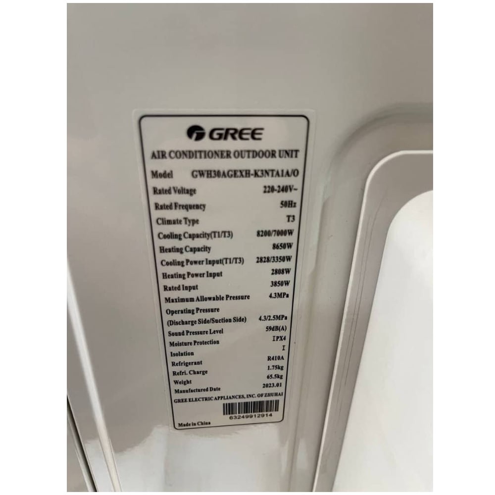 کولر گازی گری GWH30AGEXH جزو سری تهویه مطبوع Pular شرکت GREE میباشد که ترکیبی ایدهآل با بهرهوری انرژی بالا و عملکرد بسیار بیصدا را ارائه میدهد. این اسپلیت دارای دو واحد است، واحد داخلی (دیواری) که هوای مطبوع را به داخل اتاق میدمد و واحد بیرونی که مبرد را فشرده میکند. این دو واحد توسط سیمهای برق و لولههای گاز فشار قوی به هم متصل میشوند. یونیت داخلی این کولرگازی با مدل GWH30AGEXH-K3NTA1A/I و یونیت بیرونی با مدل کامل GWH30AGEXH-K3NTA1A/O وارد بازار شده است. زیبایی کولر گازی چرخه معکوس این است که میتواند شما را در تابستان خنک کند و در زمستان شما را گرم کند. اسپلیت دیواری فوق دارای دو عملکرد سرمایشی و گرمایشی است بنابراین برای استفاده در هر 4 فصل سال مناسب و ایدهآل است و میتواند کارایی فوقالعادهای را از خود به نمایش بگذارد. در واقع استفاده از این نوع کولرگازی یک راه عالی برای صرفهجویی در هزینه و فضای خانه شما هستند. ظرفیت در نظر گرفته شده برای کولرگازی گری GWH30 برابر است با 30 هزار بی تی یو (BTU) که در واقع معادل 2.5 تن (Ton) میباشد. این کولر گازی دارای دو عملکرد سرمایشی و گرمایشی است پس امکان استفاده از آن در هر 4 فصل سال وجود دارد و میتواند عملکرد عالی را در هر دو بخش از خود به نمایش بگذارد. کولر گازی فوق دارای ظرفیت سرمایش (T1): 8200 وات معادل 27979(بی تی یو/ساعت)، ظرفیت سرمایش (T3): 7000 وات معادل 23884 (بی تی یو/ساعت) و ظرفیت گرمایش 8650 وات معادل 29515 بی تی یو بر ساعت (BTU) میباشد.