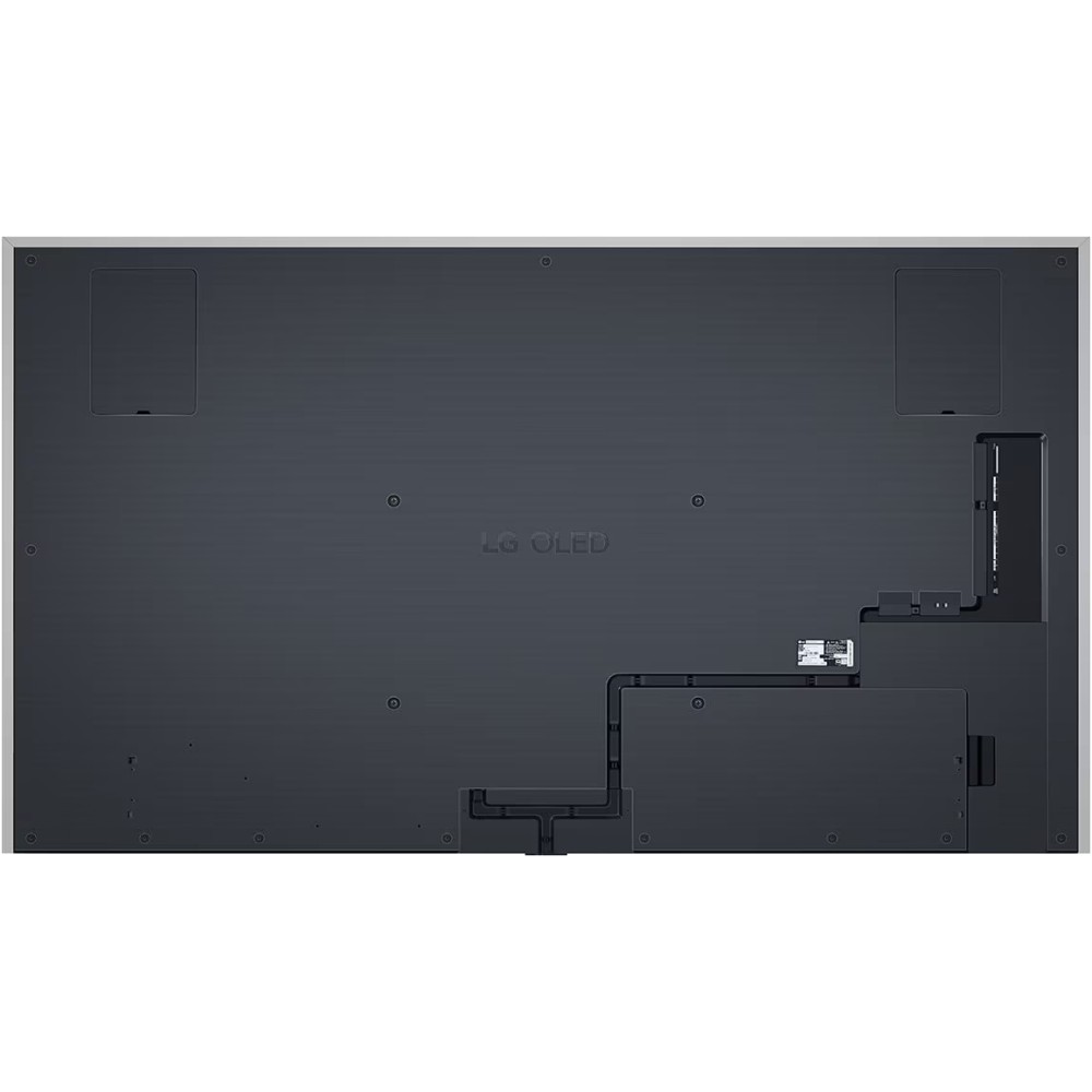 تلویزیون 97 اینچ ال جی G2 به زبان طراحی Gallery مجهز شده و همانطور که از نامش پیداست، برای نصب روی دیوار ساخته شده است؛ بر همین اساس شما در جعبه این محصول تنها یک براکت یا پایه دیواری مشاهده می کنید و خبری از پایه رومیزی نیست. البته در صورت تمایل می توانید پایه رومیزی آن را به صورت جداگانه تهیه کرده و تلویزیون خود را بر روی میز نیز نصب نمایید. صفحه نمایش این محصول از حاشیه های بسیار باریکی برخوردار است که توجه شما را بر روی محتوای در حال پخش متمرکز می سازد. ضخامت محصول پیش روی شما تنها 2.82 سانتی متر می باشد که برای تلویزیونی با این سایز عالی است. الجی در جعبه این محصول یک کابل IR Blaster قرار داده است که می توانید از آن استفاده نمایید. کابل برق این محصول قابلیت جدا شدن ندارد. در قسمت پشت بدنه این محصول 2 عدد گیره Cable Management و چندین نگهدارنده کابل تعبیه شده است تا شما بتوانید کابل های مربوطه را مرتب و مدیریت کنید.