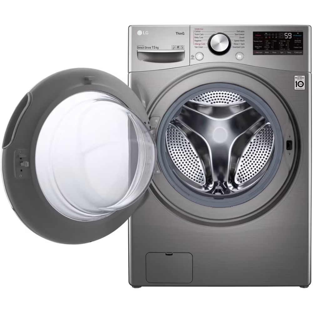 - پشتیبانی از برنامه LG ThinQ برای کنترل و مدیریت ماشین لباسشویی از طریق موبایل (مخصوص موبایل های اندرویدی و iOS) دارای سنسور لرزش یا ویبره (Vibration Sensor) فیلتر خروجی آب (Drain Pump Filter) برای جلوگیری از خروج اشیا ریز از ماشین لباسشویی تکنولوژی 6 Motion DD و چرخش دیگ شستشو در 6 جهت مختلف برای شستشوی بهتر لباس ها قابلیت Wi-Fi برای اتصال به شبکه و اینترنت قابلیت Remote Start برای شروع برنامه شستشو ماشین لباسشویی از راه دور به کمک موبایل با برنامه LG ThinQ سیستم شستشوی هوشمند (Intelligent Washing System) طرح برجسته (Embossing) داخل دیگ شستشو قابلیت Delay End برای شروع شستشو با تاخیر و تنظیم زمان پایان شستشو قابلیت Crease Care جهت کاهش چین خوردگی لباس ها قابلیت Add Item برای اضافه کردن لباس حتی بعد از شروع شستشو دارای پدال باریک از جنس فولاد ضد زنگ Stainless Steel Slim Lifter (STS Slim Lifter) برای جابجایی و شستشوی بهتر البسه در داخل دیگ شستشو فیلتر ورودی آب (Water Inlet Filter) برای جلوگیری از ورود آهک و آشغال های کوچک به ماشین لباسشویی قابلیت Child Lock برای قفل کردن پنل کنترلی دارای موتور دایرکت درایو اینورتر (Inverter Direct Drive) با طول عمر بالا و صرفه جویی در مصرف انرژی و زمان هنگام شستشو درب ماشین لباسشویی از جنس شیشه حرارت دیده (Tempered Glass Door) شفاف قابلیت Temp برای تنظیم دمای آب برنامه شستشو به صورت دستی دارای سیستم تشخیص میزان لباس ها به کمک سنسور (Load Detect) قابلیت Steam برای شستشو با بخار صفحه نمایش بزرگ از نوع LED قابلیت Prewash برای خیس کردن لباس ها پیش از شروع برنامه شستشو تضمین عملکرد و کارایی موتور دایرکت درایو اینورتر (Inverter Direct Drive) تا 10 سال توسط ال جی تکنولوژی AI DD (AI Direct Drive) جهت تشخیص وزن و جنس پارچه و انتخاب الگوی حرکت شستشوی مناسب مطابق آن قابلیت Rinse برای تنظیم تعداد آبکشی به صورت دستی قابلیت Auto Restart برای ادامه خودکار شستشو بعد از وصل شدن برق (در صورتی که هنگام شستشو برق قطع شود) سیستم Smart Diagnosis برای عیب یابی هوشمند قابلیت Spin برای تنظیم سرعت چرخش دیگ به صورت دستی سرعت چرخش 1000 دور در دقیقه (1000 rpm)