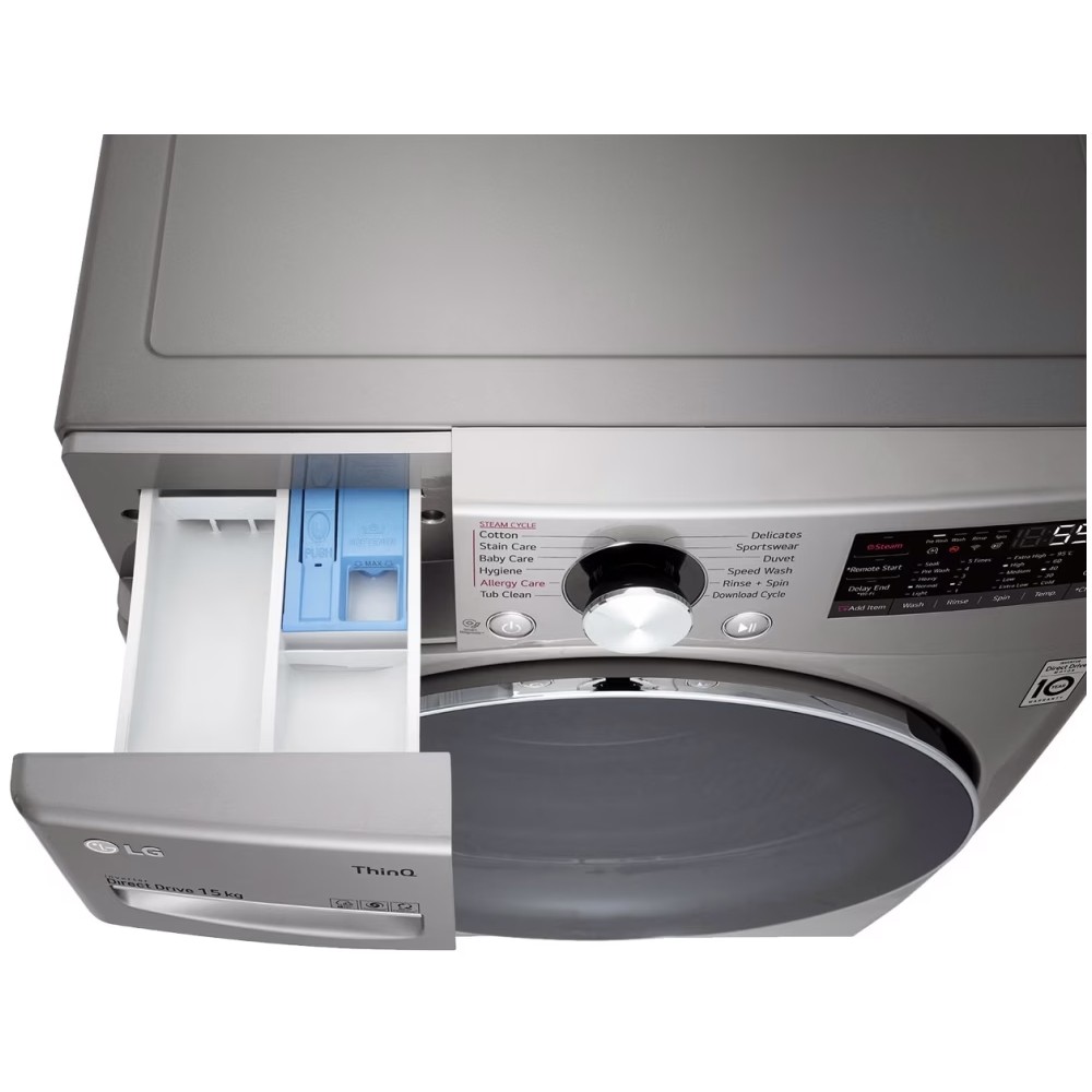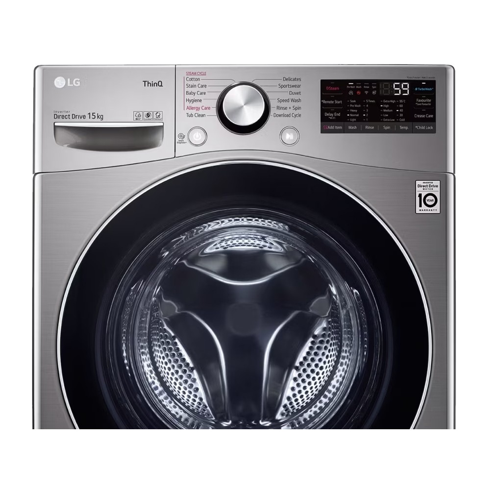 ماشین لباسشویی 15 کیلویی ال جی F0L9DYP2S مجهز به 12 برنامه شستشوی متفاوت است که شامل برنامههای کاربردی برای شستشوی انواع البسه میباشد و شما میتوانید به کمک دکمه پیچی روی دستگاه برنامه دلخواه خود را انتخاب کنید. هر کدام از برنامههای شستشو دمای آب، سرعت چرخش دیگ و تعداد دور آبکشی مخصوص به خود را دارد. برنامه Download Cycle امکان افزودن چرخههای جدید را به شما خواهد داد تا بتوانید طیف بیشتری از برنامههای شستشو را در اختیار داشته باشید. به طور پیش فرض برنامه Cold Wash بر روی این چرخه قرار دارد که برای شستشوی لباسها با آب سرد به کار میرود. برای زمانهایی که تنها به آبکشی و آبگیری نیاز دارید میتوانید از برنامه Rinse + Spin استفاده کنید. مثلا وقتی لباسها را با دست شستهاید و میخواهید فقط آب اضافی را بگیرید یا پس از استفاده از شوینده زیاد میخواهید آبکشی اضافه انجام شود. اگر عجله دارید و میخواهید شستشوی لباسها سریع انجام شود گزینه Speed Wash به کمک شما خواهد آمد. این برنامه با تنظیمات فشار و دما بهینه، شستشوی سریع و کارآمدی ارائه میدهد تا لباسهای کمی کثیف یا نیاز به تازه شدن سریع، در زمان کوتاه آماده شوند. دقت کنید که برای لکههای عمیق مناسب نیست اما برای موارد روزمره عالی عمل میکند. برنامه Sportswear برای شستشوی لباسهای ورزشی طراحی شده است تا حالت کشسانی آنها حفظ شود. این برنامه با آبکشی مناسب و الگوهای ملایم حرکت، هم پاککنندگی و هم حفظ ساختار الیاف را هدف میگیرد. برنامه Duvet برای اقلام حجیم مانند لحاف و کاور غیره مناسب میباشد. سرعت و تعادل چرخش در این برنامه برای حفاظت از حجم و فرم لحاف تنظیم میشود. شستشوی لباسها با آب سرد تا 40 درجه سانتیگراد انجام خواهد شد. برنامه Tub Clean مخصوص شستشوی دیگ لباسشویی است. در این حالت دستگاه از دمای بالا برای از بین بردن رسوبات شوینده، جرم و کپک استفاده میکند. اجرای منظم Tub Clean عملکرد و بوی دستگاه را حفظ میکند و به سلامت قطعات داخلی کمک میکند. هنگام استفاده از این حالت نباید هیچ لباسی داخل دیگ لباسشویی باشد. برای پارچهها و اقلامی مانند حریر، تور، لباسهای مجلسی که حساس هستند میتوانید از گزینه Delicates استفاده کنید. در این حالت شستشو با فشار کم آب، دور چرخش پایین و حرکتهای بسیار ملایم انجام میشود تا احتمال کشیدگی یا آسیب به تار و پود کاهش یابد. در این حالت لباسها با آب سرد تا 40 درجه سانتیگراد شستشو داده میشوند. Stain Care مخصوص لکههایی است که به راحتی با شستشوی معمولی پاک نمیشوند. الگوهای حرکتی دیگ، زمان خسیاندن و دما در این حالت طوری ترکیب میشوند که شوینده بهتر و دقیقتر جذب بافت شود تا لکهها به راحتی از بین بروند. برنامه Baby Care چرخه مراقبت از لباس کودکان است که در دمای بالاتر و آبکشیهای اضافه کار میکند. Hygiene چرخهای که به طور ویژه برای حذف میکروبها و عوامل حساسیتزا طراحی شده است؛ دما و زمان نگهداری به گونهای انتخاب میشود که باکتریها نابود شوند و آلرژنها کاهش یابند. این برنامه برای ملحفه، حوله و لباس افرادی که آلرژی یا سیستم ایمنی حساس دارند ایدهآل است. Allergy Care شبیه Hygiene اما با تمرکز بیشتر روی از بین بردن ذرات حساسیتزا (گرد و غبار) نه فقط میکروب؛ این حالت معمولا شامل تکرار آبکشی و در برخی موارد اضافه شدن بخار برای شستشوی عمیقتر است تا ذرات ریز بیرون کشیده شوند و باقی مانده شوینده نیز حذف گردد.