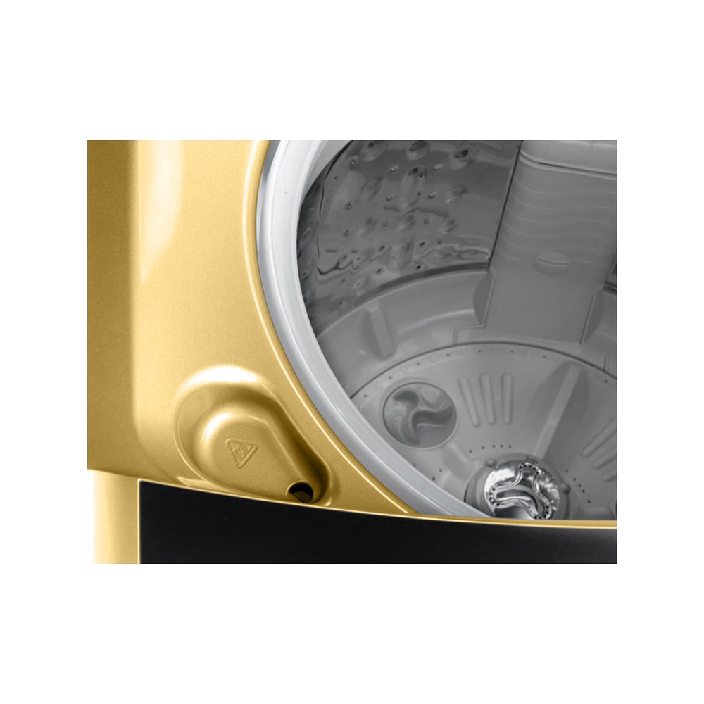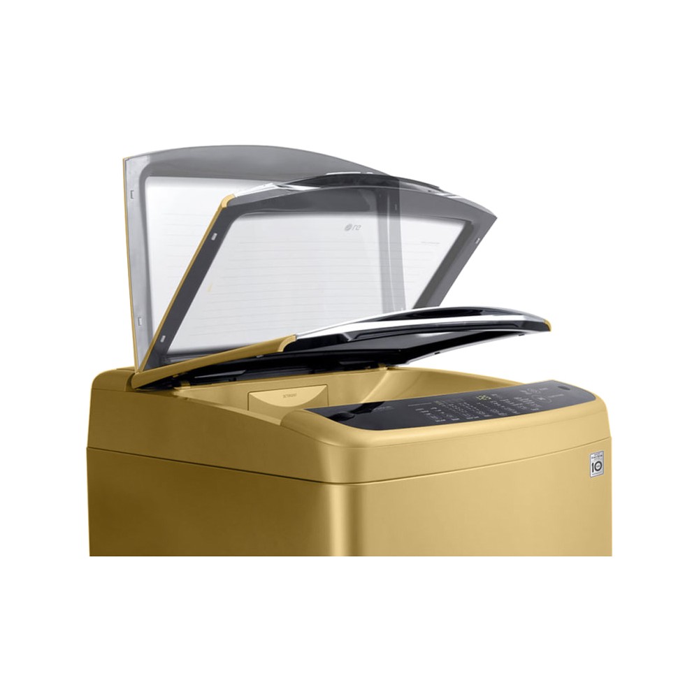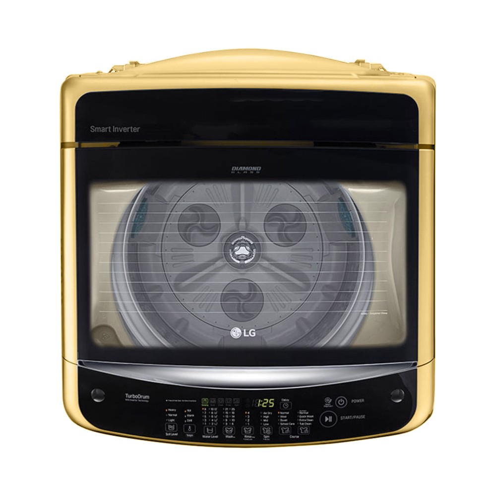 همانطور که از تصاویر گالری نیز مشخص است، این محصول رنگ خاص و منحصر به فرد طلایی یا همان Gold دارد که معمولا در لوازم خانگی مورد استفاده ما ایرانیان کمتر دیده می شود. درب و پنل کنترلی ماشین لباسشویی طلایی ال جی T1966NEFT4 به رنگ مشکی است و ترکیب زیبایی را با رنگ طلایی ایجاد کرده است. این ماشین لباسشویی درب از بالای ال جی به دلیل وزن زیادی که دارد، به 2 عدد دستگیره مجهز شده تا حمل و نقل آن ساده تر باشد. همانطور که مشخص است، درب این ماشین لباسشویی از بالا باز می شود و همین موضوع باعث شده تا آن را با عنوان ماشین لباسشویی درب از بالا (Top Load Washing Machine) بشناسند. درب این محصول از جنس شیشه حرارت دیده است که با عنوان Tempered Glass Door یا Diamond Glass نیز شناخته می شود. ماشین لباسشویی مذکور دارای درب شفاف می باشد تا به راحتی بتوانید روند شستشو را مشاهده نمایید. این محصول به سیستم Soft Closing Door (Smart Closing) مجهز است به این معنی که درب آن به آرامی بسته می شود تا از آسیب رسیدن به بدنه و درب ماشین لباسشویی جلوگیری شود. پنل کنترلی این محصول نیز در قسمت بالای آن قرار گرفته است. ممکن است تصور کنید که دکمه های این پنل از نوع لمسی می باشند اما متاسفانه این طور نیست و دکمه ها به صورت فشاری ساخته شده اند و تنها طراحی مدرن دارند. قابلیت قفل کودک (Child Lock) برای این ماشین لباسشویی در نظر گرفته شده تا بتوانید پنل کنترلی را قفل کنید و از تغییر ناخواسته تنظیمات شستشو جلوگیری کنید. ماشین لباسشویی پیش روی شما دارای 2 ورودی آب (1 عدد ورودی آب سرد و 1 عدد ورودی آب گرم) دارد که در پشت محصول قرار دارند. لازم به ذکر است که ال جی این محصول را به فیلتر ورودی آب مجهز کرده است تا از ورود آشغال و ذرات مختلفی که در آب وجود دارند به داخل ماشین لباسشویی جلوگیری شود. لازم است هر از چند گاهی این فیلترها را تمیز کنید تا از عملکرد صحیح ماشین لباسشویی مطمئن شود. این ماشین لباسشویی به 2 عدد فیلتر پرزگیر یا Lint Filter از نوع Mesh Filter نیز مجهز است که داخل دیگ شستشو قرار دارند. دیگ شستشوی این محصول نیز از جنس استیل ضد زنگ (STS Steel) است و همانطور که اشاره شد، طراحی برجسته (Embossing) دارد. این نوع طراحی باعث شده تا لباس ها در عین حال که بهتر شسته می شوند، دچار آسیب یا پارگی نشوند.