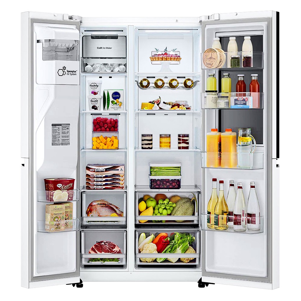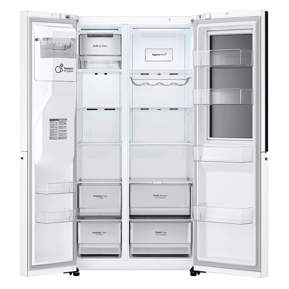 همانطور که در ابتدا نیز اشاره کردیم، یخچال فریزر سفید ال جی GR-X267SQCS یکی از یخچال فریزرهای ساید بای ساید ال جی می باشد. این یعنی بخش یخچال در سمت راست و بخش فریزر در سمت چپ قرار گرفته است. دستگیره این محصول از نوع پاکتی یا Pocket Handle می باشد که ظاهری مدرن و شیک به یخچال فریزر بخشیده است. طراحی یخچال فریزر مذکور بسیار لوکس و مینیمال است که باعث می شود با اکثر دکوراسیون ها سازگاری داشته باشد. همانطور که از ظاهر یخچال و توضیحات داده شده مشخص است، این محصول دارای آب ریز و یخ ریز می باشد که روی درب فریزر قرار گرفته است. این آب ریز و یخ ریز تنها دارای 1 اهرم است و شما باید از طریق پنل کنترلی لمسی که روی آن قرار دارد تعیین کنید که می خواهید یخ خرد، یخ حبه ای یا آب دریافت کنید. این یخچال فریزر ساید بای ساید ال جی دارای قابلیت درب در درب و همچنین اینستاویو (InstaView) می باشد. قابلیت درب در درب که با عنوان Door-in-Door نیز شناخته می شود، در واقع یک درب کوچک تر از درب اصلی یخچال است که به شما اجازه می دهد بتوانید بدون باز کردن درب اصلی و بزرگ یخچال، به برخی از مواد غذایی موجود در یخچال دسترسی داشته باشید. برای باز کردن و دسترسی به قسمت Door-in-Door تنها نیاز است اهرمی که در بخش دستگیره یخچال تعبیه شده را به آرامی فشار دهید. همانطور که گفته شد، این محصول دارای قابلیت InstaView نیز می باشد. این یعنی قسمت درب در درب به صورت شیشه ای طراحی شده و شما اگر 2 بار به آرامی به آن ضربه بزنید (مانند درب زدن)، می توانید داخل یخچال را مشاهده کنید. قابلیت مذکور به شما اجازه می دهد قبل از باز کردن درب یخچال، داخل آن را مشاهده کرده و مواد غذایی مورد نظر خود را پیدا کنید و سپس درب یخچال را باز کنید. به این ترتیب تا حدودی از باز و بست کردن بیهوده درب یخچال جلوگیری شده و در مصرف انرژی و هزینه ها نیز صرفه جویی می شود. این یخچال فریزر دارای تکنولوژی Bio Shield (Gasket) می باشد و از واشر و لاستیک آنتی باکتریال (ضد باکتری) بین درب های یخچال فریز و بدنه اصلی استفاده شده است. این تکنولوژی باعث ایزوله شدن فضای داخلی یخچال فریزر و بیرون شده و از ورودی باکتری ها به داخل آن می شود. شما به راحتی می توانید واشر و لاستیک دور درب این یخچال فریزر را درآورده و پس از نظافت در جای خود نصب نمایید.