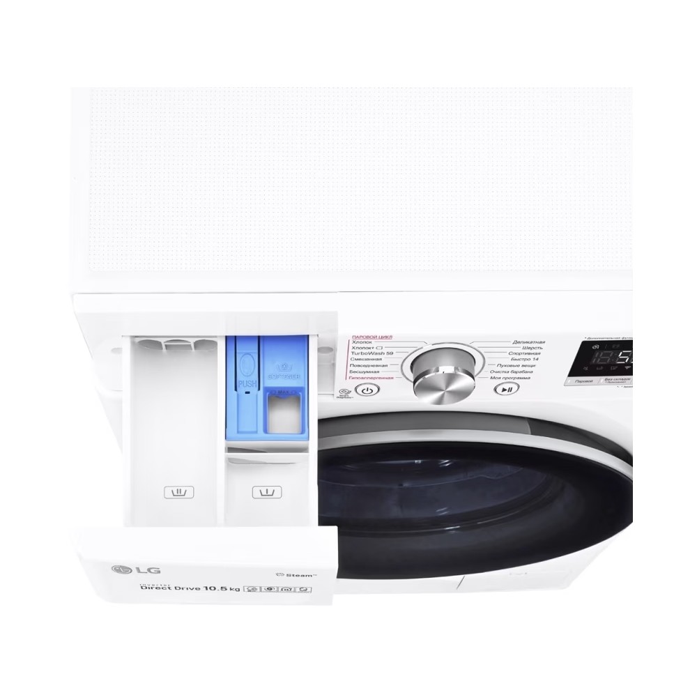 ماشین لباسشویی ال جی TW4V7RW1W یا V7 رنگ سفید یکی دیگر از ماشین لباسشوییهای 2019 ال جی به شمار میآید. محصول فوق در حال حاضر با مدل کامل TW4V7RW1W مونتاژ چین (سفارش روسیه) وارد بازار ایران شده است، لازم است بدانید که منوی برنامههای شستشو و قابلیتهای این ماشین لباسشویی به زبان روسی میباشد. ماشین لباسشویی TW4V7RW1W با ظرفیت شستشوی 10.5 کیلویی و قابلیت Steam برای خانوادههای پر جمعیت انتخابی کاملا مناسب است. محصول پیش روی شما در بعضی از مناطق جغرافیایی با مدل ماشین لباسشویی ال جی F4V7RWP1W نیز عرضه میشود. همچنین ممکن است در بازار با مدل F4V7 و یا V7 نیز به مشتری معرفی شود که البته مدل دقیقی نمیباشد. احتمال دارد بعضی از فروشندگان به دلیل عدم آگاهی این محصول را به عنوان ماشین لباسشویی خشککندار نیز به مشتری معرفی نمایند، در حالی که این ماشین لباسشویی خشک کن 100% ندارد. محصول فوق به لطف داشتن حداکثر سرعت 1400 دور دقیقه آب اضافی لباسها را پس از پایان شستشو از آنها خارج نموده و با کمی رطوبت به شما تحویل میدهد، در نتیجه برای خشک شدن کامل لباسها لازم است آنها را در جایی آویزان نمایید. البته شما میتوانید سرعت چرخش دیگ را روی مقادیر 400، 800، 1000 و 1200 نیز تنظیم نمایید؛ هر چقدر سرعت چرخش دیگ عدد کمتری باشد لباسها در پایان شستشو رطوبت بیشتری خواهند داشت.