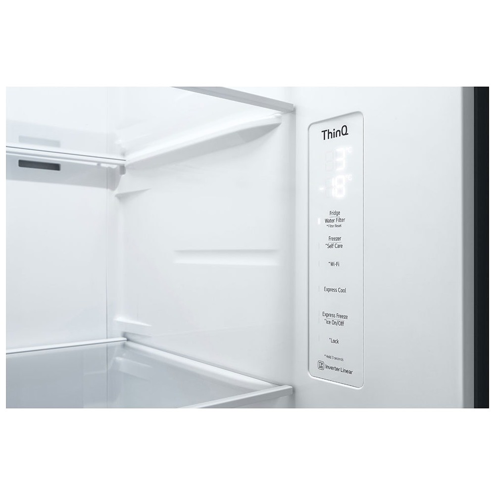 - محل قرار گیری پنل کنترلی در داخل یخچال قابلیت Express Cool برای سرمایش سریع در یخچال مناسب برای مناطق جغرافیایی با آب و هوای نیمه گرمسیری (Subtropical) یا ST استفاده از گاز R600a برای ایجاد سرمایش و سازگاری با محیط زیست کشوی Fresh Zone مخصوص نگهداری میوه و سبزیجات پشتیبانی از اینترنت اشیاء (IoT) برای مدیریت و کنترل یخچال فریزر توسط دستگاههای هوشمند سازگار از طریق شبکه و اینترنت تضمین عملکرد و کارایی موتور Inverter Linear Compressor تا 10 سال توسط ال جی قابلیت Express Freeze برای انجماد سریع در فریزر و یخ ساز قابلیت Door Alarm برای اطلاع دادن در صورت باز ماندن درب یخچال تکنولوژی +Door Cooling برای سرمایش سریع تر مواد غذایی موجود در درب یخچال و فریزر مناسب برای مناطق جغرافیایی با آب و هوای گرمسیری (Tropical) یا T سیستم بدون برفک (No Frost) قابلیت Self Care برای فعال کردن دستی نور UV و پاکسازی دهانه آبریز سیستم یخ ریز با قابلیت تولید یخ حبه ای (مکعبی) و یخ خرد تکنولوژی LINEAR Cooling (LinearCooling) جهت حفظ و کنترل دقیق دما در داخل یخچال و فریزر با نوسان 0.5 درجه سانتیگراد تکنولوژی UVnano برای از بین بردن باکتریهای دهانه آبریز تا 99.99% با استفاده از نور فرابنفش کشوی Fresh Balancer مخصوص نگهداری میوه و سبزیجات قابلیت درب در درب (Door-in-Door) برای دسترسی به برخی مواد غذایی بدون باز کردن درب اصلی یخچال و جلوگیری از هدر رفت سرما سیستم یخ ساز اتوماتیک با طراحی باریک برای اشغال فضای کمتر (SpacePlus Ice System) قابلیت Child Lock (Lock) برای قفل کردن پنل کنترلی یخچال طبقات یخچال و فریزر از جنس شیشه حرارت دیده سیستم عیب یاب هوشمند (Smart Diagnosis) برای عیب یابی راحت تر دستگیره مخفی (Pocket Handle) پشتیبانی از برنامه LG ThinQ برای کنترل و مدیریت یخچال فریزر از طریق موبایل (مخصوص موبایل های اندرویدی و iOS) سیستم تهویه هوای Multi Air Flow برای توزیع هوای سرد یکنواخت در کل یخچال و فریزر از طریق دریچه های هوای متعدد تکنولوژی Bio Shield (Gasket) و لاستیک ضد باکتری دور درب جهت افزایش عمر یخچال