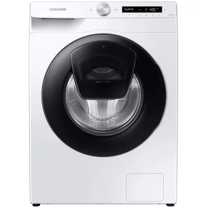 ماشین لباسشویی 8 کیلویی سامسونگ WW80T554DAW مجهز به 22 برنامه مختلف برای شستن انواع لباس ها می باشد که شما می توانید با چرخاندن دکمه پیچی روی محصول برنامه مدنظر خود را تنظیم نمایید. روی بدنه دستگاه نام برنامه های شستشو نوشته نشده است اما هنگامی که دکمه پیچی را می چرخانید نام برنامه های شستشو با مدت زمان شستشو و حداکثر حجم دیگ روی پنل به شما نمایش داده می شود. ماشین لباسشویی پیش روی شما مجهز به تکنولوژی Hygiene Steam برای شستشوی بهداشتی و بخارشوی کردن لباس ها می باشد. برای استفاده از این تکنولوژی باید برنامه شستشوی Hygiene Steam، Baby Care و یا Bedding را انتخاب کنید تا ذرات آلرژی زا و باکتری ها تا 99.9% به کمک بخار آب و آب داغ به طور کامل از الیاف پارچه حذف و نابود شود. برنامه های ذکر شده به ترتیب برای شستشوی بهداشتی لباس های کتان و نخی، لباس کودکان و ملحفه و روتختی به کار می رود. برای شستشوی لباس های روزمره در کمترین زمان می توانید برنامه شستشو را روی 15' Quick Wash قرار دهید تا در مدت 15 دقیقه شستشوی البسه انجام شود. از آنجایی که لباس های ورزشی زود به زود شسته می شوند سامسونگ برنامه خاصی با عنوان Activewear برای شستشوی این نوع لباس ها در ماشین لباسشویی فوق در نظر گرفته است تا شستشو تحت دمای مناسب، با آب سرد و یا بسیار ولرم انجام شده و با بهترین عملکرد در روند شستشو لباس های ورزشی شما عمر بیشتری داشته باشند. سامسونگ این لباسشویی را به برنامه مخصوص شستشوی دیگ مجهز نموده است، اگر رسوباتی در روزنه های دیگ ایجاد شد و یا بوی ناخوشایندی از دیگ شستشو به مشام رسید می توانید برنامه Drum Clean را برای شستشو و ضد عفونی کردن دیگ و از بین بردن باکتری ها تا 99.9% اجرا نمایید. برای شستشوی انواع لباس های رنگی بهتر است برنامه Colours را اجرا نمایید تا شستشوی لباس های رنگی در دمای مناسب انجام شود و از ترکیب رنگ لباس ها جلوگیری شود. شما می توانید با اطمینان خاطر انواع حوله و پادری های خود را با اجرای برنامه Towels در ماشین لباسشویی شستشو نمایید. ممکن است گاهی اوقات لباس ها به یک دور آبکشی ساده نیاز داشته باشند در چنین شرایطی می توانید برنامه Rinse+Spin را اجرا نمایید تا لباس ها در ابتدا آبکشی شده و سپس آب اضافی آن ها به خوبی گرفته شود. در کنار برنامه های شستشو، محصول فوق مجهز به قابلیت ها و گزینه های بیشتری برای استفاده بهتر از ماشین لباسشویی می باشد که در ادامه این بخش به ارائه توضیحاتی در خصوص برخی از آن ها خواهیم پرداخت. بر روی درب دیگ شستشوی این محصول درب کوچکی قرار گرفته است و شما می توانید از طریق این درب کوچک لباس هایی که از دور شستشو جا مانده اند را حتی پس از شروع شستشو نیز به داخل دیگ اضافه نمایید. البته ابتدا باید قابلیت AddWash را فعال نمایید. اگر لباس های شما دارای لکه های عمیق و زیادی است و لازم است قبل از شستشوی اصلی مدت بیشتری در آب خیسانده شوند می توانید قابلیت Prewash را فعال نمایید. قابلیت Rinse برای اضافه نمودن دور آبکشی، قابلیت Spin برای تنظیم سرعت چرخش دیگ و قابلیت Temp برای تغییر و تنظیم دمای آب در برنامه های شستشو به کار می رود. برای شستشوی بهتر لباس های کثیف و لکه دار لازم است قابلیت Bubble Soak را در برخی برنامه های شستشو فعال نمایید تا البسه در حباب آب فراوان به خوبی شسته شوند. به لطف قابلیت My Cycles شما می توانید برنامه دلخواه خود را به صورت شخصی تنظیم و در حافظه ماشین لباسشویی ذخیره نمایید. ممکن است بر حسب شرایط شما از برخی برنامه های شستشو بیشتر استفاده کنید، پس از روشن کردن ماشین لباسشویی کافیست قابلیت AI Pattern را فعال کنید تا اطلاعات شستشو هایی که بیشتر از آن ها استفاده کرده اید را روی پنل به شما نمایش دهد. به کمک قابلیت Alarm به راحتی می توانید صدای اتمام دور شستشوی دستگاه را فعال یا غیر فعال نمایید. ماشین لباسشویی 1400 دور سامسونگ WW80T554DAW قابلیت خشک کن ندارد و نمی تواند لباس ها را به صورت 100% خشک نماید. این محصول آب اضافی لباس ها را به خوبی از آن ها خارج کرده و بعد از آبگیری ب