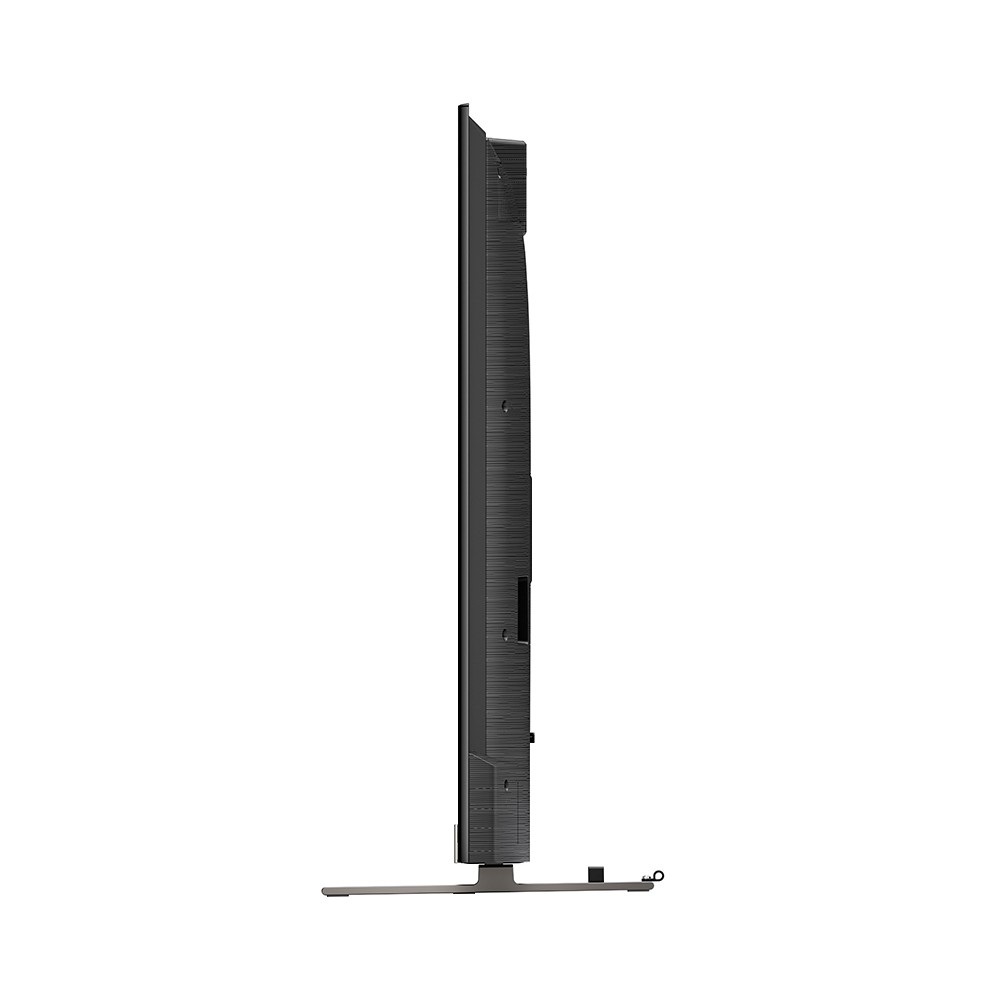 تلویزیون 75 اینچ توشیبا Z870 به لطف برخورداری از زبان طراحی Essential Beauty کیفیت طراحی و ساخت بالایی دارد. با وجود اینکه توشیبا تلاش زیادی کرده تا بدنه این محصول را باریک طراحی کند اما با این حال باز هم شاهد ضخامت 7.9 سانتی متری در بدنه آن هستیم. این شرکت ژاپنی دلیل ضخامت تقریبا زیاد این تلویزیون را به کار بردن نور پس زمینه Direct Full Array Mini LED در صفحه نمایش آن عنوان نموده است. محصول پیش روی شما دارای قاب و حاشیه های باریکی در 3 طرف صفحه نمایش خود می باشد. این طراحی که Bezel Less نامیده شده، باعث می شود تا شما در هنگام تماشای تلویزیون، بر روی محتوای در حال پخش تمرکز بیشتری داشته باشید. همانطور که قبلا هم گفته شد، در قسمت پشت این محصول جایی برای بلندگوی ساب ووفر آن تعبیه شده است که ظاهر جذابی به آن بخشیده است. توشیبا برای تلویزیون مذکور 2 عدد پایه خطی و مشکی رنگ طراحی کرده است که از جنس فلز ساخته شده اند و به خوبی از پس سنگینی آن برمی آیند. طراحی این پایه ها Pure Metal Stand نام گرفته است که به فلزی و شیک بودن آن ها اشاره دارد. پایه های مذکور می توانند در 2 حالت مختلف به بدنه تلویزیون متصل شوند. در صورتی که میز بزرگی در اختیار دارید می توانید پایه ها را در حالت استاندارد (در دو طرف تلویزیون) نصب کنید و یا می توانید آن ها را در حالت نزدیک به هم نصب کرده و تلویزیون را روی میز کوچک تری قرار دهید. در قسمت پشت این پایه ها 2 گیره مدیریت کابل قرار دارد که توشیبا آن ها را با عنوان قابلیت Cable Solution معرفی می کند. این گیره ها به شما اجازه می دهند تا کابل های مربوطه را از داخل آن ها عبور داده و آن ها را مرتب نمایید. در جعبه تلویزیون مذکور یک کابل تبدیل AV نیز قرار دارد که برای اتصال دستگاه های قدیمی به آن مورد استفاده قرار می گیرد. لازم است بدانید که کابل برق این محصول از نوع 3 شاخه می باشد و شما برای اتصال آن به پریز برق، به یک تبدیل 3 به 2 نیاز خواهید داشت.