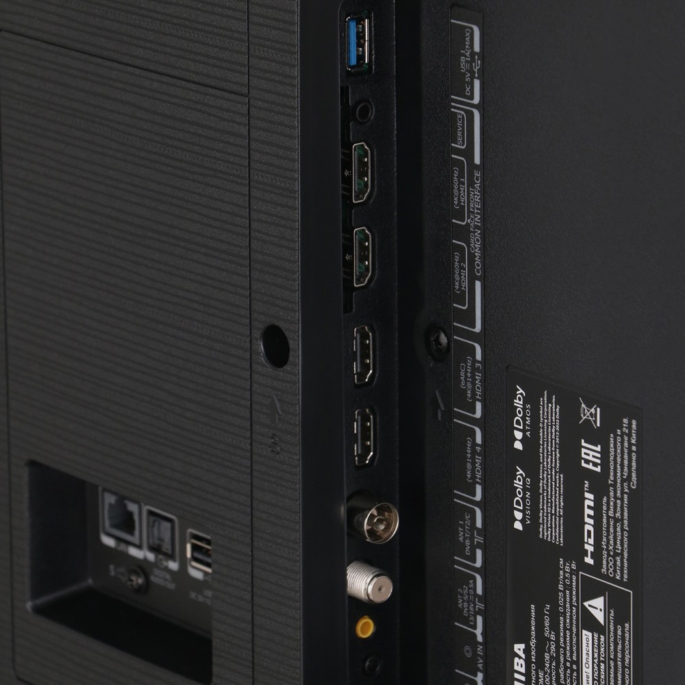 - دارای 1 پورت USB 2.0 و 1 پورت USB 3.0 برای اتصال حافظه جانبی دارای بلندگوهای رو به جلو (Front Firing) و پشت (Rear Firing) و بالا (Up Firing) قابلیت Clear Motion برای تنظیم نور پس زمینه صفحه نمایش و نمایش صاف و روان صحنه های سریع دارای برنامه We TV (ممکن است در برخی مناطق جغرافیایی در دسترس نباشد) تکنولوژی HDR (High Dynamic Range) برای نمایش محتوای HDR دارای ریموت کنترل هوشمند و بلوتوثی توشیبا مدل RSAG8.074.5076 به همراه میکروفون داخلی (ریموت کنترل ممکن است با توجه به مناطق جغرافیایی مختلف، متفاوت باشد) قابلیت Audio Only برای خاموش کردن صفحه نمایش و شنیدن تنها صدای تلویزیون دارای پایه تمام فلزی باریک و شیک (Pure Metal Stand) قابلیت Power ON Mode برای تنظیم حالت خاموش و روشن شدن تلویزیون برای صرفه جویی در مصرف انرژی تکنولوژی Variable Refresh Rate (VRR) برای ارائه رفرش ریت متغیر و تجربه روان بازی ها قابلیت Game Deck برای دسترسی و تنظیم سریع برخی از ویژگی های گیمینگ تلویزیون در حین بازی کردن قابلیت Voice Search برای جستجوی صوتی قابلیت Content Type Auto Detection برای تشخیص نوع محتوا و فعال سازی Filmmaker Mode یا IMAX Mode با توجه به آن قابلیت HID برای اتصال ماوس (موس) و کیبورد از طریق USB به تلویزیون قابلیت Auto Sleep برای خاموش شدن خودکار تلویزیون تکنولوژی Color Re-Master Pro (Colour Re-Master Pro) برای ارائه رنگهای دقیق و واقعی و نمایش جزئیات تصویر بیشتر تکنولوژی DLNA برای به اشتراک گذاری محتوا از دستگاه های دیگر روی تلویزیون در شبکه داخلی تکنولوژی AI 4K Upscaling برای افزایش رزولوشن تصاویر و از بین بردن نویز آن ها و نمایش همه چیز در حد کیفیت تصویر 4K به کمک هوش مصنوعی دارای برنامه Netflix (ممکن است در برخی مناطق جغرافیایی در دسترس نباشد) تکنولوژی Ultra Vision 240 (UltraVision 240) برای افزایش تعداد فریم ها و نمایش صاف و روان صحنه های سریع (مخصوص بازی) تکنولوژی AMD FreeSync Premium برای اتصال به کنسول و کامپیوترهایی که از پردازنده AMD و تکنولوژی FreeSync برخوردار هستند و ارائه رفرش ریت متغیر قابلیت Wake On Cast برای روشن کردن تلویزیون از طریق Screen Mirroring موبایل (ممکن است در برخی مناطق جغرافیایی در دسترس نباشد) تکنولوژی Anti Reflection (Anti-Reflection) برای جلوگیری از بازتاب نور محیط در صفحه نمایش تلویزیون تکنولوژی AI Auto View Pro برای بهبود کیفیت تصویر با توجه به سیگنال محتوای در حال پخش و نور محیط به کمک هوش مصنوعی دارای برنامه YouTube (ممکن است در برخی مناطق جغرافیایی در دسترس نباشد) تکنولوژی AI Sports Mode (AI Football Mode) برای تشخیص مسابقات ورزشی به کمک هوش مصنوعی و تنظیم حالت های صدا و تصویر متناسب با آن قابلیت VIDAA Art برای استفاده از تلویزیون به عنوان قاب عکس و اثر هنری قابلیت Aspect Ratio برای نمایش میدان دید گسترده در بازی ها (دستگاه ورودی و بازی ها باید از نسبت تصویر 21:9 پشتیبانی کنند) قابلیت Power On Timer برای زمان بندی روشن شدن تلویزیون در ساعت مشخص قابلیت iCare Blue (Low Blue Light) برای کاهش نور آبی ساطع شده از صفحه نمایش و محافظت از چشمان بیننده قابلیت Delete Cookies برای پاک کردن کوکی مرورگر وب و برنامه ها دارای برنامه Shahid VIP برای پخش برنامه های شبکه آنلاین عربی شاهد تکنولوژی Real Sound Adjuster برای بهبود فرکانس صدا تکنولوژی Dynamic Tone Mapping برای بهبود کیفیت محتوای HDR دارای مدیا پلیر داخلی برای پخش محتوا (USB Media Player) قابلیت Digital Noise Reduction (DNR) برای کاهش نویز تصاویر دارای 2 بلندگوی فول رنج (Full-Range) 18 واتی، 2 بلندگوی توییتر (Tweeter) 8 واتی و 1 بلندگوی ساب ووفر (Subwoofer) 25 واتی تکنولوژی Smart Scene برای بهبود کیفیت تصویر با توجه به محتوای در حال پخش تکنولوژی AI Ultra Essential PQ برای بررسی پیکسل ها و تشخیص صحنه در حال پخش و همینطور تشخیص میزان روشنایی محیط و تنظیم پارامترهای پیچیده تصویر جهت بهبود کیفیت صحنه ها به کمک هوش مصنوعی پشتیبانی از اینترنت اشیا (IoT) برای مدیریت و کنترل تلویزیون و دستگاه های هوشمند سازگار از طریق شبکه و اینترنت دارای برنامه A to Z Movie Box (ممکن است در برخی مناطق جغرافیایی در دسترس نباشد) پشتیبانی از دستیار صوتی گوگل (Google Assistant) (ممکن است برای تمام مناطق