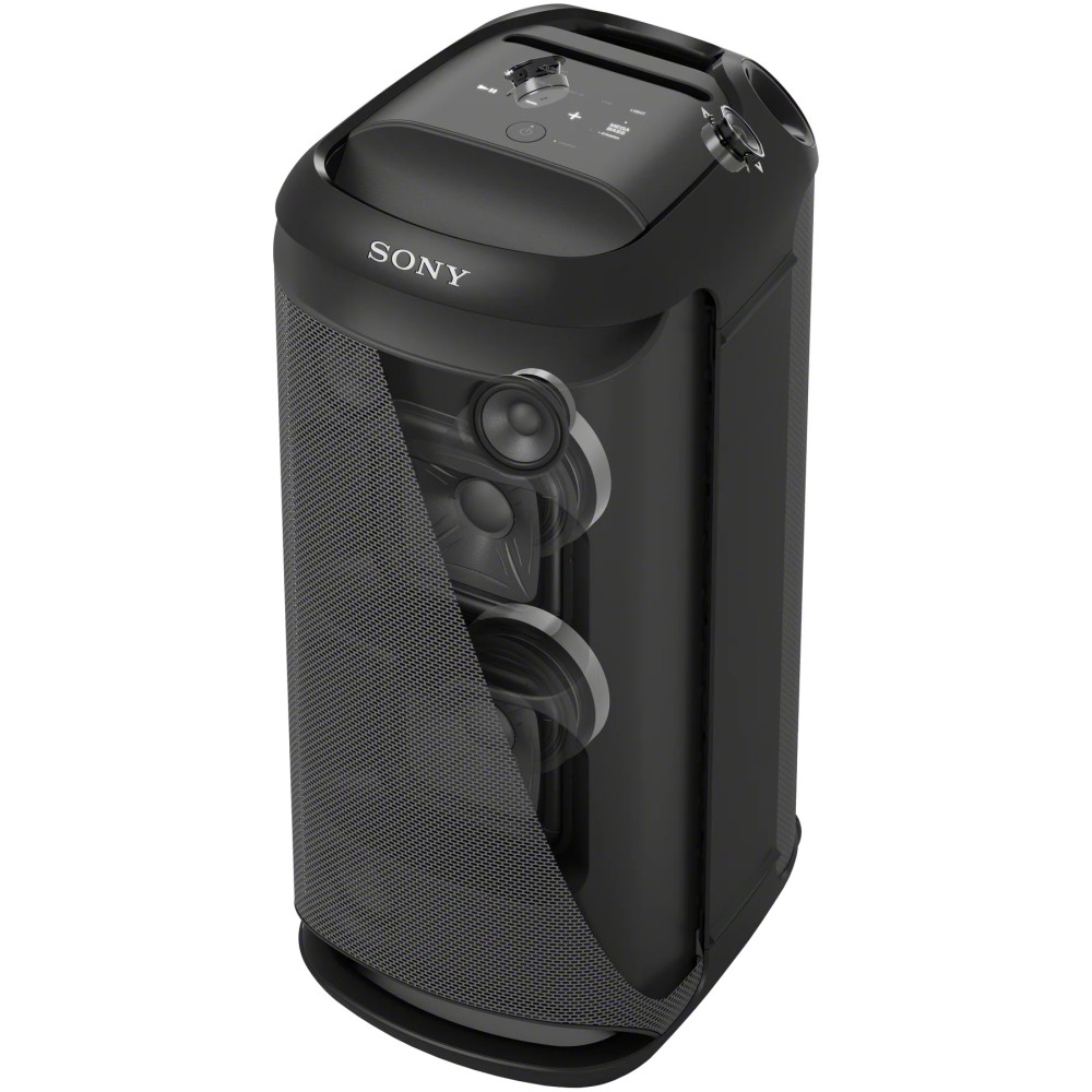 متاسفانه سونی توان و قدرت خروجی صدای دقیق این اسپیکر را اعلام نکرده است اما با توجه به تجربه و تست هایی که ما انجام داده ایم، این محصول از قدرت خروجی صدای حدودا 500 وات برخوردار است و از این لحاظ عالی می باشد. اسپیکر 500 وات سونی XV800 با توجه به ابعاد خود، سیستم صوتی بسیار خوبی دارد. این محصول دارای سیستم صوتی X-Balanced و Bass Reflex است که در واقع X-Balanced به طراحی ووفرهای آن و صدای بهتر آنها اشاره می کند و Bass Reflex نیز به حفره پایین جلوی اسپیکر اشاره می کند که با شلیک هوا، صدای پانچ را تولید می کند. این اسپیکر شامل 3 بلندگوی توییتر در قسمت جلو، 2 بلندگوی ووفر در قسمت جلو و همینطور 2 بلندگوی توییتر در قسمت بالای خود می باشد. نحوه چیدمان این بلندگوها طوری است که شما حتی اگر پشت اسپیکر بایستید، صدای بسیار با کیفیتی را تجربه خواهید کرد؛ سونی طراحی و چیدمان بلندگوهای این محصول را Omni-directional Party Sound نامیده است. نکته جالبی که در مورد بلندگوهای توییتر جلویی این محصول وجود دارد این است که سونی 2 عدد توییتر در قسمت بالای ووفرها و 1 عدد توییتر در قسمت پایین آنها قرار داده است و این چیدمان به نظر کمی عجیب می آید اما علت آن را خدمت شما عرض خواهیم کرد. این اسپیکر را می توانید در 2 حالت ایستاده و خوابیده با توجه به نیاز خود قرار دهید. همانطور که عرض کردیم چیدمان توییترهای جلوی این محصول کمی عجیب است. این توییترها با هم کار نمی کنند. این محصول دارای سنسور تشخیص نحوه قرارگیری است و اگر آن را به صورت عمودی قرار دهید، 2 توییتر بالای ووفرها فعال می شوند و اگر آن را به صورت افقی قرار دهید، توییتر سمت چپ بالای ووفرها و همینطور توییتر پایین ووفرها فعال می شوند و کار می کنند. این عملکرد باعث می شود تا در هر دو حالت ایستاده و خوابیده بهترین کیفیت صدا را در اختیار شما قرار دهد. لازم به ذکر است 2 توییتری که در قسمت بالای این محصول تعبیه شده اند، در هر حالتی فعال هستند و صدا پخش می کنند. این محصول دارای 2 کانال صوتی است و صدای استریو (Stereo) را در اختیار شما قرار می دهد تا از شنیدن آهنگ ها لذت ببرید. سونی این محصول را به قابلیت MEGA BASS مجهز نموده تا صدای باس قدرتمندتری را تجربه کنید. شما می توانید این قابلیت را از طریق دکمه روی پنل کنترلی اسپیکر و همینطور از طریق موبایل فعال کنید. اسپیکر پیش روی شما دارای قابلیت Clear Audio+ است و با فعال کردن آن کیفیت صدای بهتر و واضح تری را در اختیار شما قرار می دهد. سونی این محصول را به تکنولوژی DSEE نیز مجهز کرده است. این تکنولوژی در واقع فرکانس صدای آهنگ های فشرده سازی شده و کم کیفیت را ارتقا داده و آنها را با کیفیت بالاتری پخش می کند. این اسپیکر دارای قابلیت LIVE SOUND است که با فعال کردن آن جو و اتمسفر موسیقی زنده یا کنسرت زنده را برای شما تداعی می کند و باعث می شود تا شنیدن آهنگ ها هیجان انگیزتر شود.