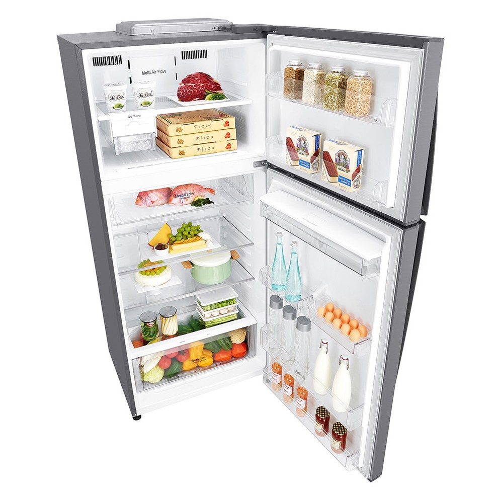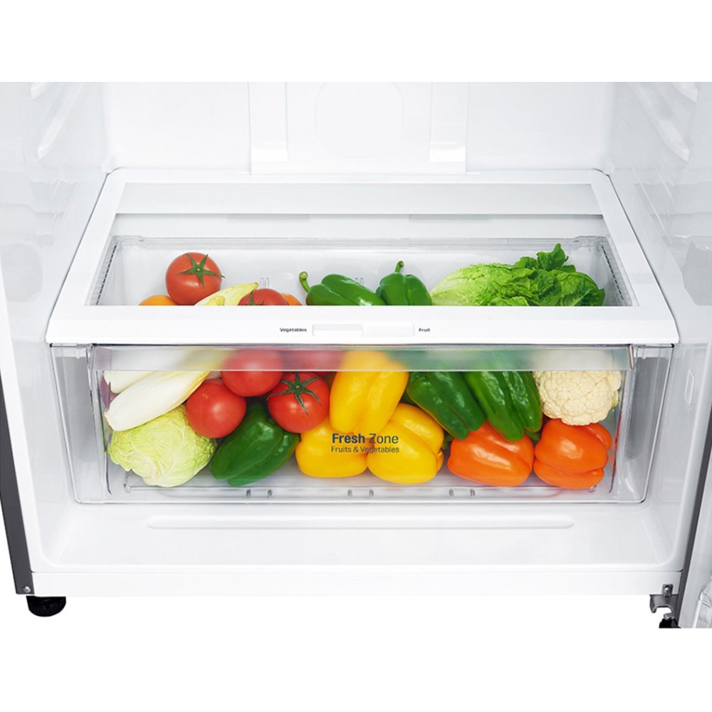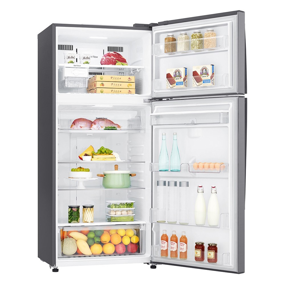 یخچال فریزر 20 فوت ال جی GN-F782HFHL دارای ظرفیت 547 لیتر می باشد. همانطور که پیش تر نیز اشاره کردیم برخی از فروشگاه ها ممکن است این محصول را به عنوان یخچال فریزر 26 فوت نیز به مشتریان معرفی کنند که این عدد جنبه تبلیغاتی دارد. ظرفیت 547 لیتری این یخچال فریزر ظرفیت کلی آن است. همچنین ظرفیت واقعی این یخچال کمی کمتر یعنی 509 لیتر است که شامل 379 لیتر در قسمت یخچال و 130 لیتر در قسمت فریزر می باشد. قسمت فریزر این محصول در قسمت بالا و قسمت یخچال آن در قسمت پایین قرار دارد. بخش یخچال این محصول دارای 3 طبقه با قابلیت جابجایی می باشد؛ این طبقات از جنس شیشه حرارت دیده می باشند و در برابر ضربه مقاومت بالایی از خود نشان می دهند. 1 کشوی Fresh 0 Zone مخصوص ثابت نگه داشتن دمای گوشت و ماهی در دمای 0 درجه و عدم یخ زدگی آن ها در قسمت یخچال وجود دارد، علاوه بر آن نیز 1 کشوی بزرگ مخصوص نگهداری میوه و سبزیجات به نام Fresh Zone در داخل فضای یخچال تعبیه شده است. این کشو دارای قابلیت Fresh Balancer می باشد که بسته به نوع صیفی جاتی که در آن قرار دارد می توانید میزان رطوبت کشو را به کمک دکمه روی کشو تنظیم نمایید. با این قابلیت میوه و سبزیجات تازگی خود را برای مدت زمان بیشتری حفظ می کنند. در قسمت درب یخچال نیز 4 محفظه جدا در سه طبقه برای قرار دادن انواع بطری و شیشه طراحی شده است؛ لازم است بدانید که یکی از این محفظه ها مخصوص چیدن تخم مرغ و قابل جابجایی می باشد، یعنی شما می توانید سینی مخصوص چیدن تخم مرغ را برداشته و در آن بطری یا شیشه قرار دهید. قسمت فریزر این یخچال شامل دو طبقه می باشد که شما می توانید مواد غذایی مختلف را روی آن قرار دهید، همچنین یک محفظه یخ ساز دستی با قالب یخ مکعبی در داخل فریزر وجود دارد که در هربار استفاده 15 یخ به شما تحویل می دهد. برای استفاده از یخ های تولید شده تنها کافی است دکمه پیچی روی یخ ساز دستی را در جهت عقربه های ساعت پیچانده تا یخ ها در داخل ظرف زیر قالب یخ ریخته شوند. لازم است بدانید که این سیستم یخ سازی دستی به صورت ریلی روی طبقه فریزر سوار شده است و به سمت چپ و راست جابجا می شود. در درب قسمت فریزر نیز دو محفظه مجزا برای نگهداری سایر مواد غذایی تعبیه شده است.