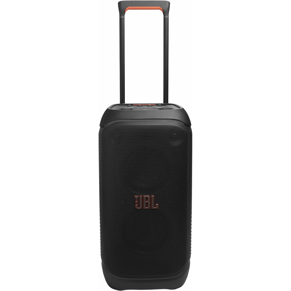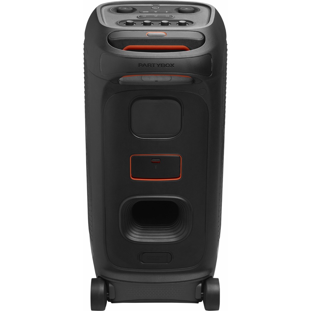 - قابلیت DJ Effect برای تولید افکت های دی جی با 3 دکمه اختصاصی به همراه امکان شخصی سازی آنها دارای چراغ نشانگر ال ای دی بالای اسپیکر برای نمایش وضعیت اتصال بلوتوث (Bluetooth) به دستگاه های دیگر قابلیت AI Sound Boost برای پردازش سیگنال صدای ورودی و بهبود کیفیت آن دارای شکاف مخصوص قرارگیری موبایل در قسمت پنل بالای اسپیکر قابلیت شارژ دستگاه ها از طریق پورت USB با ولتاژ 5 ولت و توان 2.1 آمپر دارای چرخ (Wheels) برای حمل و نقل آسان امکان نصب روی پایه (پایه مخصوص باید به صورت جداگانه تهیه شود) قابلیت Bass Boost (Bassboost) با 2 حالت مختلف برای تقویت صدای باس و تولید بیس های قدرتمند قابلیت تنظیم حساسیت صدای (Gain) گیتار در صورت اتصال گیتار به اسپیکر دارای باتری لیتیوم یونی (Lithium-ion) مدل BATTERY 400 (FG4CELL21700G) با ظرفیت 9444 میلی آمپر و 7.2 ولت و قابل تعویض قابلیت Stereo Pair (Stereo Group) برای اتصال بی سیم (بلوتوثی) دو اسپیکر جی بی ال یکسان و ارائه صدای استریو دارای 1 دستگیره جهت حمل آسان قابلیت شارژ کامل در عرض 3 ساعت دارای تاییدیه FSC برای تولید جعبه و استفاده از جوهر سویا (Soy Ink) در چاپ اطلاعات روی آن جهت سازگاری با محیط زیست قابلیت اتصال میکروفون (Microphone) به اسپیکر قابلیت تنظیم سطح صدای میکروفون در صورت اتصال میکروفون به اسپیکر پشتیبانی از پروفایل بلوتوث AVRCP V1.6 دارای 1 پورت USB 2.0 دارای کابل برق 2 متری قابلیت Daisy Chain برای اتصال سیمی به سیستم صوتی یا اسپیکر مجزا و ارائه صدای قدرتمند پشتیبانی از فرکانس بلوتوث 2.4 (2.4000GHz تا 2.4835GHz) پشتیبانی از پروفایل بلوتوث A2DP V1.4 سیستم صوتی JBL Pro Sound برای ارائه صدای واضح و با کیفیت در کنار باس (بیس) قدرتمند و دلنشین پشتیبانی از برنامه JBL PartyBox مخصوص موبایل های هوشمند اندروید و iOS برای کنترل اسپیکر قابلیت تنظیم حساسیت صدای (Gain) میکروفون در صورت اتصال میکروفون به اسپیکر قابلیت شارژ سریع (Fast Charge) در 10 دقیقه با توانایی پخش 2 ساعت آهنگ قابلیت Standby برای رفتن به حالت استندبای در صورت عدم استفاده از اسپیکر به مدت 20 دقیقه و صرفه جویی در مصرف انرژی بدنه بسیار مقاوم از جنس پلاستیک فشرده برای جلوگیری از آسیب های احتمالی در مهمانی ها و جشن ها دارای نشانگر ال ای دی برای نمایش وضعیت شارژ باتری دارای 1 پورت ورودی AUX از نوع 3.5 میلیمتری پشتیبانی از حافظه جانبی USB و سیستم فایل FAT16 و FAT32 قابلیت نمایش میزان سطح صدا به کمک نور پردازی دور بلندگو قابلیت Custom EQ برای تنظیم اکولایزر صدا به صورت دستی تکنولوژی Auracast (Multi-Speaker Connection) برای اتصال بی سیم (بلوتوثی) به اسپیکرهای پارتی باکس جی بی ال سازگار دیگر و ارائه صدای قدرتمند دارای حفره خروجی هوا Bass Reflex در قسمت پشت اسپیکر برای تقویت صدای باس پشتیبانی از فرکانس صوتی (Frequency Response Range) از 40Hz تا 20KHz دارای 2 بلندگوی ووفر (Woofer) 165 میلیمتری پر قدرت در قسمت جلوی اسپیکر قابلیت قرارگیری تنها به صورت ایستاده قابلیت کارائوکه (Karaoke) برای تمرین خوانندگی و نوازندگی و مسابقه دادن با دوستان خود دارای نسبت سیگنال به نویز 80 دسی بل قابلیت اتصال گیتار (Guitar) به اسپیکر قابلیت تنظیم سطح صدای گیتار در صورت اتصال گیتار به اسپیکر پشتیبانی از مدولاسیون بلوتوث GFSK، 8DPSK و π/4 DQPSK دارای 1 دستگیره تلسکوپی جهت حمل آسان تر در مسافت های طولانی دارای 2 بلندگوی توییتر (Tweeter) 25 میلیمتری با کیفیت در قسمت جلوی اسپیکر قابلیت رقص نور (Lightshow) از نوع RGB با 6 حالت پیش فرض و امکان شخصی سازی رنگ ها (Neon، Loop، Bounce، Trim، Switch و Freeze)