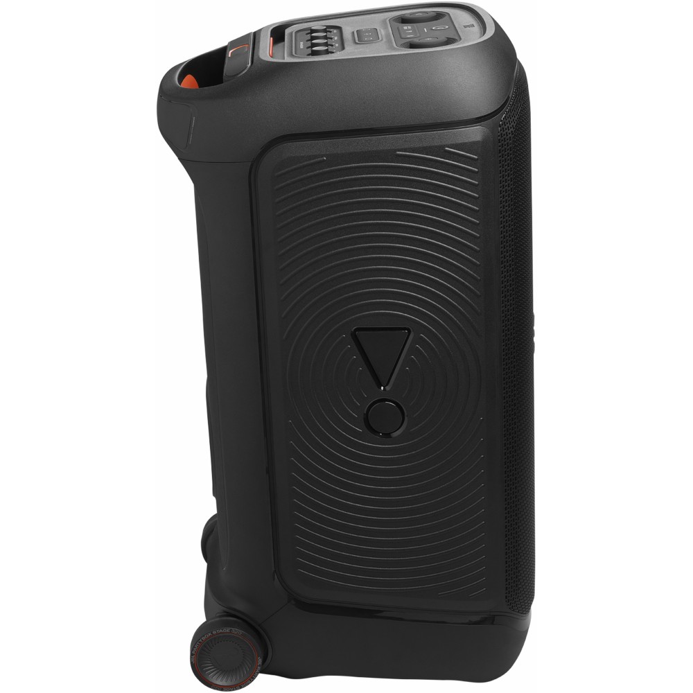 اسپیکر جی بی ال PartyBox Stage 320 رنگ مشکی یکی از اسپیکرهای 2024 جی بی ال می باشد. این محصول جزو اسپیکر های سری PartyBox جی بی ال محسوب می شود. متاسفانه برخی فروشندگان و فروشگاه ها به دلیل عدم آگاهی و نداشتن اطلاعات کافی، این بلندگو را با عنوان اسپیکر جی بی ال PartyBox 320 نیز معرفی می کنند که کاملا اشتباه است. اسپیکر جی بی ال پارتی باکس استیج 320 مدل جدیدتر و بهبود یافته اسپیکر جی بی ال PartyBox 310 است که در سال های گذشته تولید و معرفی شده بود. اسپیکر جی بی ال PartyBox Stage 320 یکی از بهترین اسپیکرهای بلوتوثی و قابل حمل جی بی ال در سال 2024 است که با توان 240 واتی خود برای مهمانی های متوسط و تقریبا بزرگ شما گزینه مناسبی محسوب می شود. همانطور که احتمالا می دانید، شرکت جی بی ال زیرمجموعه یکی از بزرگ ترین تولید کنندگان سیستم های صوتی در جهان، یعنی شرکت هارمن (HARMAN) می باشد. به همین دلیل است که شما روی جعبه این محصول عبارت JBL by HARMAN را مشاهده می کنید. این موضوع نشان دهنده کیفیت بالای این محصول می باشد و شما با خیال راحت می توانید روی آن حساب باز کنید.