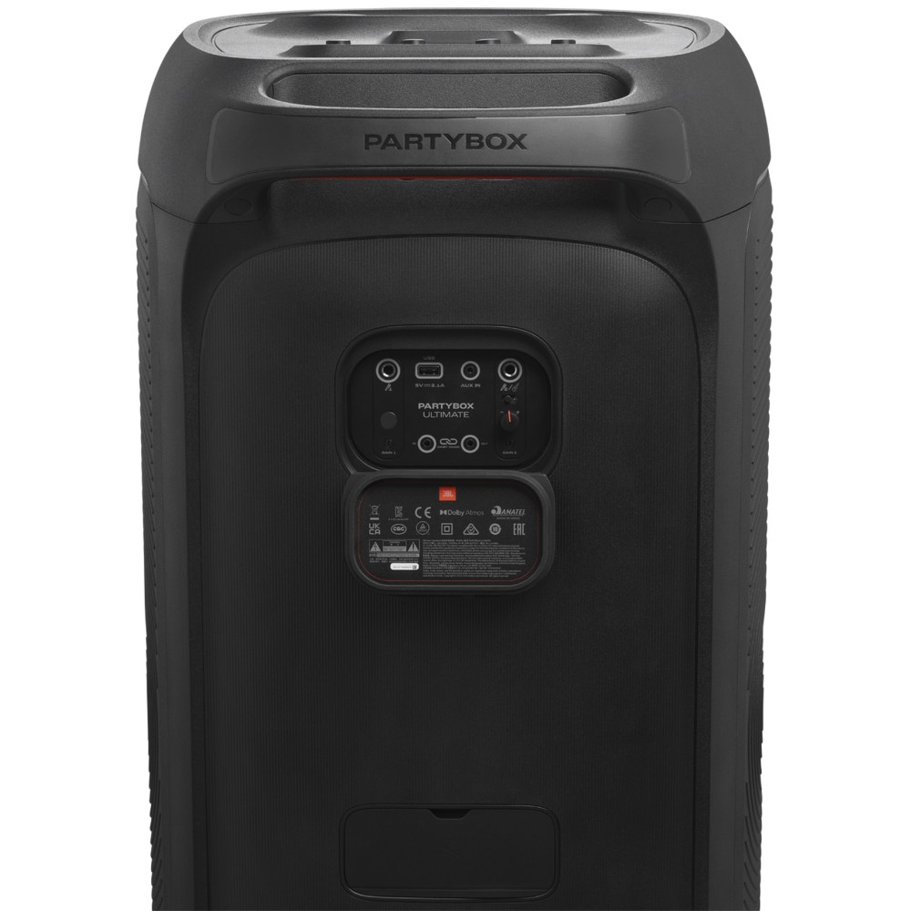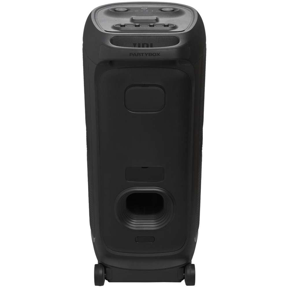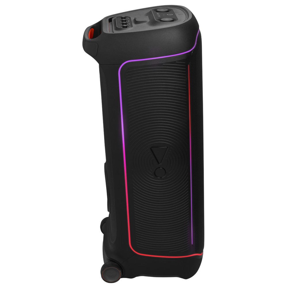 - قابلیت Bass Boost (Bassboost) با 2 حالت مختلف برای تقویت صدای باس و تولید بیس های قدرتمند دارای 2 بلندگوی میدرنج (Mid-Range) 120 میلیمتری با کیفیت در قسمت جلوی اسپیکر قابلیت قرارگیری تنها به صورت ایستاده دارای چراغ نشانگر ال ای دی بالای اسپیکر برای نمایش وضعیت اتصال وای فای (Wi-Fi) به دستگاه های دیگر قابلیت اتصال گیتار (Guitar) به اسپیکر قابلیت تنظیم سطح صدای گیتار در صورت اتصال گیتار به اسپیکر دارای شکاف مخصوص قرارگیری موبایل در قسمت پنل بالای اسپیکر پشتیبانی از پروفایل بلوتوث A2DP V1.3 قابلیت تنظیم حساسیت صدای (Gain) میکروفون در صورت اتصال میکروفون به اسپیکر قابلیت Stereo Pair (Stereo Group) برای اتصال بی سیم (بلوتوثی) دو اسپیکر جی بی ال یکسان و ارائه صدای استریو قابلیت Self Tuning برای کالیبره کردن و تنظیم صدا با توجه به شرایط محیط از طریق میکروفون های داخلی اسپیکر قابلیت Daisy Chain برای اتصال سیمی به سیستم صوتی یا اسپیکر مجزا و ارائه صدای قدرتمند تکنولوژی Auracast (Multi-Speaker Connection) برای اتصال بی سیم (بلوتوثی) به اسپیکرهای پارتی باکس جی بی ال سازگار دیگر و ارائه صدای قدرتمند قابلیت Standby برای رفتن به حالت استندبای در صورت عدم استفاده از اسپیکر به مدت 10 دقیقه و صرفه جویی در مصرف انرژی دارای چرخ (Wheels) برای حمل و نقل آسان دارای کابل برق 2 متری قابلیت اتصال میکروفون (Microphone) به اسپیکر قابلیت تنظیم سطح صدای میکروفون در صورت اتصال میکروفون به اسپیکر پشتیبانی از مدولاسیون بلوتوث GFSK، 8DPSK و π/4 DQPSK دارای چراغ نشانگر ال ای دی بالای اسپیکر برای نمایش وضعیت اتصال بلوتوث (Bluetooth) به دستگاه های دیگر پشتیبانی از پروفایل بلوتوث AVRCP V1.5 دارای 2 بلندگوی ساب ووفر (Subwoofer) 242 میلیمتری پر قدرت در قسمت جلوی اسپیکر پشتیبانی از حافظه جانبی USB و سیستم فایل FAT16 و FAT32 دارای 1 دستگیره جهت حمل آسان پشتیبانی از برنامه JBL One مخصوص موبایل های هوشمند اندروید و iOS برای کنترل اسپیکر قابلیت Moment برای دسترسی به لیست پخش آهنگ های از پیش ساخته شده کاربر دارای 1 پورت USB 2.0 بدنه بسیار مقاوم از جنس پلاستیک فشرده برای جلوگیری از آسیب های احتمالی در مهمانی ها و جشن ها دارای نسبت سیگنال به نویز 80 دسی بل دارای حفره خروجی هوا Bass Reflex در قسمت پشت اسپیکر برای تقویت صدای باس قابلیت Custom EQ برای تنظیم اکولایزر صدا به صورت دستی دارای 2 بلندگوی توییتر (Tweeter) 74 میلیمتری با کیفیت در قسمت جلوی اسپیکر پشتیبانی از فرکانس بلوتوث از 2400MHz تا 2483.5MHz قابلیت تنظیم حساسیت صدای (Gain) گیتار در صورت اتصال گیتار به اسپیکر قابلیت PartyPad (Party Pad) برای دی جی کردن آهنگ ها به صورت حرفه ای سیستم صوتی JBL Pro Sound برای ارائه صدای واضح و با کیفیت در کنار باس (بیس) قدرتمند و دلنشین دارای 1 پورت ورودی AUX از نوع 3.5 میلیمتری قابلیت کارائوکه (Karaoke) برای تمرین خوانندگی و نوازندگی و مسابقه دادن با دوستان خود قابلیت شارژ دستگاه ها از طریق پورت USB با ولتاژ 5 ولت و توان 2.1 آمپر قابلیت نمایش میزان سطح صدا به کمک نور پردازی دور بلندگو قابلیت رقص نور (Lightshow) از نوع RGB با 6 حالت پیش فرض و امکان شخصی سازی رنگ ها (Neon، Loop، Bounce، Trim، Switch و Freeze) پشتیبانی از فرکانس صوتی (Frequency Response Range) از 30Hz تا 20KHz