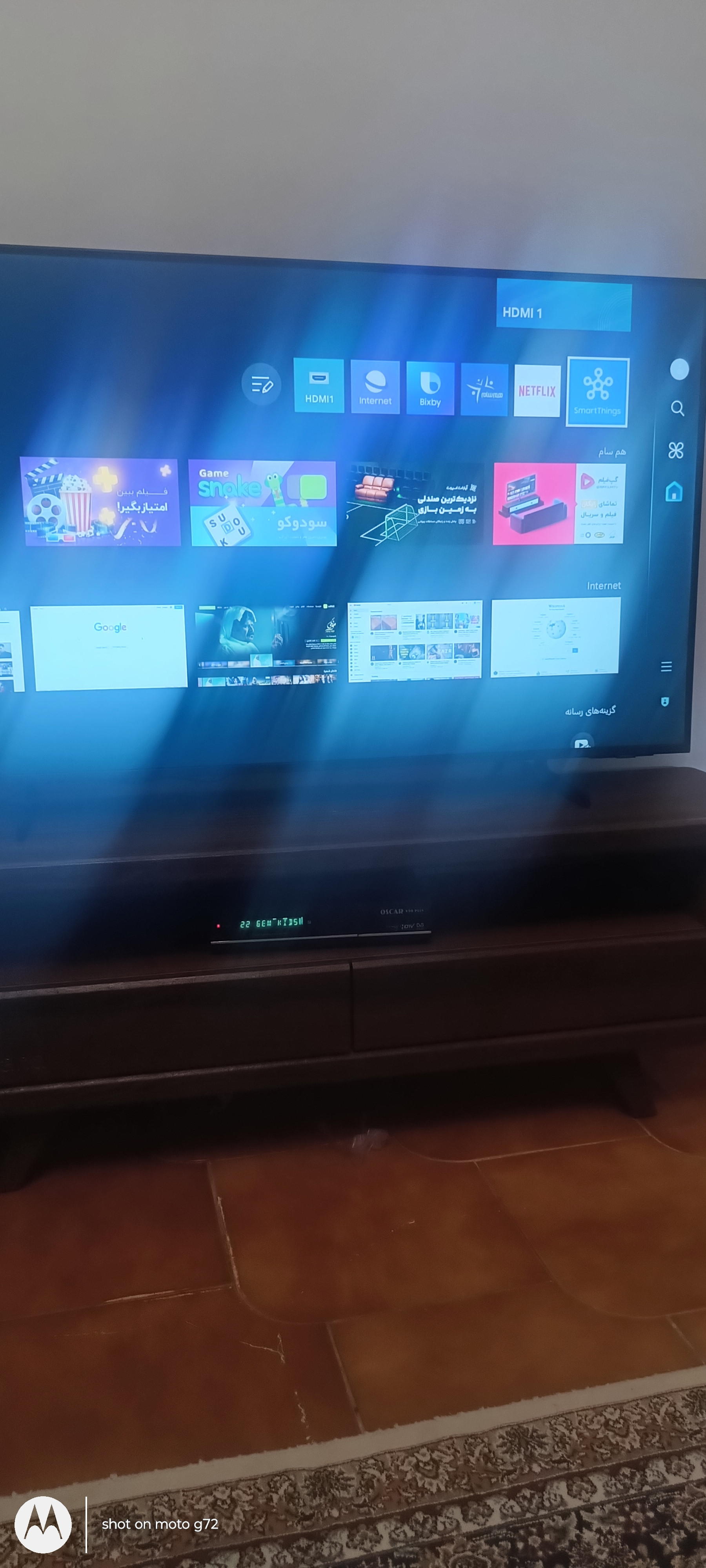 تصاویر ارسالی شما بررسی شد و از نظر اصالت محصول شما هیج مشکلی نداشته و در رابطه با موردی هم که دربارهی اپلیکیشنهای ایرانی فرمودید باید عرض کنم تقریبا از سال 2022 به بعد، محصولات عرضه شده به بازار از برند سامسونگ از این سری پلتفرمها به صورت پیش فرض پشتیبانی میکنند که میتوان به آپارات اسپرت، گپ فیلم و... اشاره کرد که در ادامه یک تصویر از تلویزیونهای موجود در مجموعه با همین شمایل خدمت شما آپلود خواهد شد.