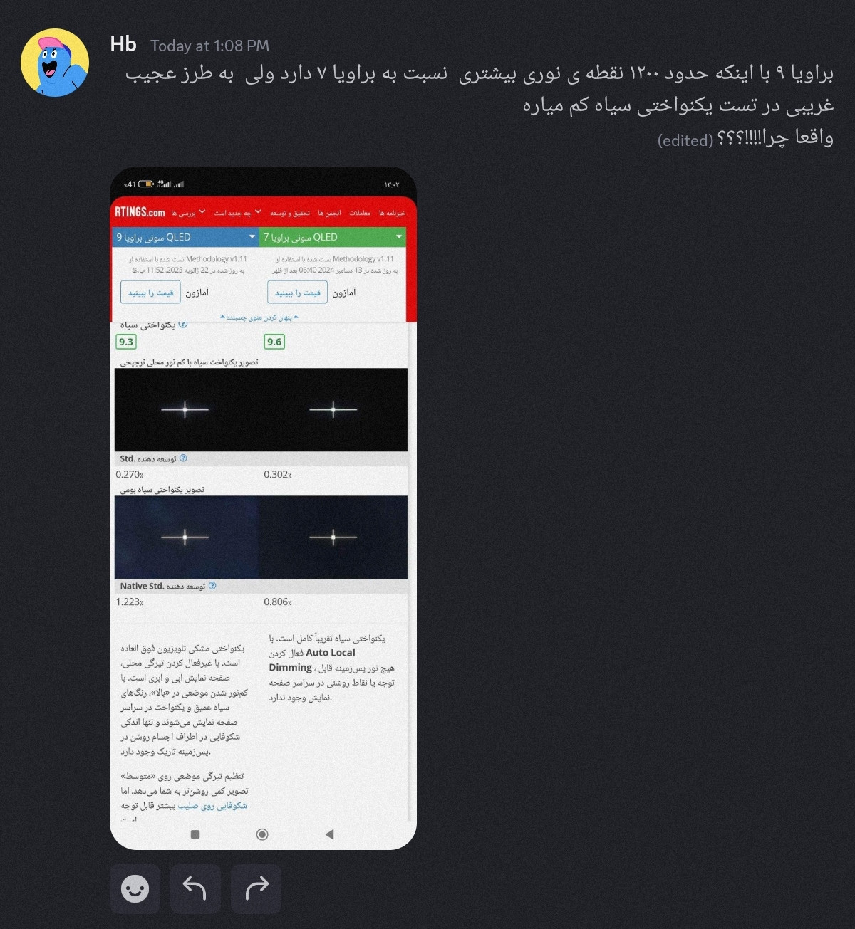 موضوعی که می فرمایدی کمی عجیب است! با توجه به اطلاعات و تست هایی که ما انجام داده ایم، زاویه دید تلویزیون سونی X9500H کمی بیشتر و بهتر از تلویزیون سونی BRAVIA 7(XR70) است. این موضوع زمانی ملموس است که شما دو تلویزیون را در کنار هم مقایسه کنید. از نظر مدیریت انعکاس نور محیط در صفحه نمایش نیز تلویزیون قبلی شما یعنی تلویزیون X9500H عملکرد بهتری دارد و باز هم اگر این دو تلویزیون را در شرایط یکسان در کنار هم مقایسه کنید، تفاوت آنها کاملا واضح است. در هر صورت تلویزیون BRAVIA 7 (XR70) در زمینه زاویه دید و مدیریت انعکاس نور محیط در صفحه نمایش ضعیف تر از تلویزیون X9500H است.