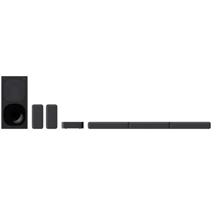 ساندبار سونی HT-S40R یک ساندبار میان رده است و طبیعتاً دارای مجموعهای از ویژگیهایی است که تا حد زیادی با قیمت مطابقت دارد. ترکیبی از نوار صوتی، ساب ووفر و بلندگوهای عقب بیسیم صدای فراگیر پویا را ارائه میدهد که اتاق شما را پر میکند. و با خروجی 600 وات و Dolby Digital، صدای قدرتمندی را دریافت خواهید کرد که شما را در قلب صحنه قرار میدهد. در واقع این ساندبار سونی دارای 1 عدد ساب ووفر (Subwoofer) مدل SA-WS40R و 1 عدد ساندبار (Bar Speaker) با مدل SS-S40R و 2 بلندگوی فراگیر (Surround Speakers) مدل SS-SS40R برخوردار است و به کمک آن ها قادر به تولید صدای فراگیر واقعی میباشد و لحظات شنیداری فوقالعادهای را برای شما رقم خواهد زد. به لطف آمپلی فایر بیسیم که اسپیکرهای عقب را تغذیه میکند، هیچ سیمی وجود ندارد که مانع از آن شود. ساب ووفر و نوار صوتی یک سوکت برق مشترک دارند و به شما این امکان را میدهد که بدون هیچ زحمتی از صدای سینمایی لذت ببرید.