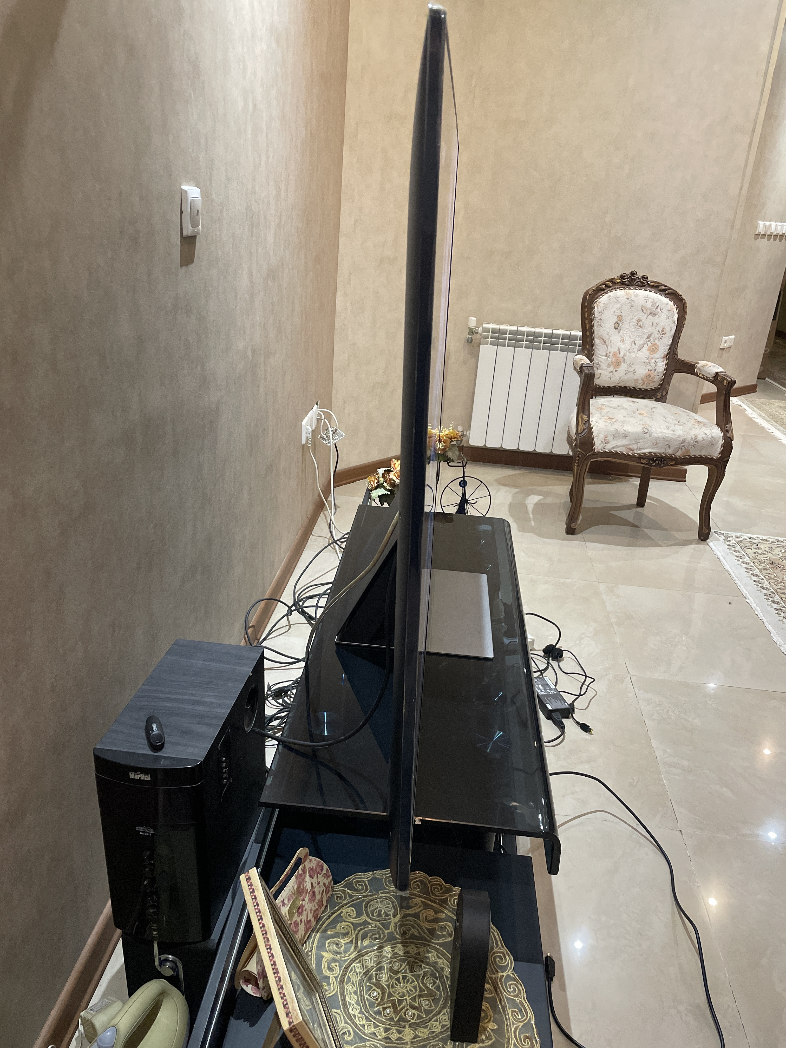 البته با توجه به اینکه تلویزیون پایه وسط است و سایز شصت و پنج اینج و اینکه وزن نسبتا سنگینی دارد طبیعی است که مقداری رو به جلو باشد.