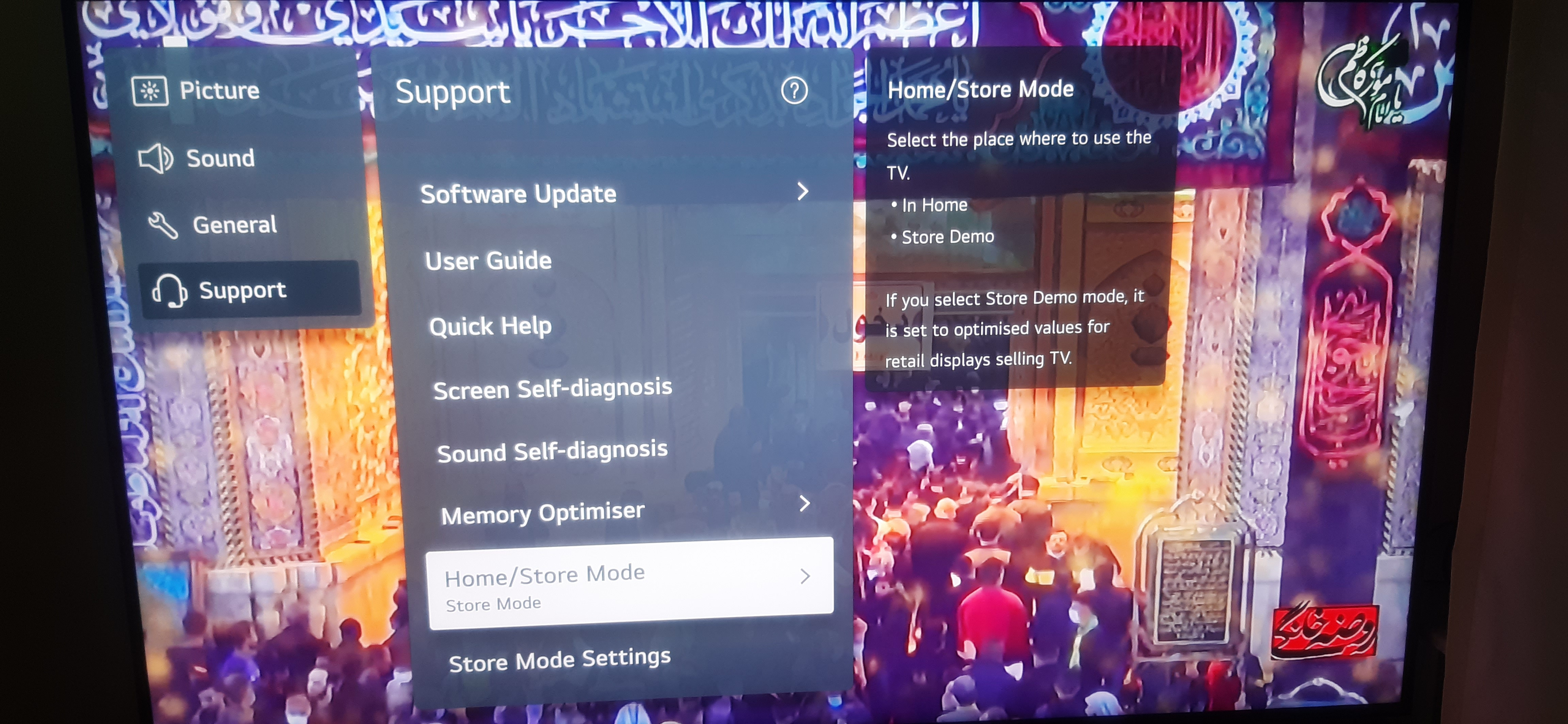 در تنظیمات تلویزیون،وقتی حالت store mode را فعال می کنیم و زمان هم می دهیم روی این آپشن نمی رود و در حالت home mode می ماند.