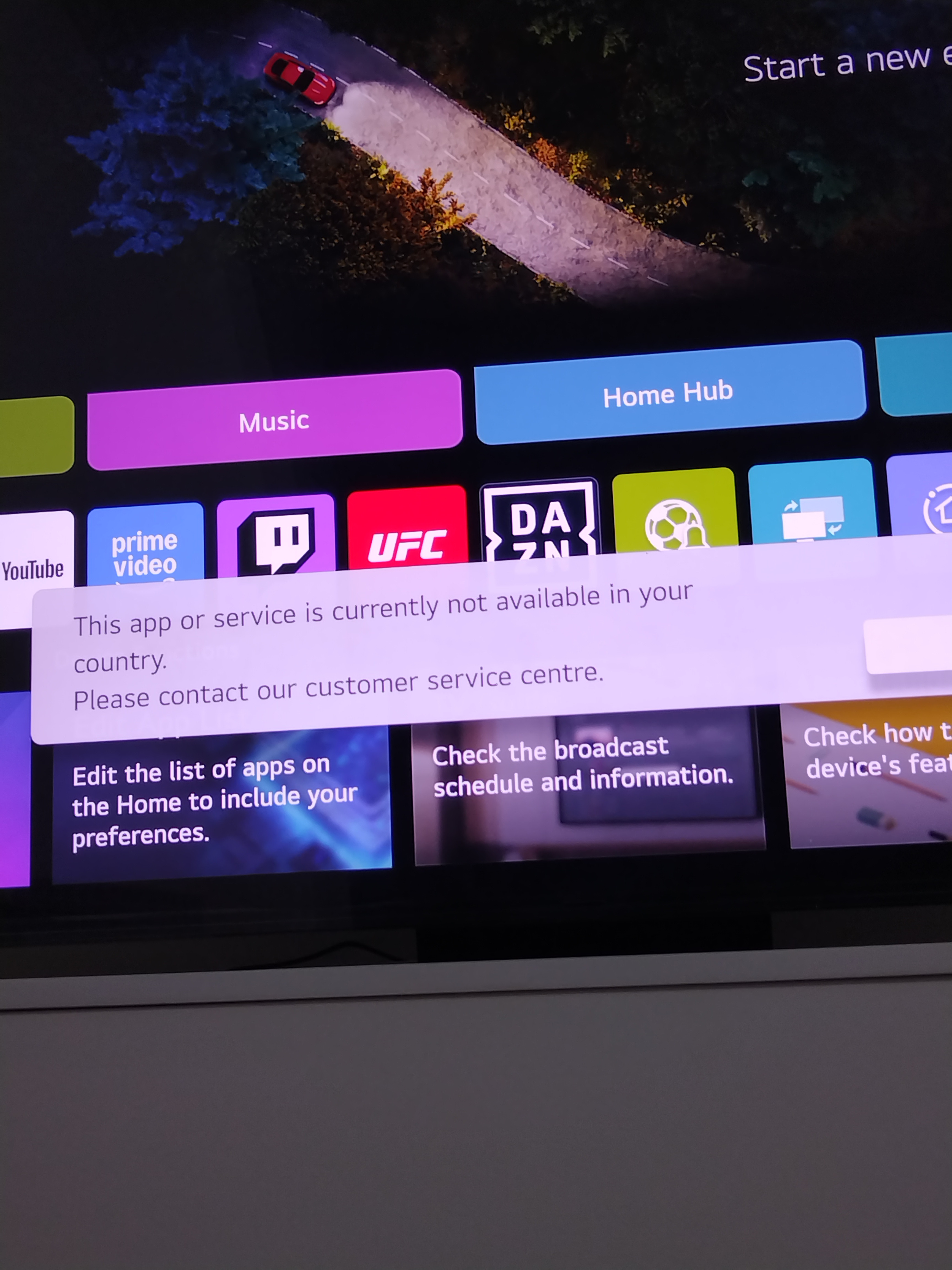 متاسفانه موضوعی که شما تصویر آن را نیز ارسال نموده اید، مربوط به تحریم ها و وضعیت اسفناک اینترنت ایران که دیگر حتی کلمه اسفناک نیز برای آن مناسب نیست، می باشد. برای رهایی از مشکلات این چنینی و هزاران مشکل و محدودیت دیگر، باید به ناچار از V_P_N استفاده کنید. در آنجایی که تلویزیون های ال جی با سیستم عامل webOS از Client VPN پشتیبانی نمی کنند، می توانید یک روتر میکروتیک وایرلس یا روتر گوگل AC 1304 خریداری کنید و از طریق آنها به V_P_N متصل شده و سپس تلویزیون یا هر دستگاه دیگری را از طریق Wi-Fi به این روترها متصل نمایید تا به اینترنت آزاد دسترسی داشته و چنین محدودیت هایی را تجربه نکنید. در روتر گوگل AC 1304 با سیستم عامل OpenWrt و پکیج Passwall به راحتی می توانید به V_P_N های v2ray متصل شوید.
