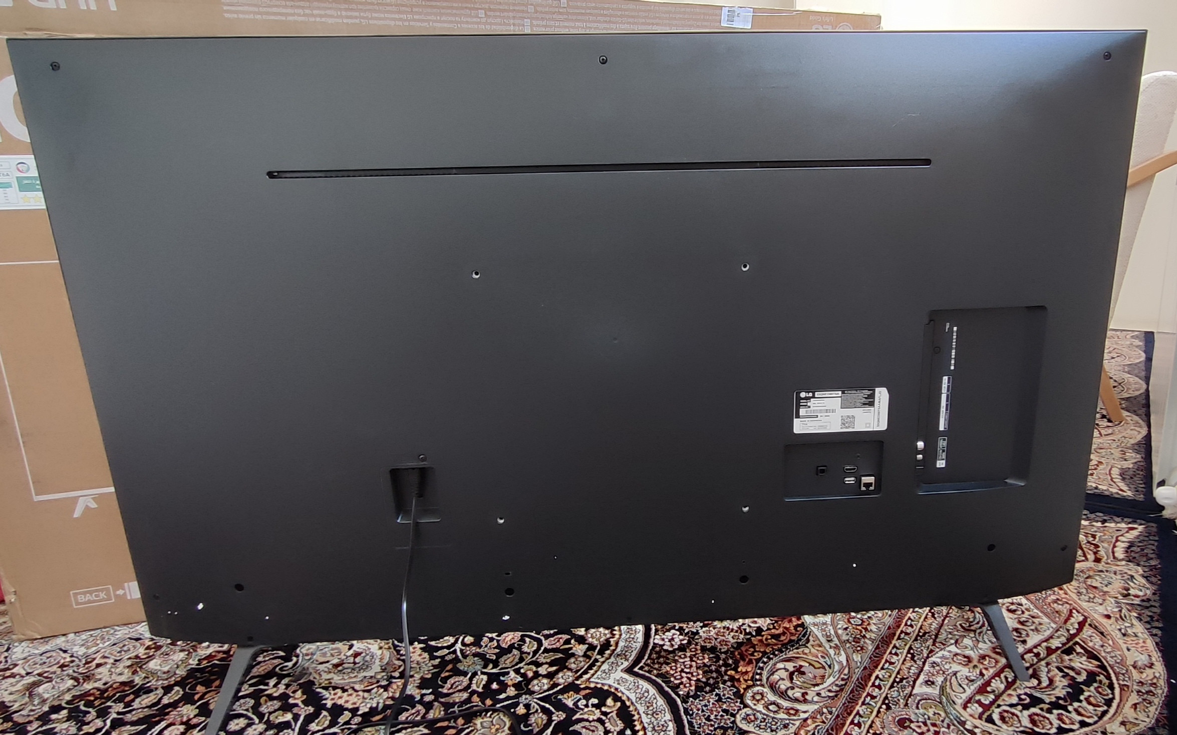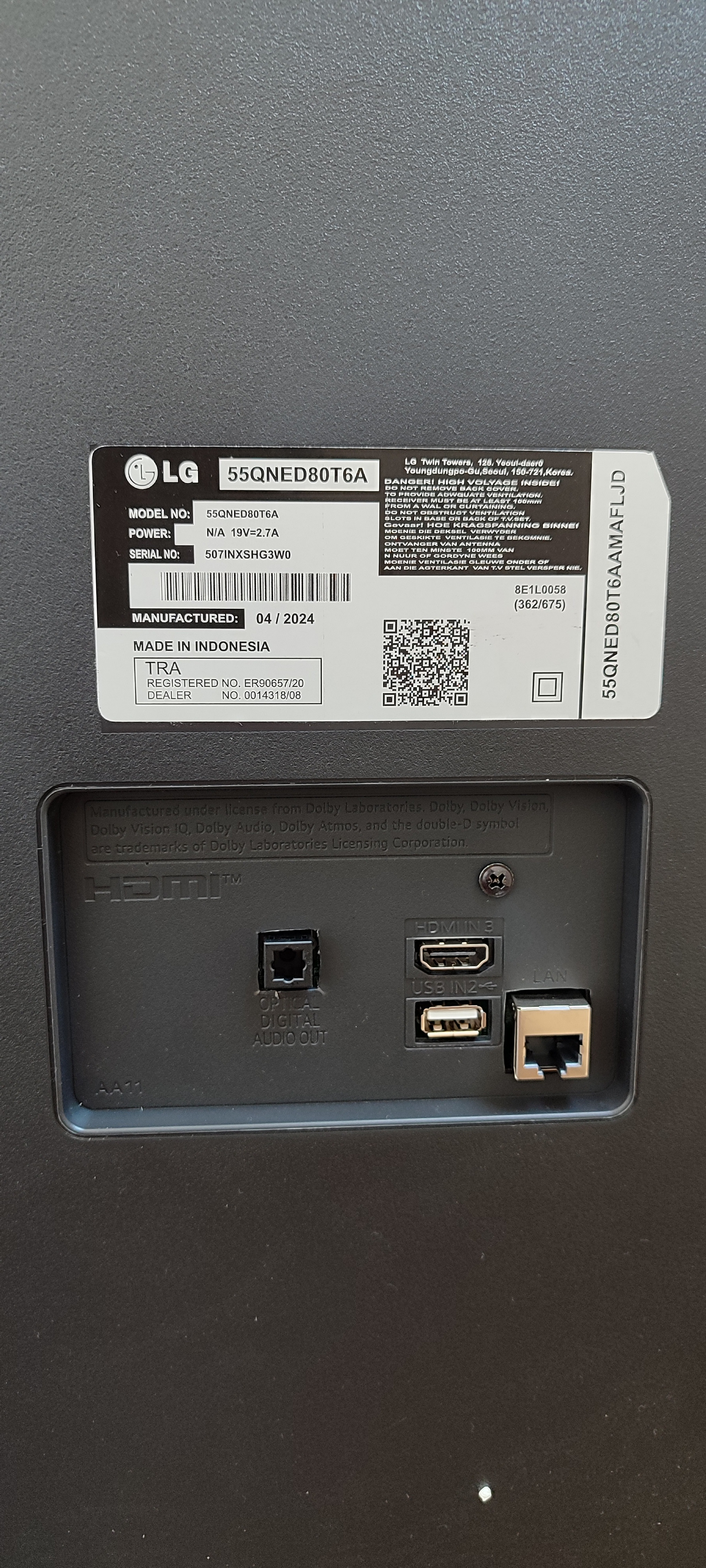 به همراه کامنت شما تنها یک عکس از پشت تلویزیون ضمیمه شده است که آن هم کیفیت بالایی ندارد و برچسب مدل پشت تلویزیون و بارکدی که فرمودید، خوانا نیست. اما از همین عکسی که ارسال کرده اید نیز به راحتی می توان تشخیص داد که تلویزیون شما، تلویزیون ال جی QNED80 2024 نیست! اگر عکس پشت تلویزیون در گالری تصویر این تلویزیون را در سایت سلام بابا مشاهده کنید، متوجه این تفاوت خواهید شد. حتی پایه تلویزیون شما نیز شبیه پایه تلویزیون QNED80 2024 نیست.
