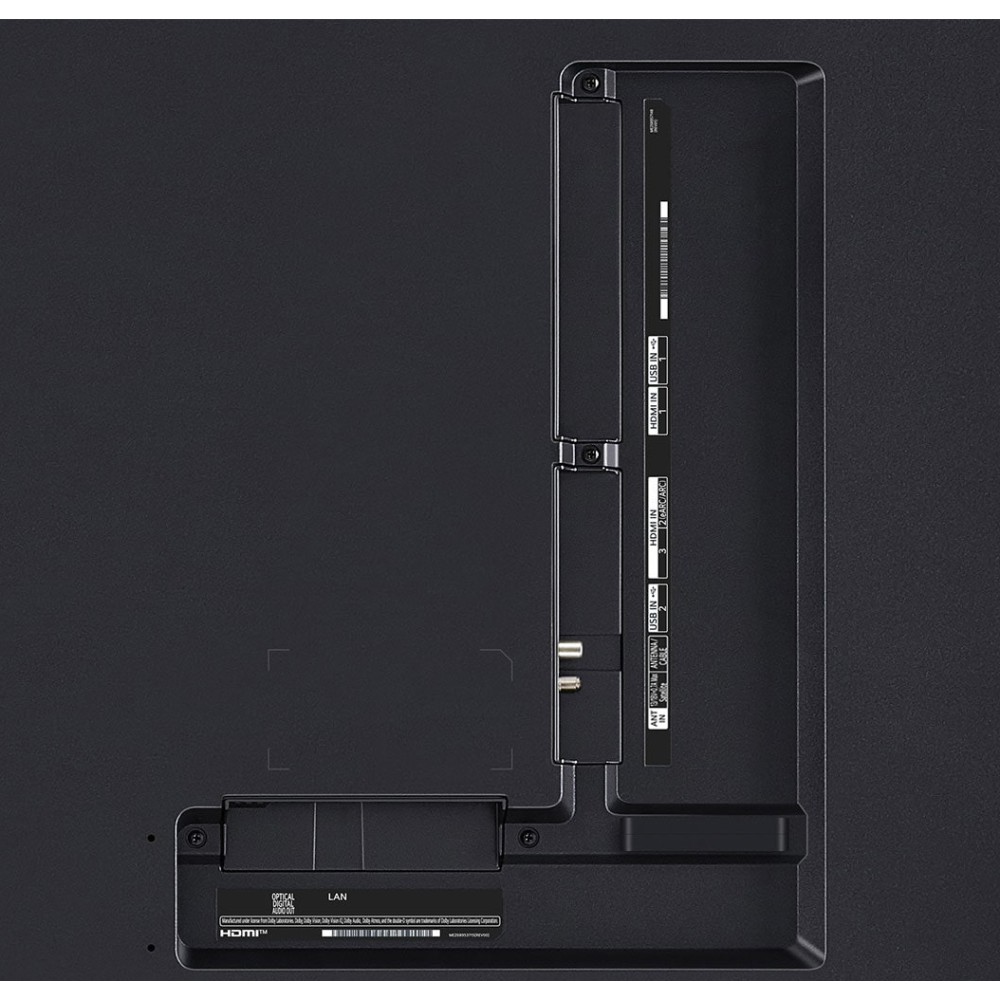 محصول مذکور دارای یک عدد کابل برق است که قابلیت جدا شدن دارد. یک عدد گیره مخصوص کابل برق به همراه این تلویزیون به شما داده می شود که باعث فیکس شدن کابل برق به پشت تلویزیون می شود. همچنین دو عدد گیره برای مرتب کردن کابل های متصل به تلویزیون به شما داده می شود که در پشت پایه ها نصب می شوند شما با عبور دادن این کابل ها از این گیره ها می توانید از بهم ریختگی آن ها جلوگیری کنید. علاوه بر آن ها دو عدد گیره به شما داده می شوند که به پشت بدنه تلویزیون نصب شده و شما می توانید کابل ها را به کمک آن ها مرتب کنید. به گفته خود شرکت ال جی این محصول از پایه Synergy Bracket با مدل BT5-2P پشتیبانی می کند. این پایه به زیر تلویزیونی که روی دیوار نصب است، متصل می شود و شما می توانید ساندبار خود را روی آن قرار دهید. این پایه به صورت جداگانه در بازار به فروش می رسد و شما می توانید آن را خریداری کنید. ساندبار سازگار با این پایه، ساندبار S70TY می باشد که خود ال جی آن را پیشنهاد داده است.